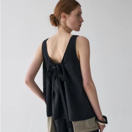 토마토 남자 jennie vibe 주간 실크 비대칭 비스듬한 어깨 슬립 맨위 여성 여름 흔들다 칼라 리본 몸매 가꾸기 조끼