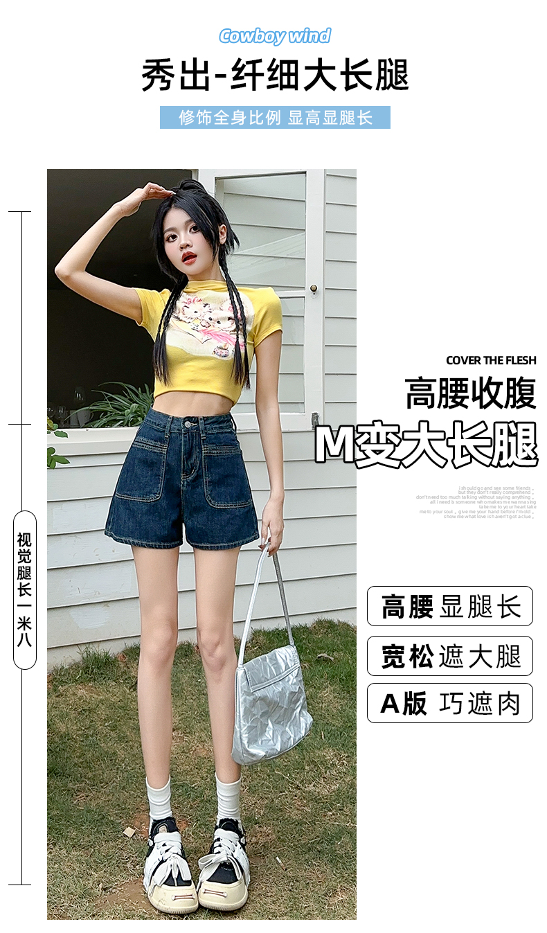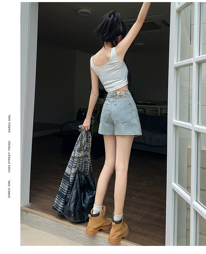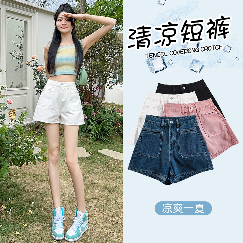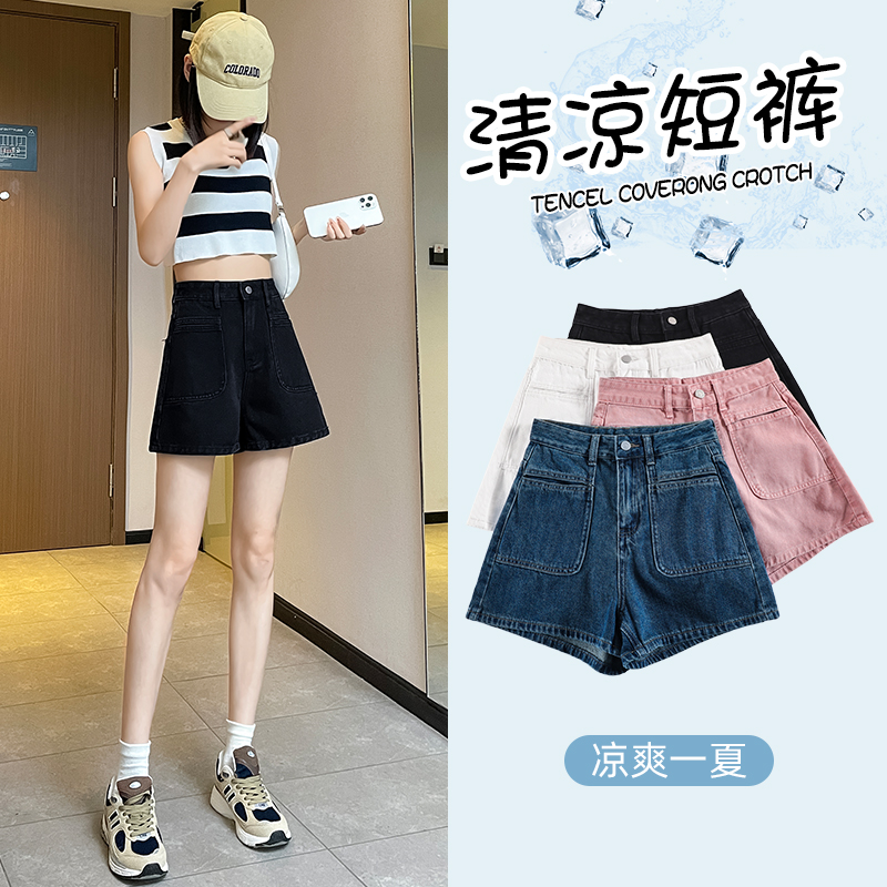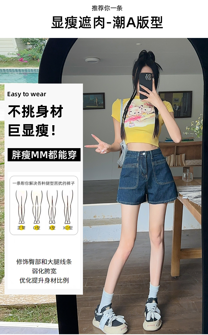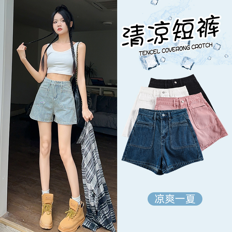 실사 핫걸 데님 반바지 여성 여름 얇은 스타일 하이웨이스트 슬림해 보이는 인터넷 유명인 디자인 센스 작은 키 핫 바지