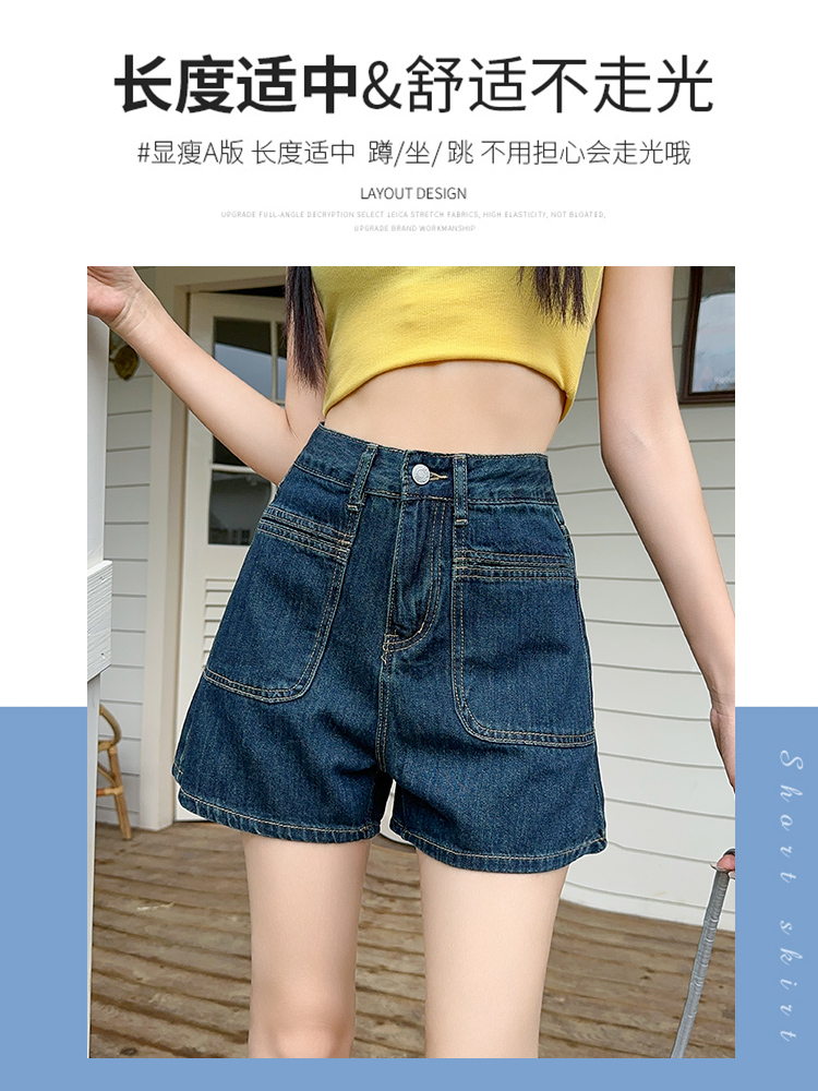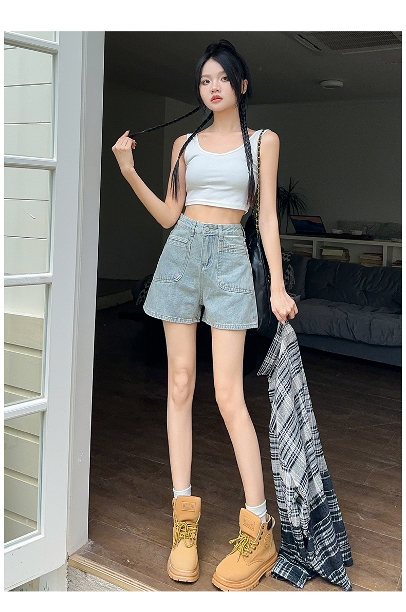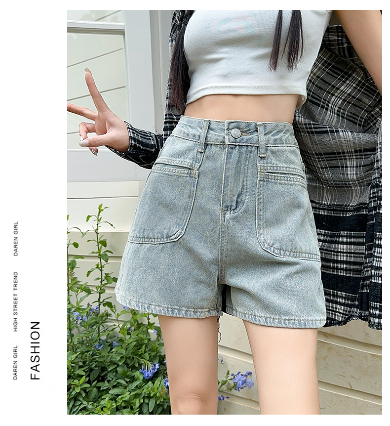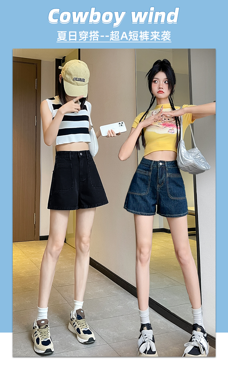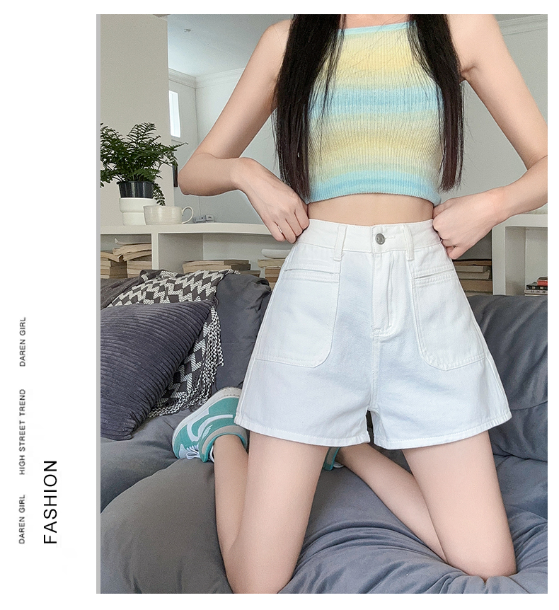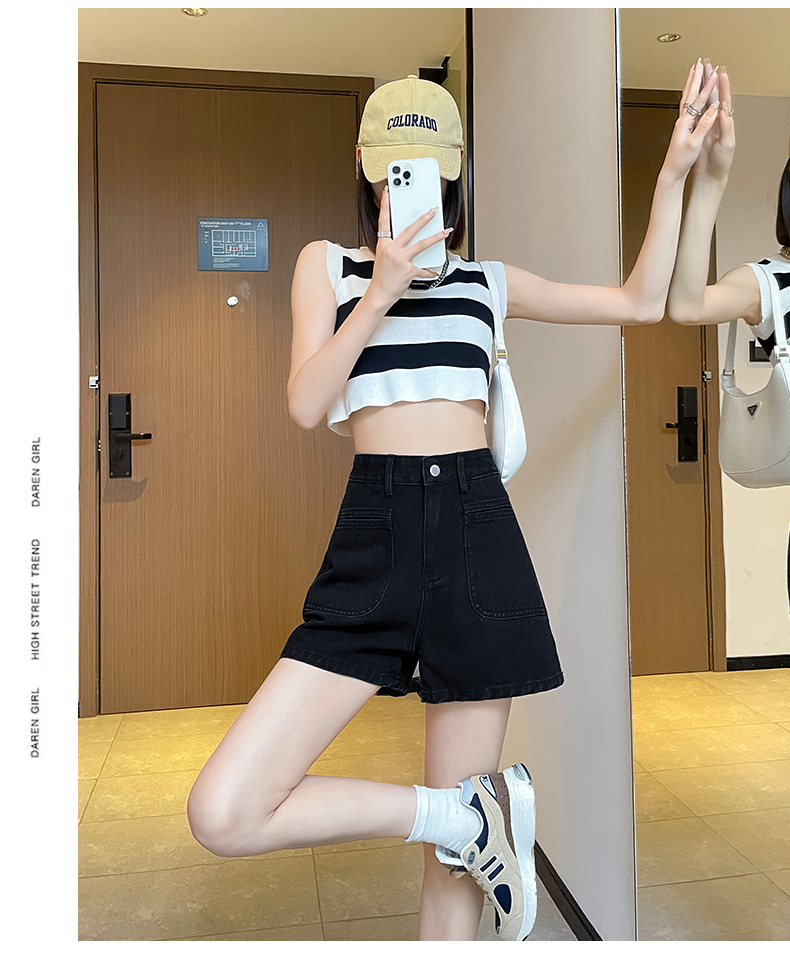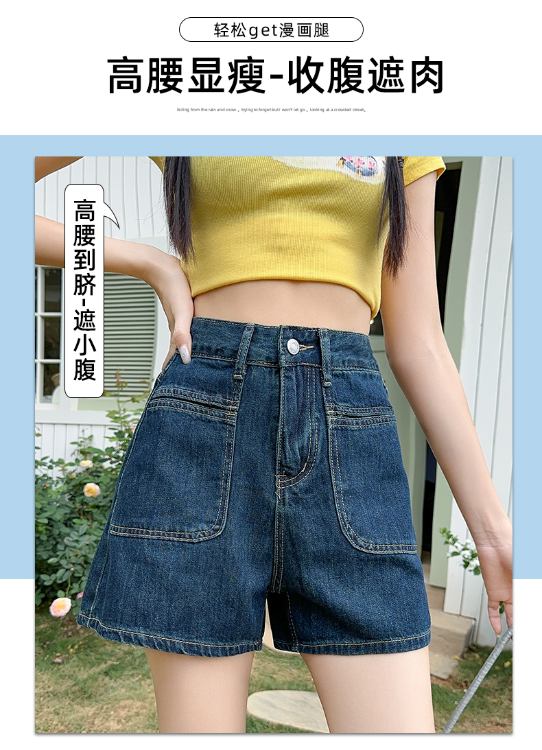 실사 핫걸 데님 반바지 여성 여름 얇은 스타일 하이웨이스트 슬림해 보이는 인터넷 유명인 디자인 센스 작은 키 핫 바지