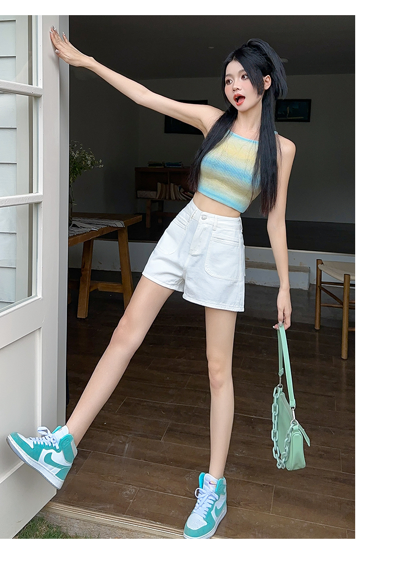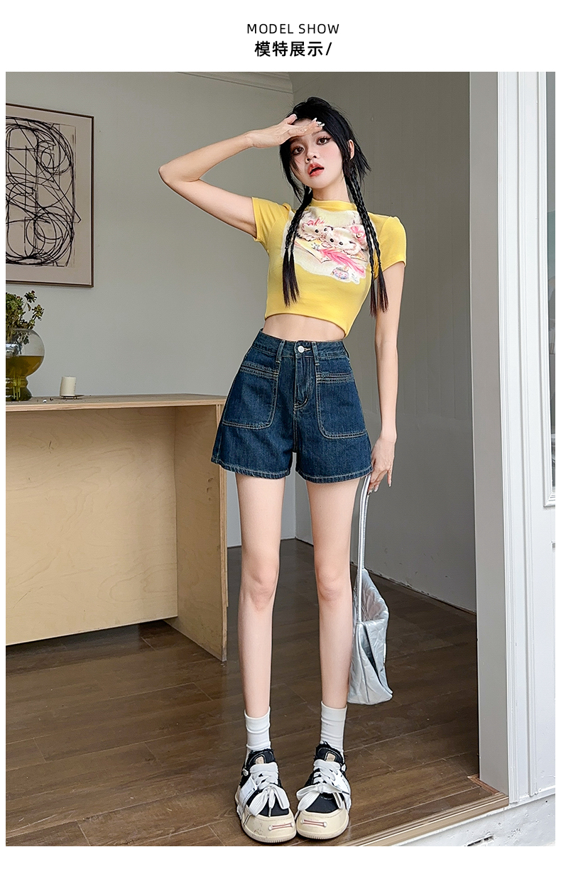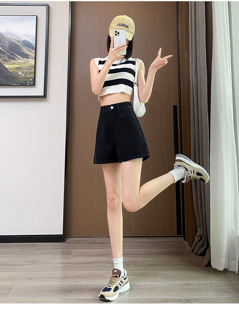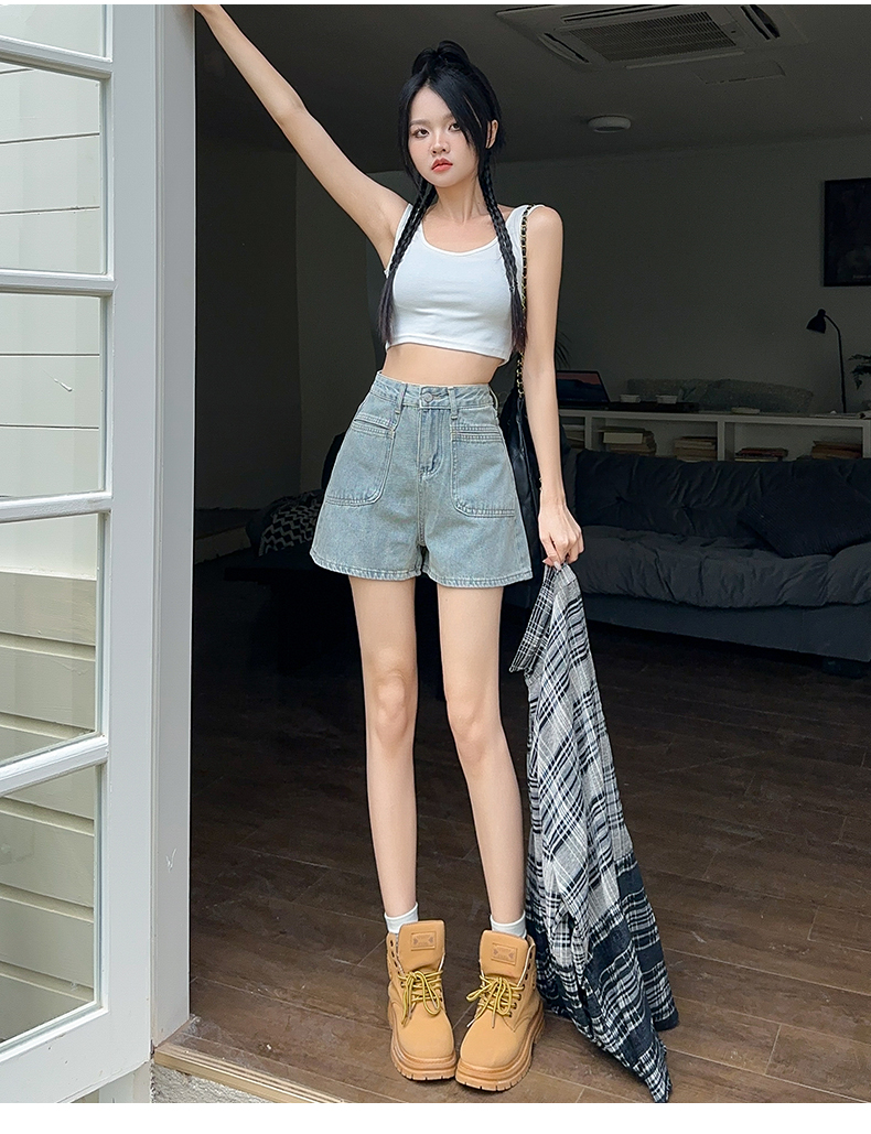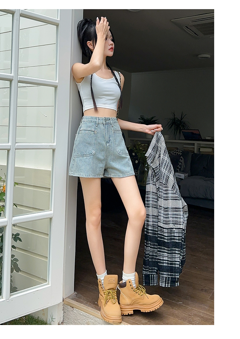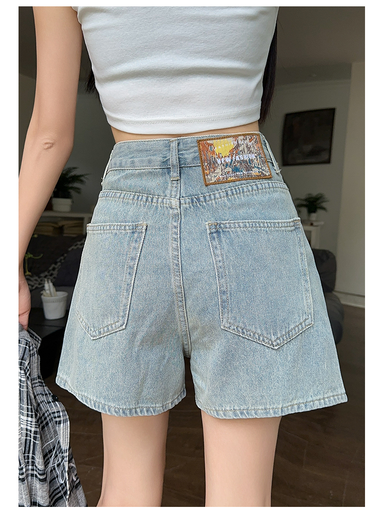 실사 핫걸 데님 반바지 여성 여름 얇은 스타일 하이웨이스트 슬림해 보이는 인터넷 유명인 디자인 센스 작은 키 핫 바지