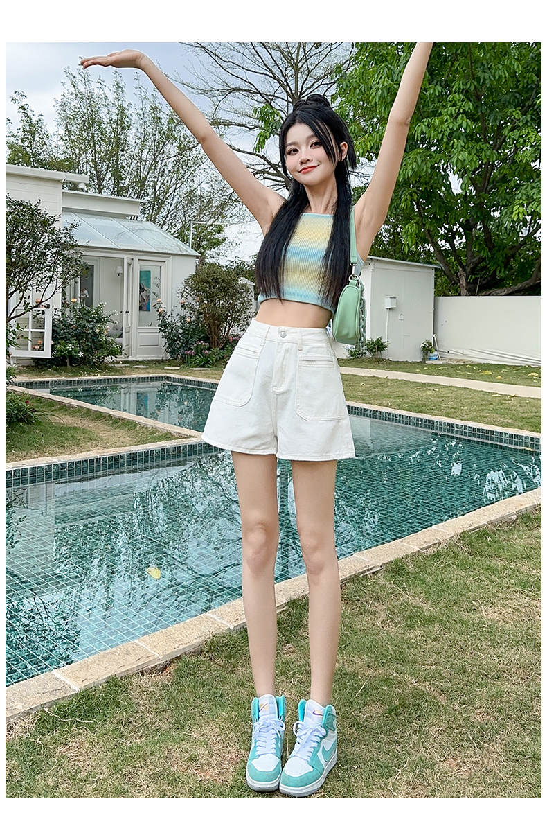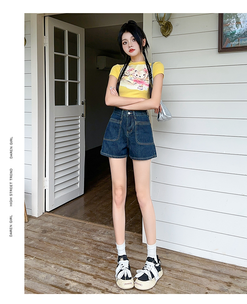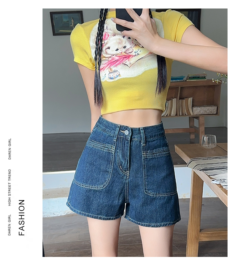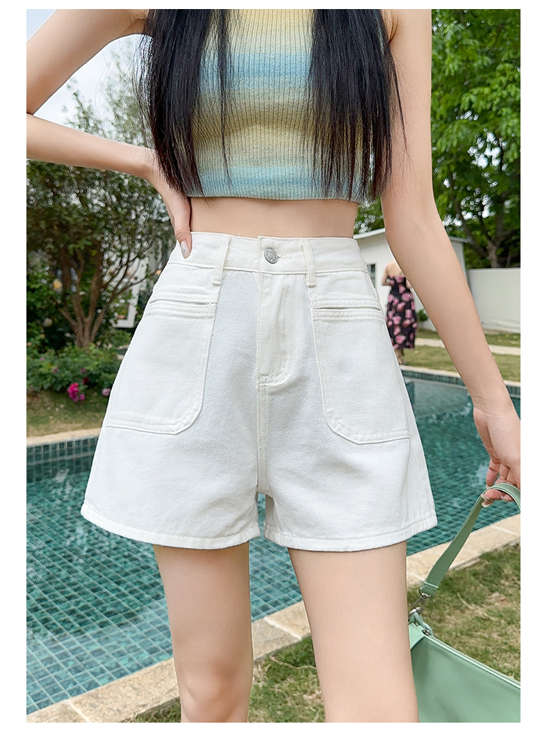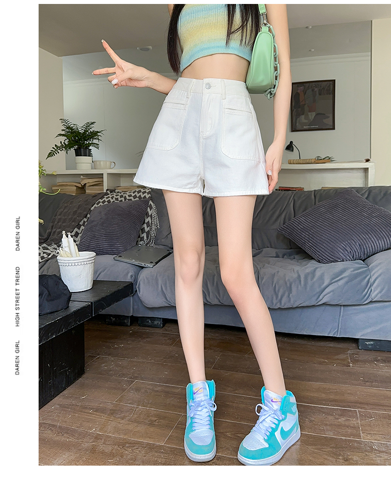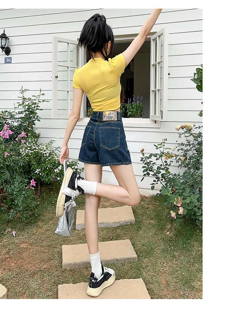 실사 핫걸 데님 반바지 여성 여름 얇은 스타일 하이웨이스트 슬림해 보이는 인터넷 유명인 디자인 센스 작은 키 핫 바지