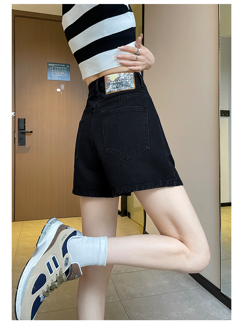 실사 핫걸 데님 반바지 여성 여름 얇은 스타일 하이웨이스트 슬림해 보이는 아메리칸 디자인 센스 한 마디 넓은 다리 뜨거운 바지