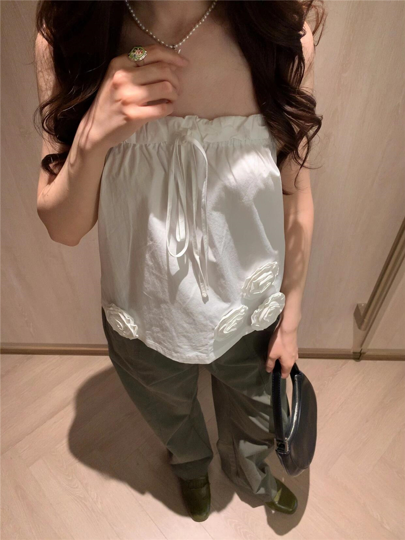 실사 정가 부드러운 너바나 프랑스식 낭만주의 꽃 비즈 박기 오프숄더 프릴 칼라 디자인 센스 작은 셔츠