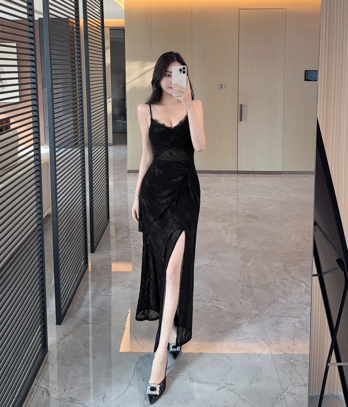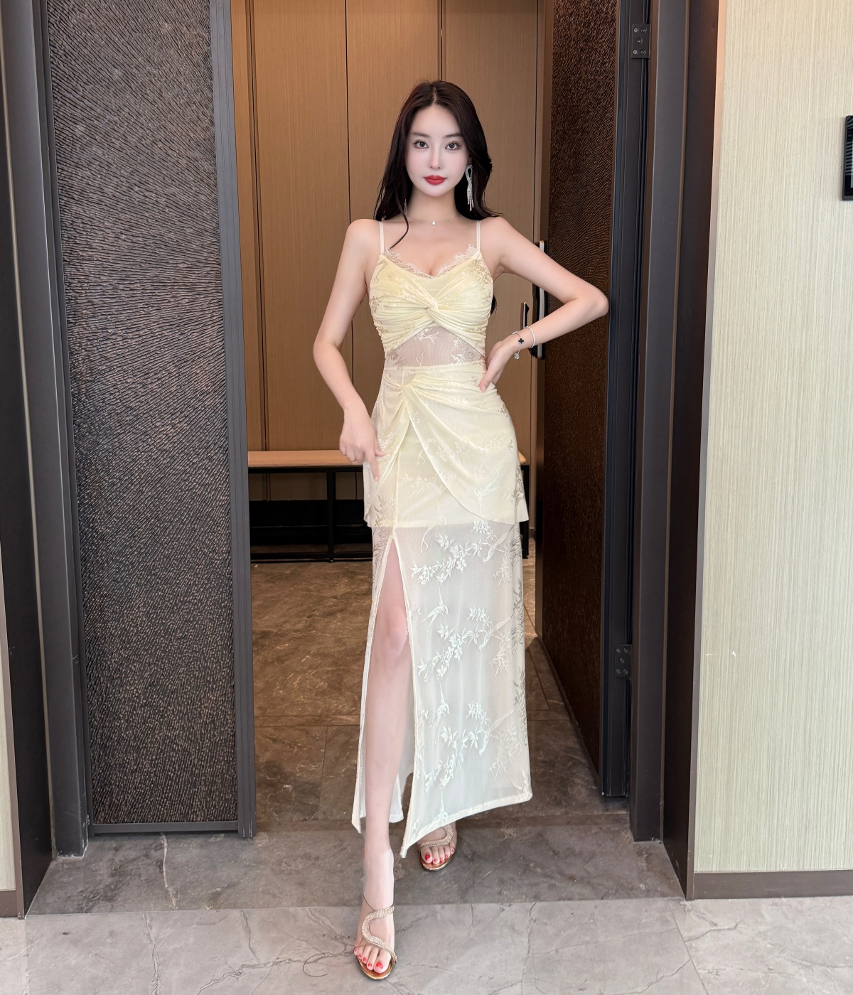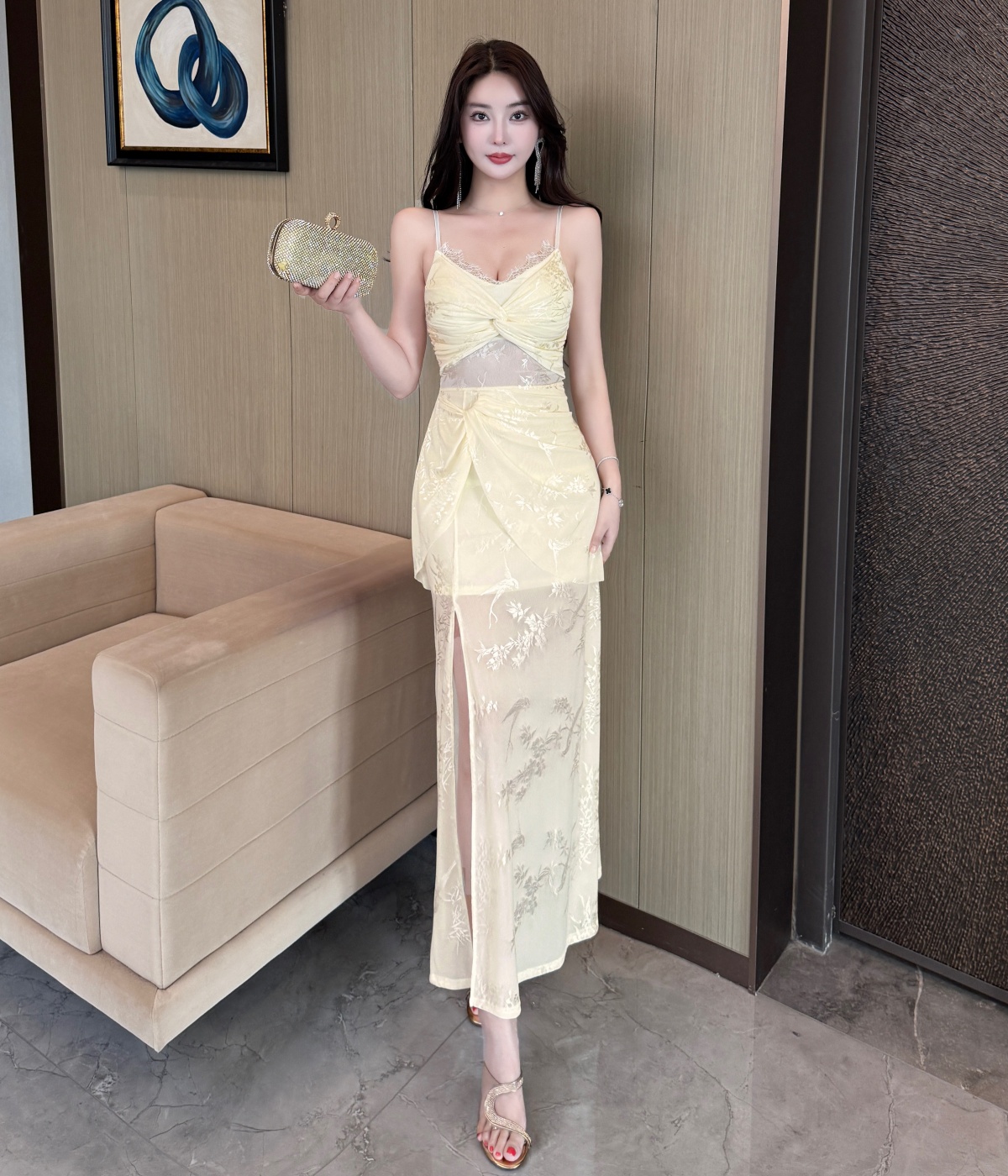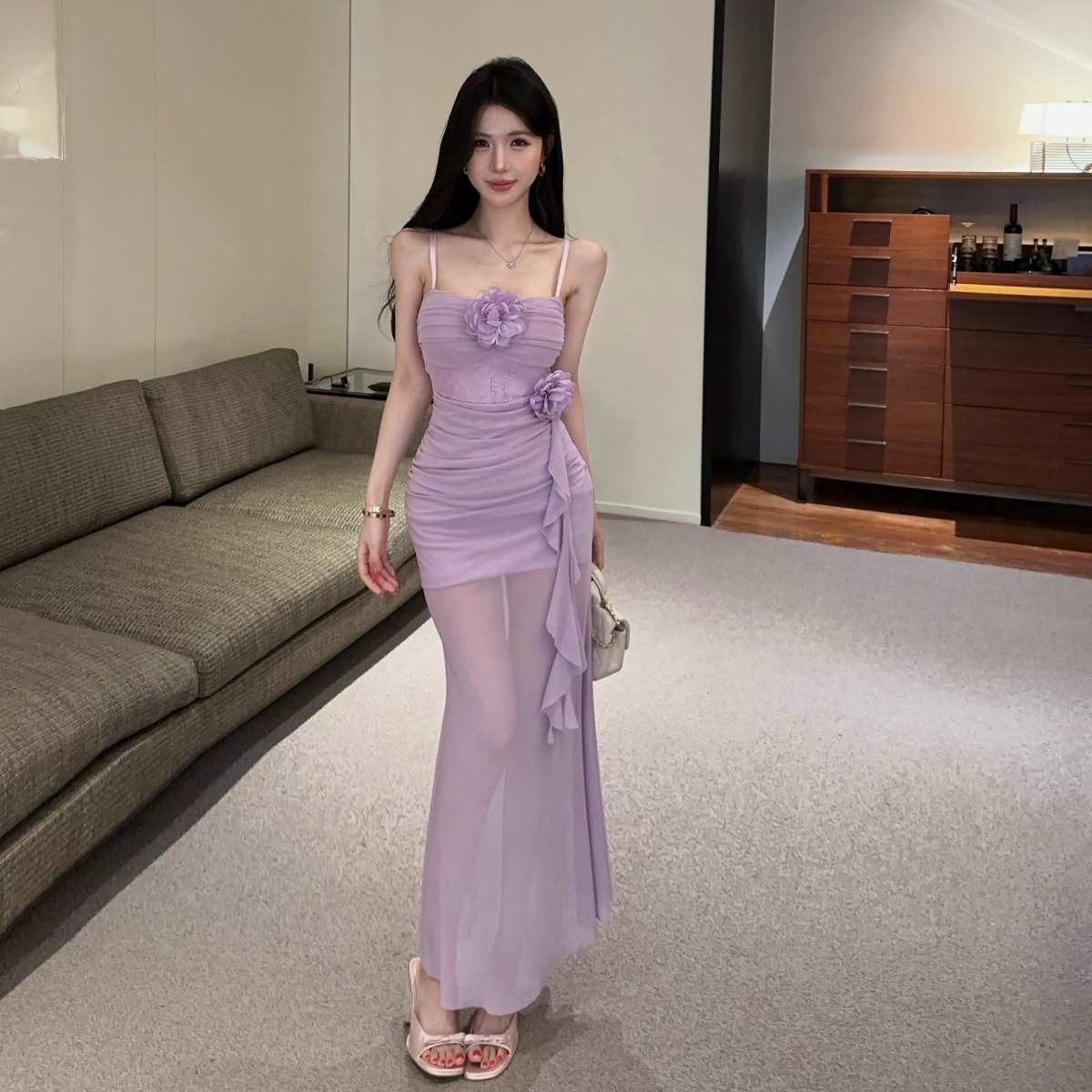 실사 섹시함 망사 롱 코트 슬립 드레스