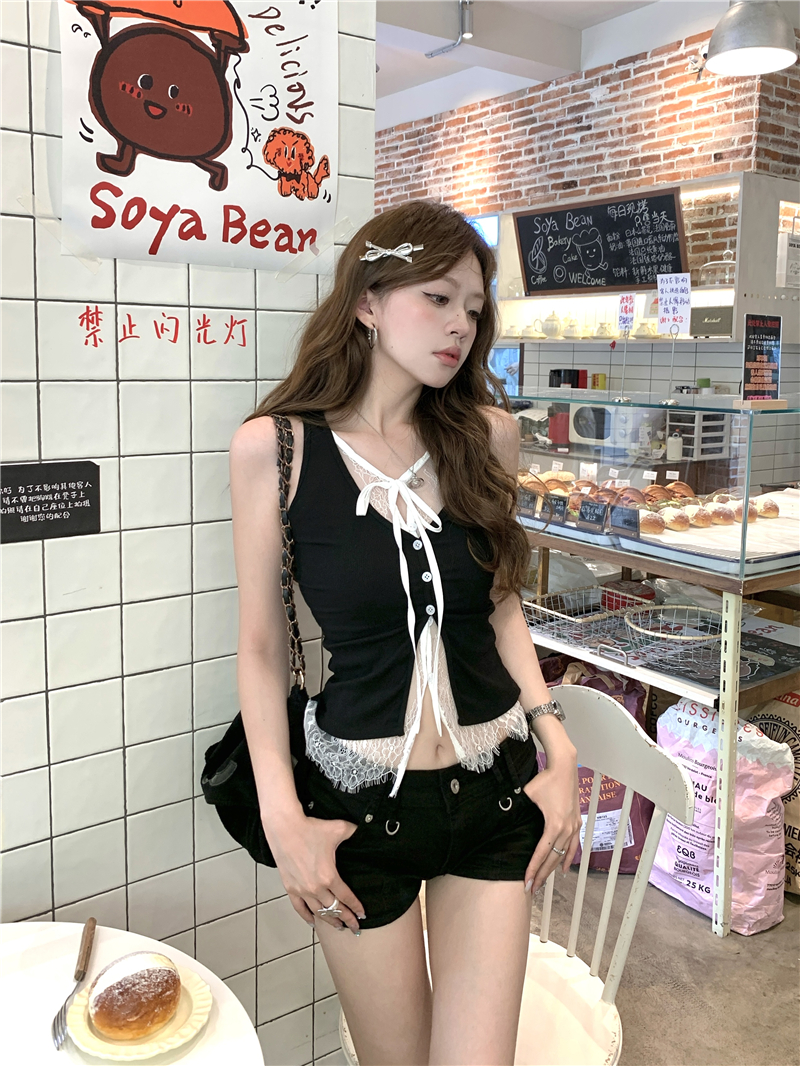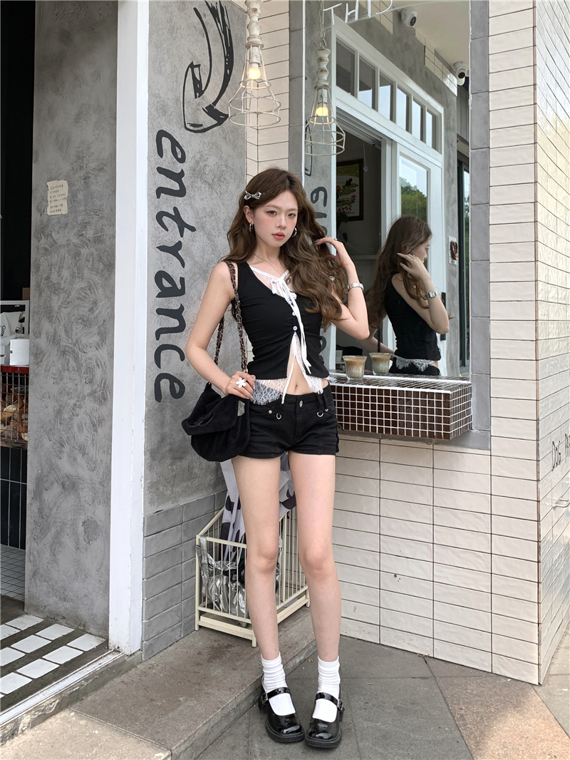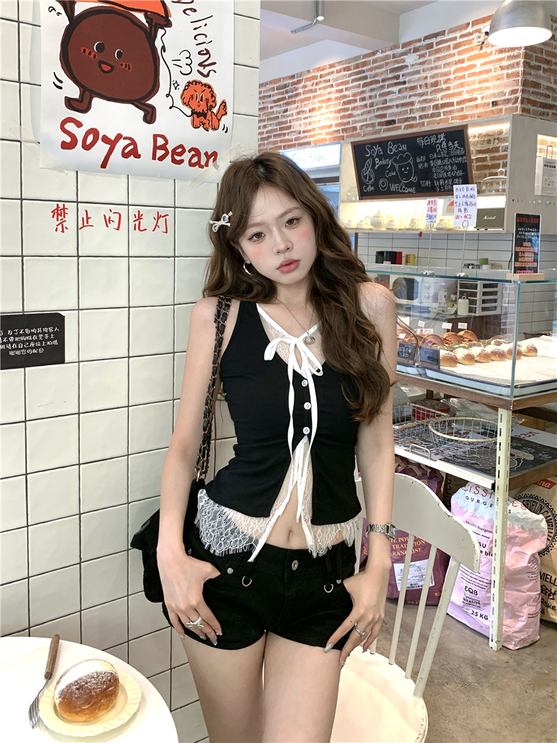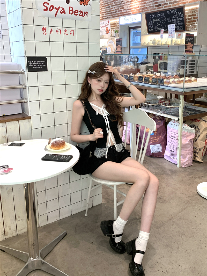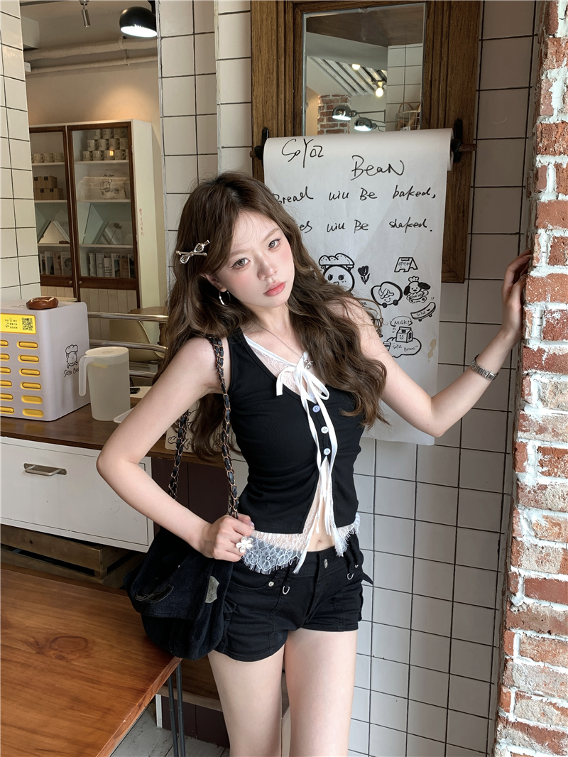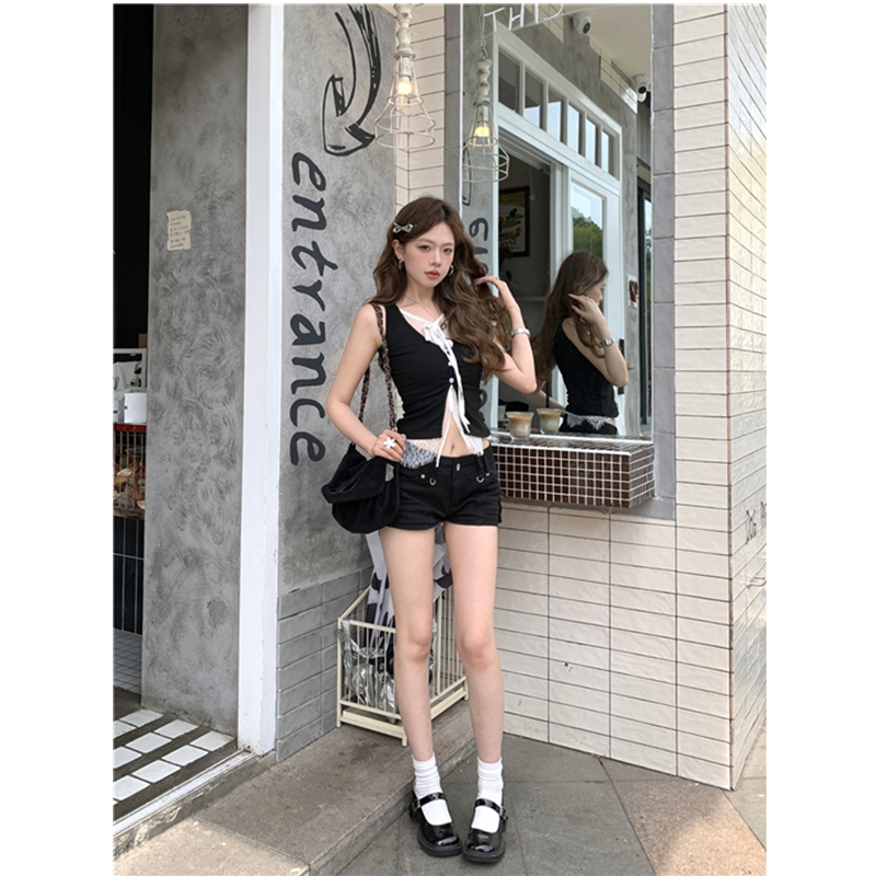 실사 실사 다용도 몸매 가꾸기 쇼트 스타일 인사이드 가져 가라. 외출용 민소매 u 칼라 조끼 티셔츠