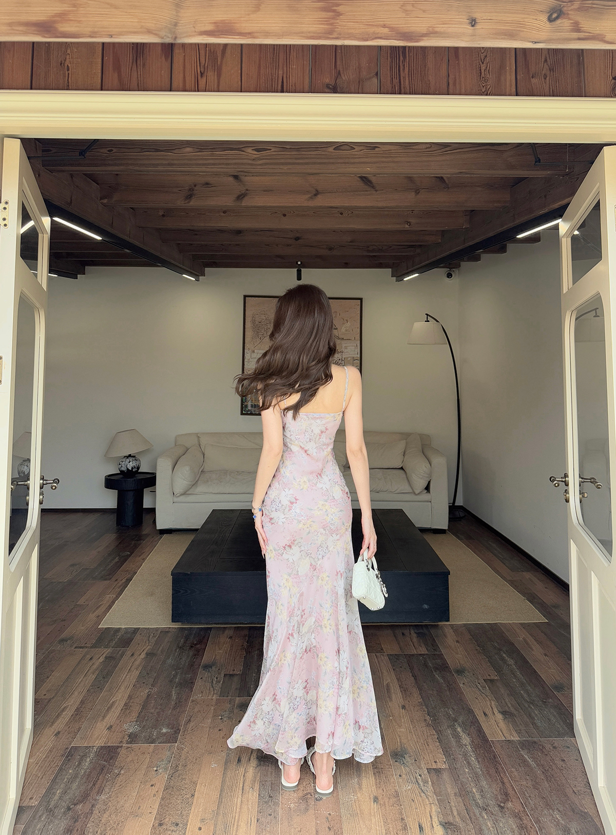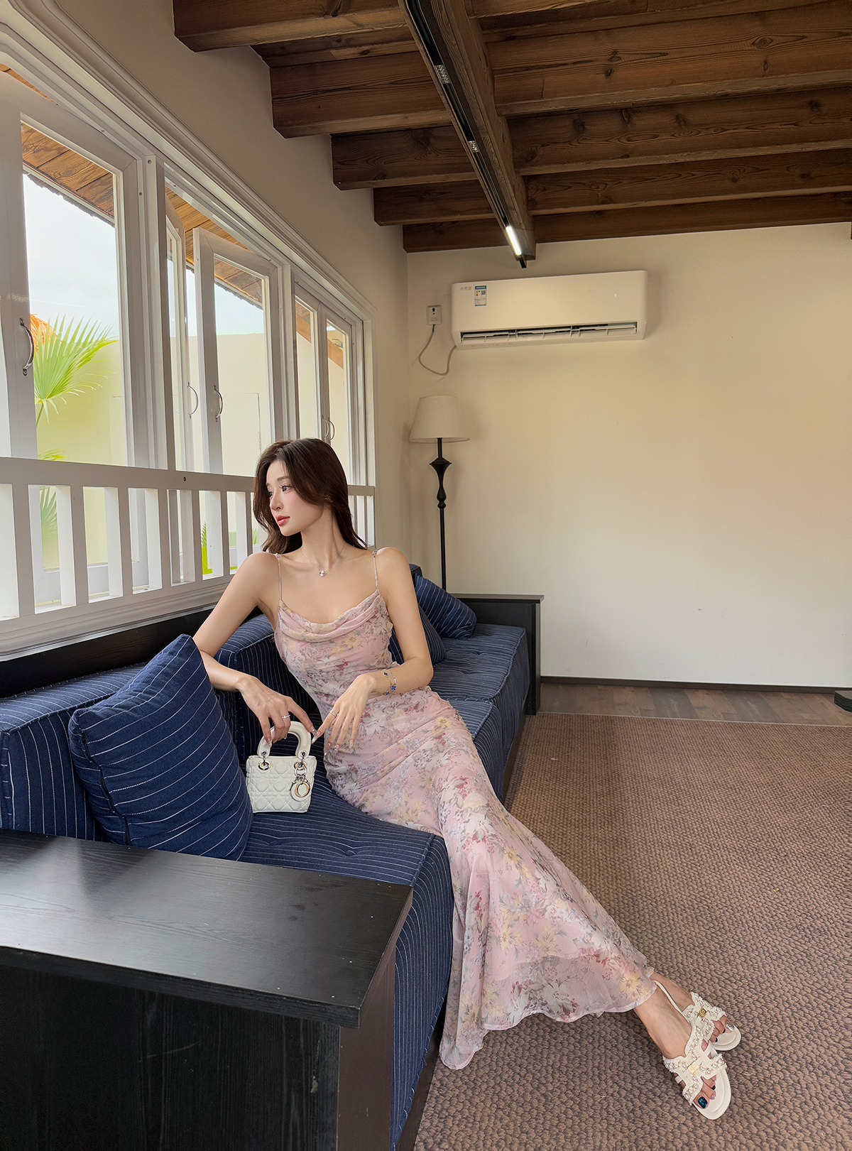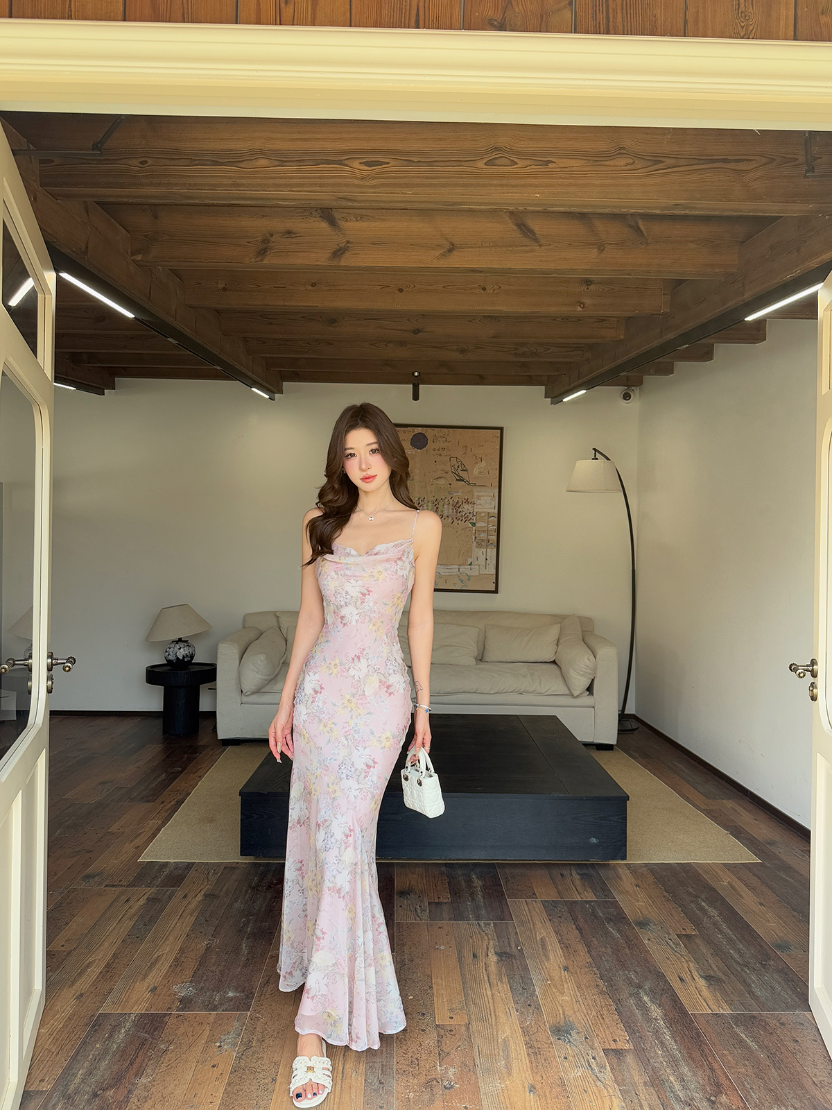 빛 럭셔리 바람 민소매 허리 수축 여성 드레스 트임 슬림해 보이는 디자인 센스 치마