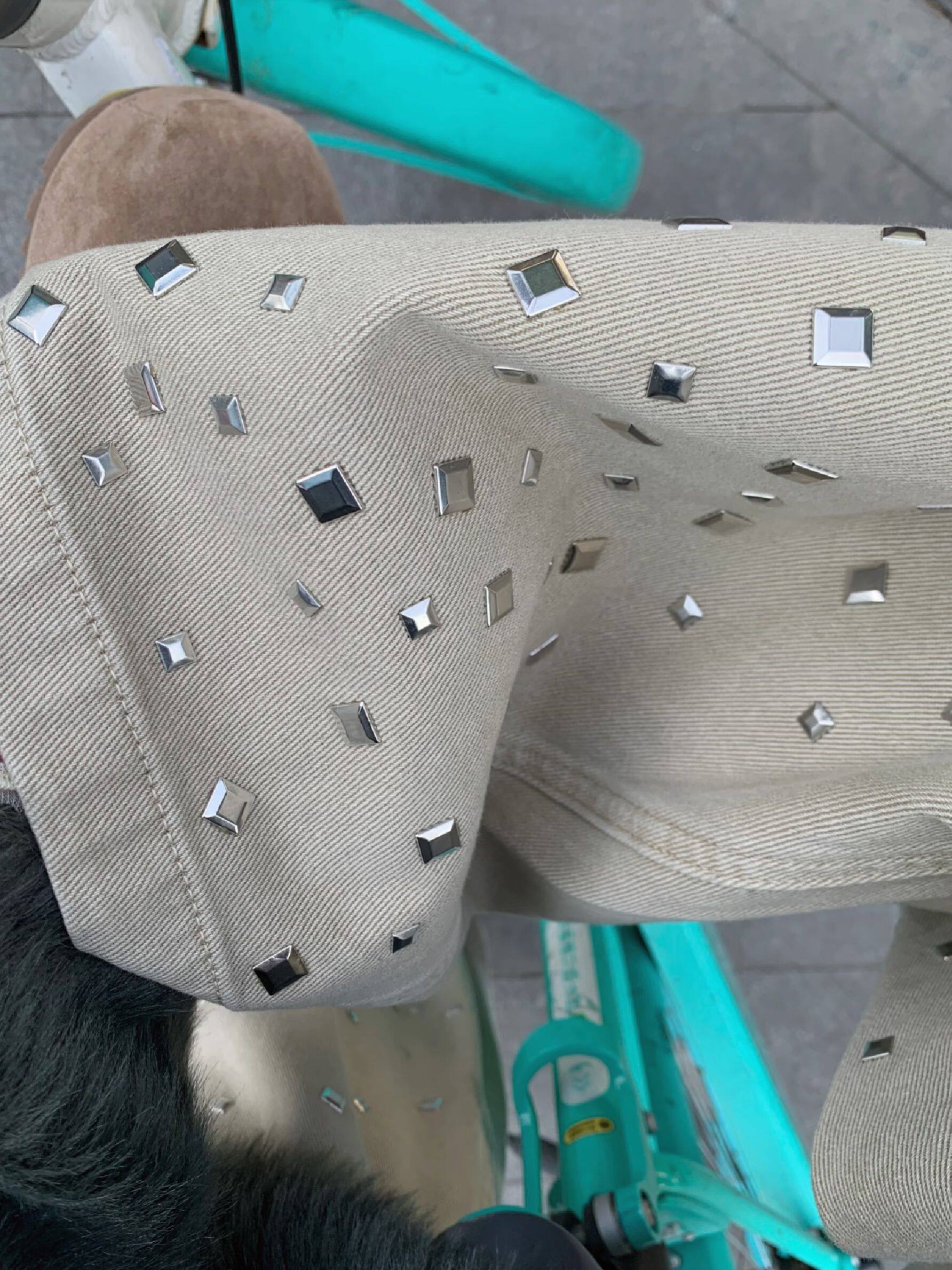 아메리칸 귀여운 작은 곰 펜던트 자수 청바지 여성 봄 가을 새로운 작은 대중 단추 디자인 센스 넓은 다리 길이 바지