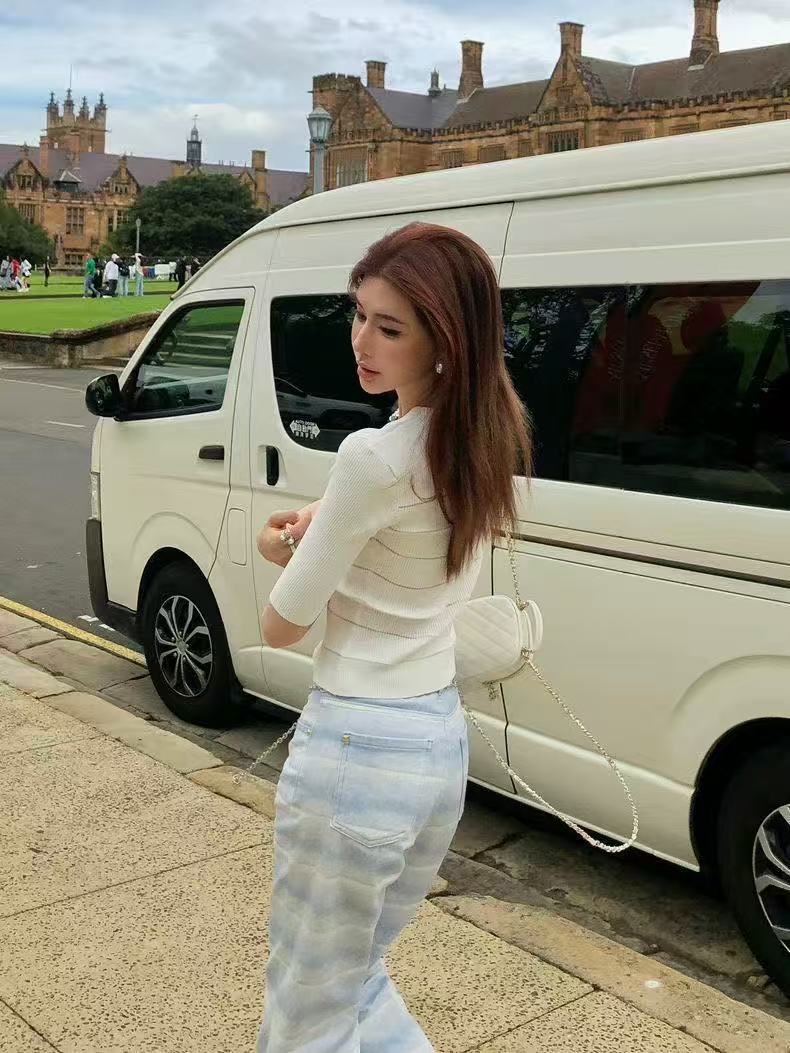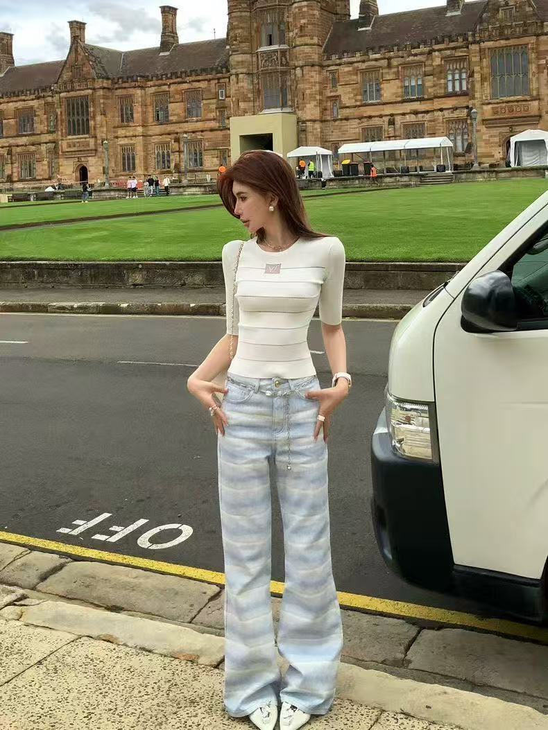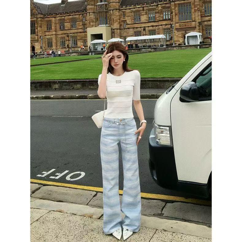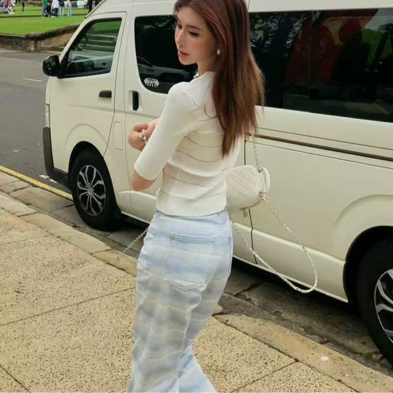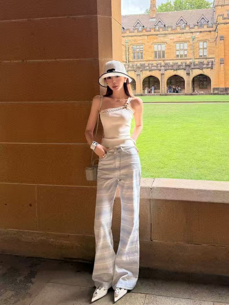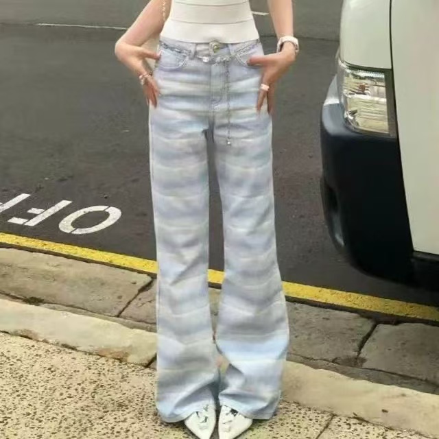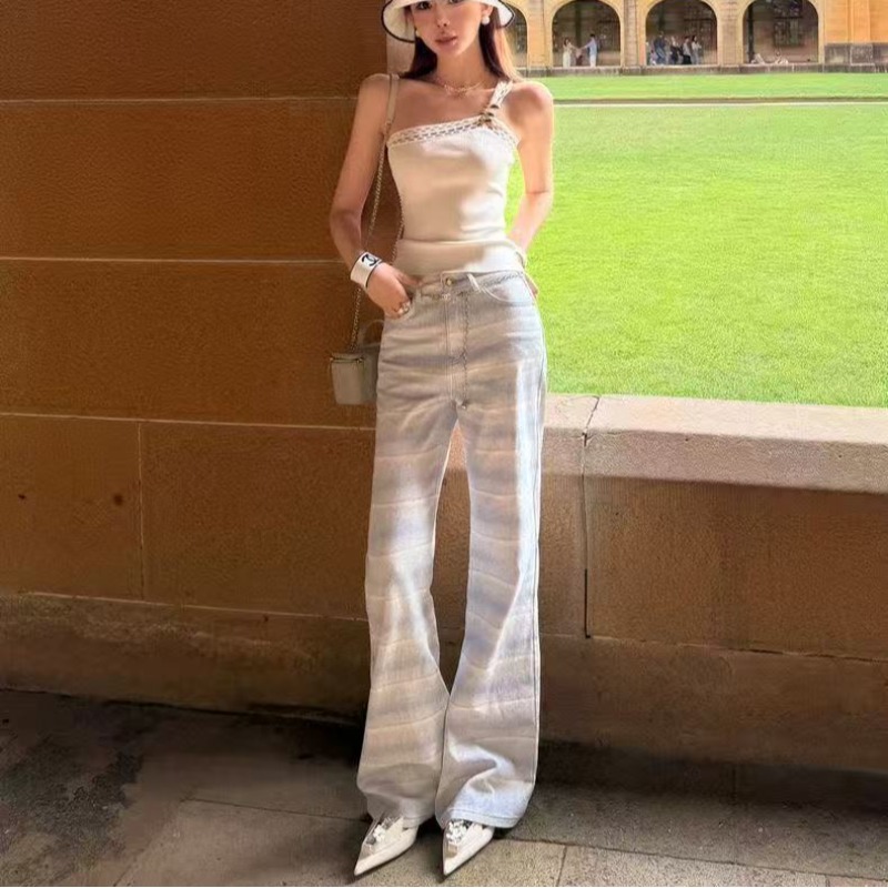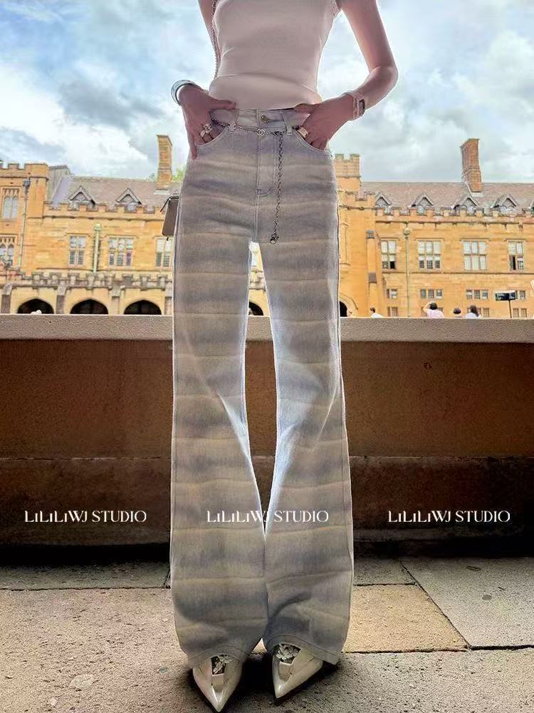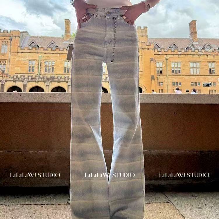 아메리칸 핫걸 레트로 몸매 가꾸기 슬림해 보이는 좁은 에디션 스트레이트 청바지 여성 봄 가을 새로운 디자인 센스 다용도 부츠컷 바지