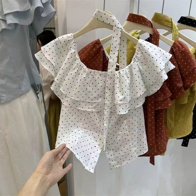 프랑스식 달콤한 스타일 오프숄더 거품 소매 여성 셔츠 프릴 인형 셔츠 부드러운 소녀 바람 맨위 여름 섹션