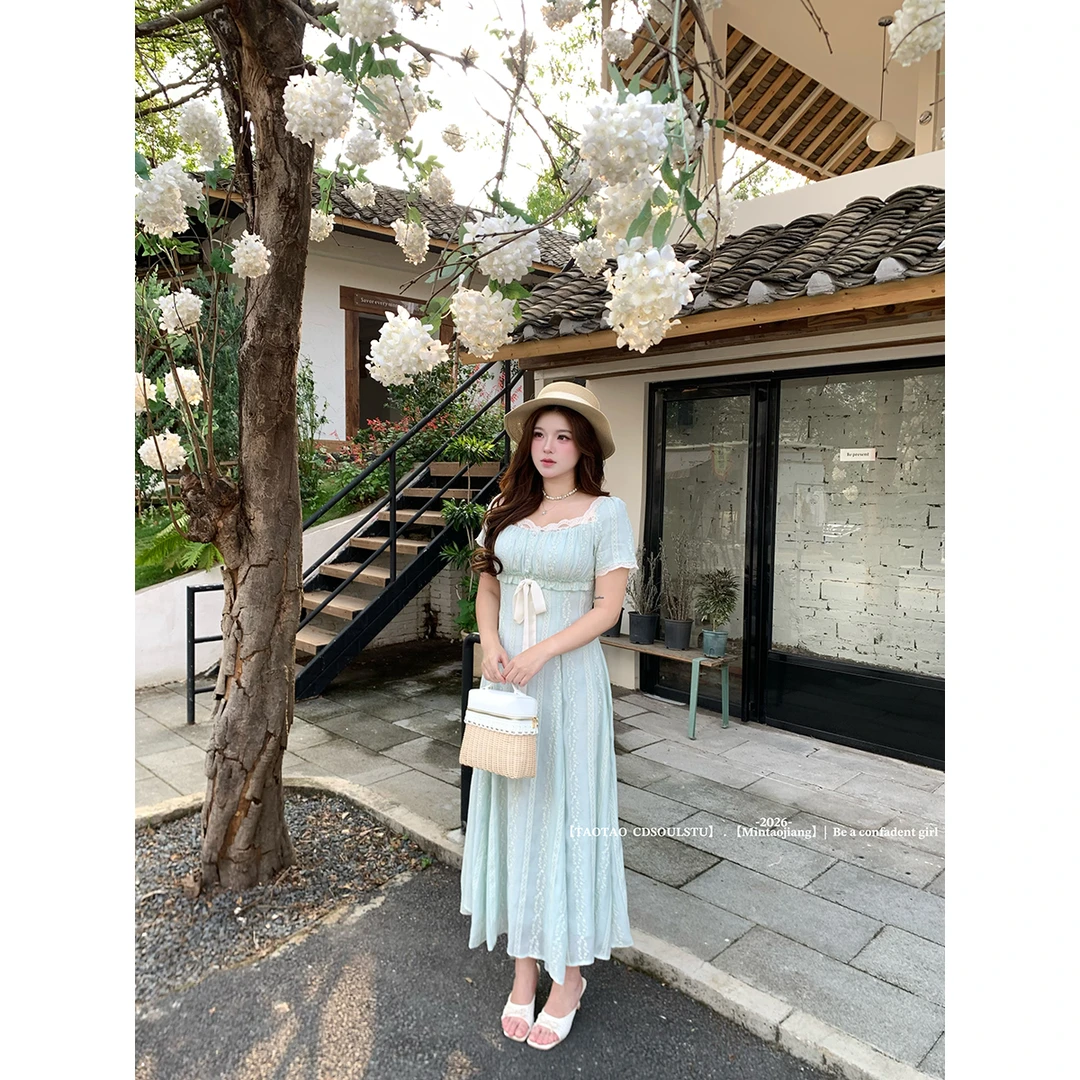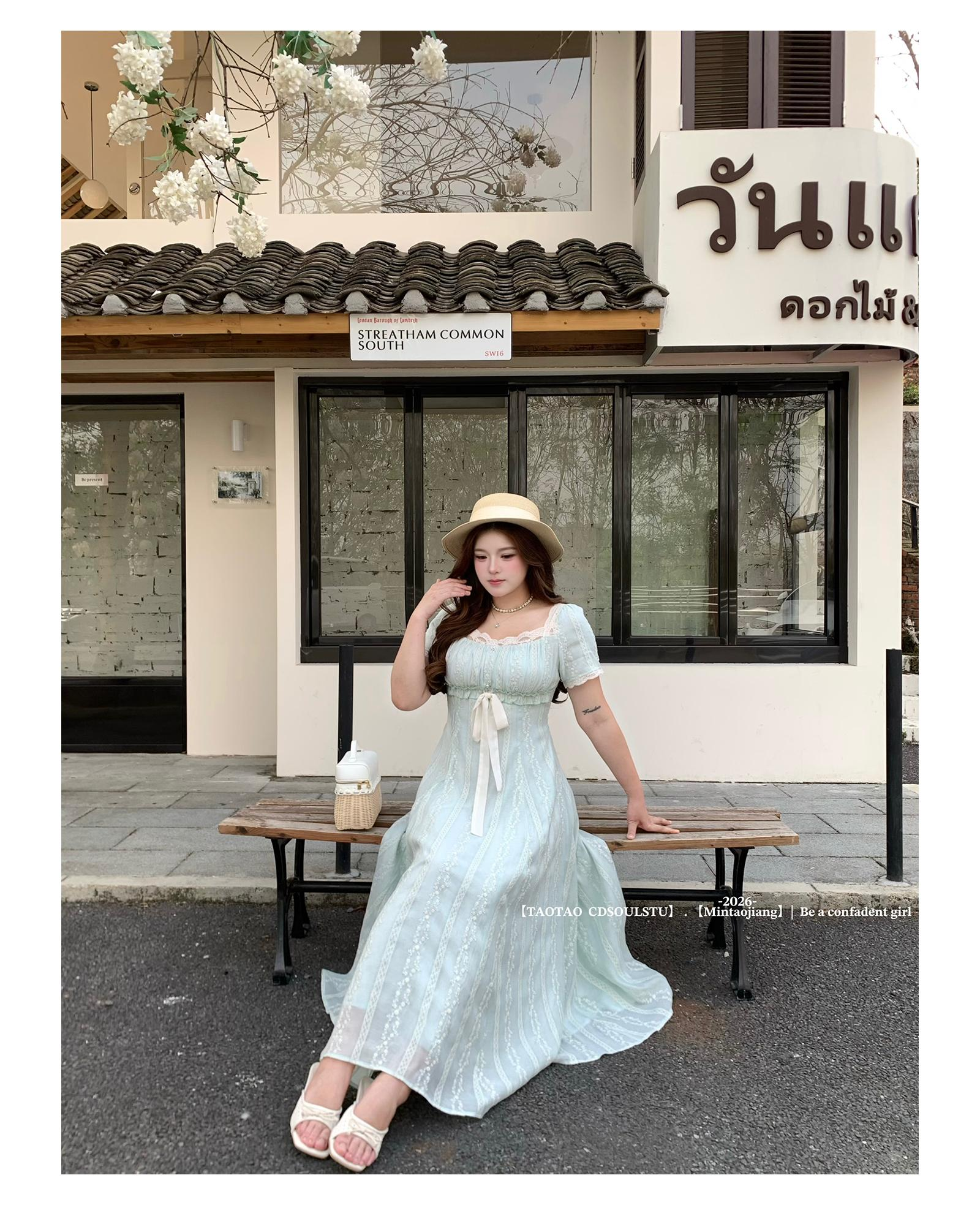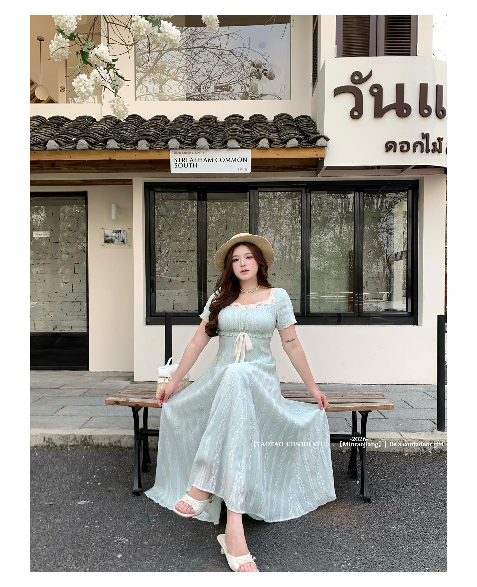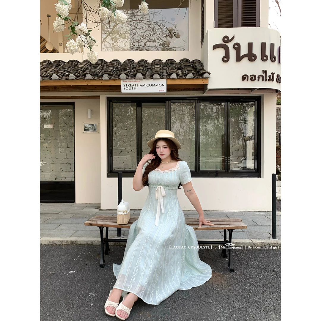 빅 사이즈 마이크로 지방 여성 의류 차 휴식 프랑스식 레트로 드레스 여름 새로운 품격 슬림해 보이는 그는 벤 바람 드레스