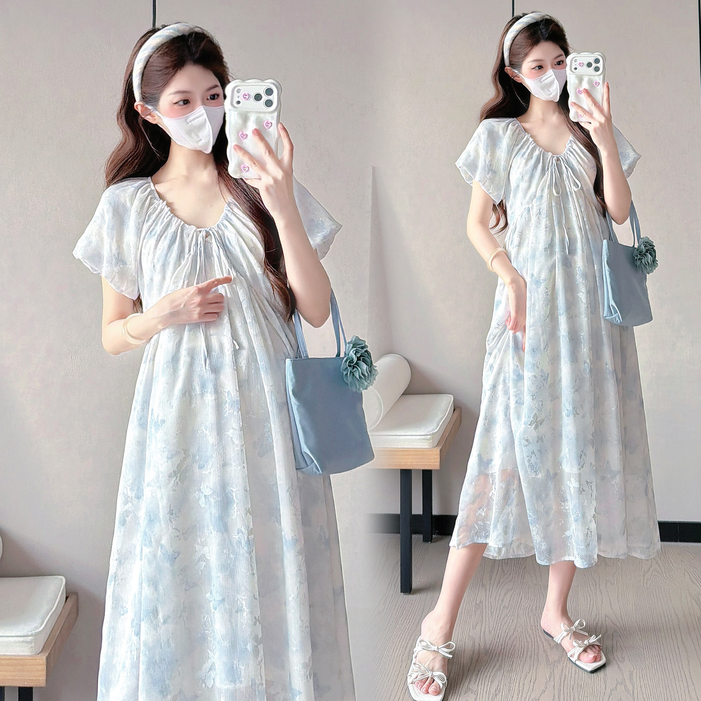 실사 2026 출산 착용 여름 새로운 슬림해 보이는 출산 착용 드레스