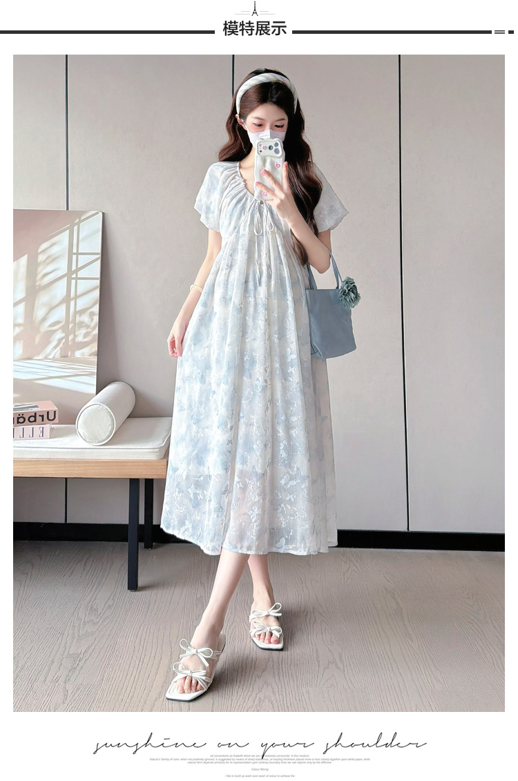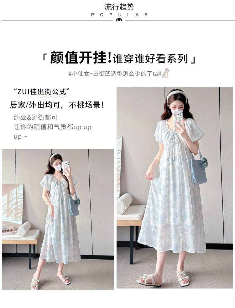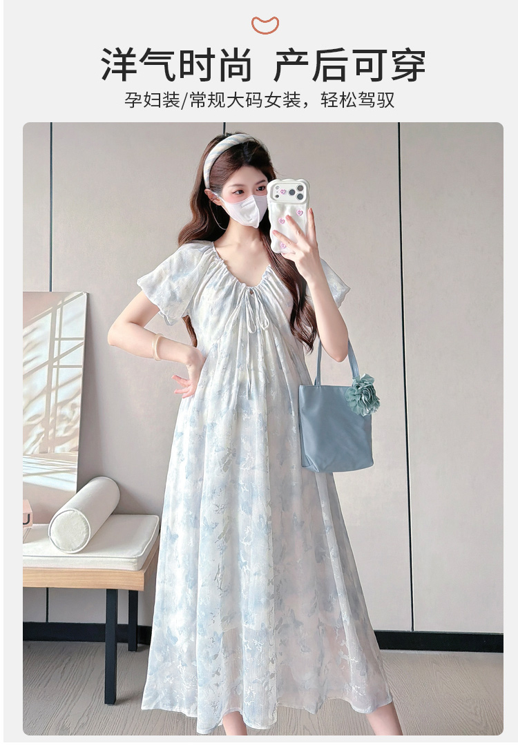실사 지금 또는 2026 출산 착용 여름 새로운 프랑스식 광장 칼라 꽃무늬 임산부 드레스