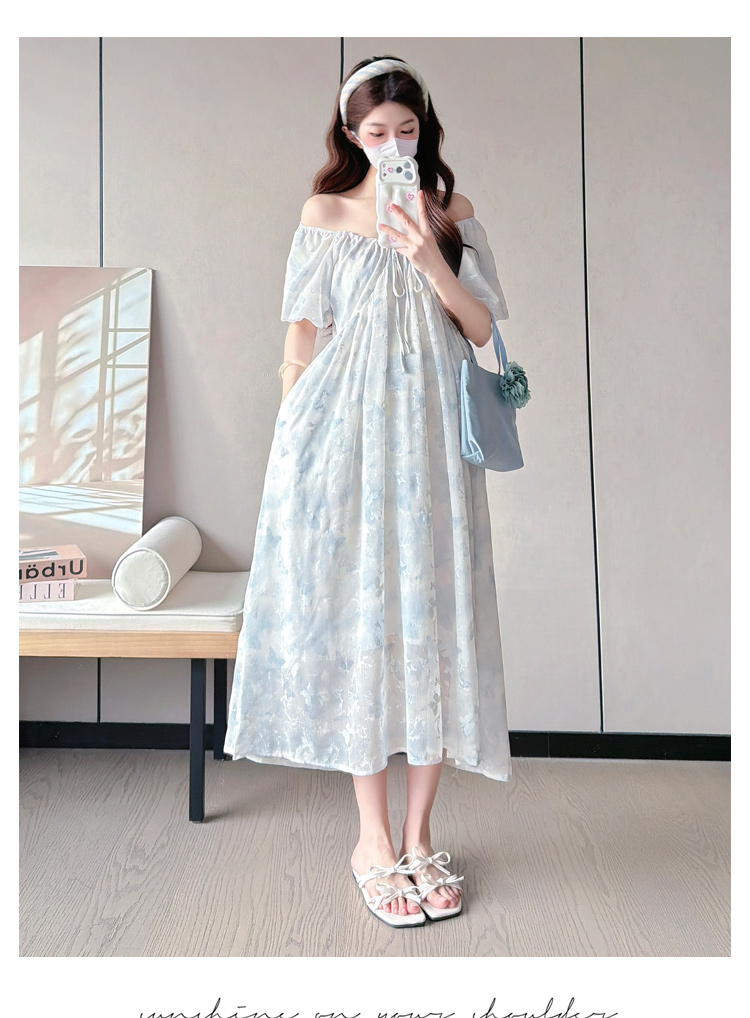 실사 지금 또는 2026 출산 착용 여름 새로운 나비 프린트 달콤함 임산부 드레스