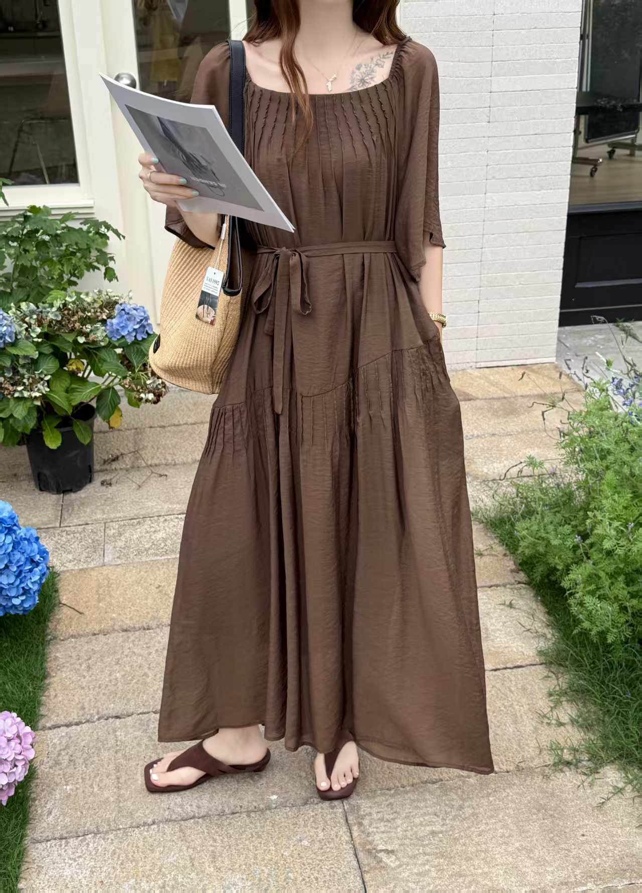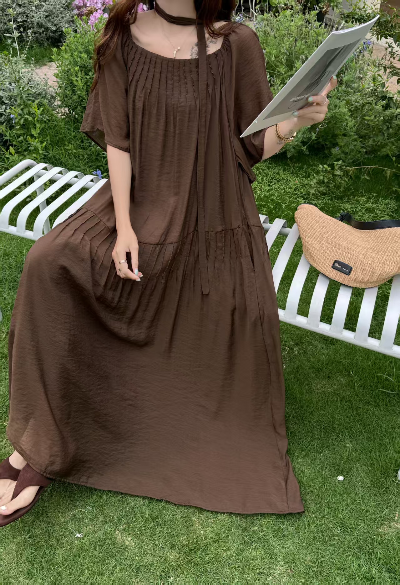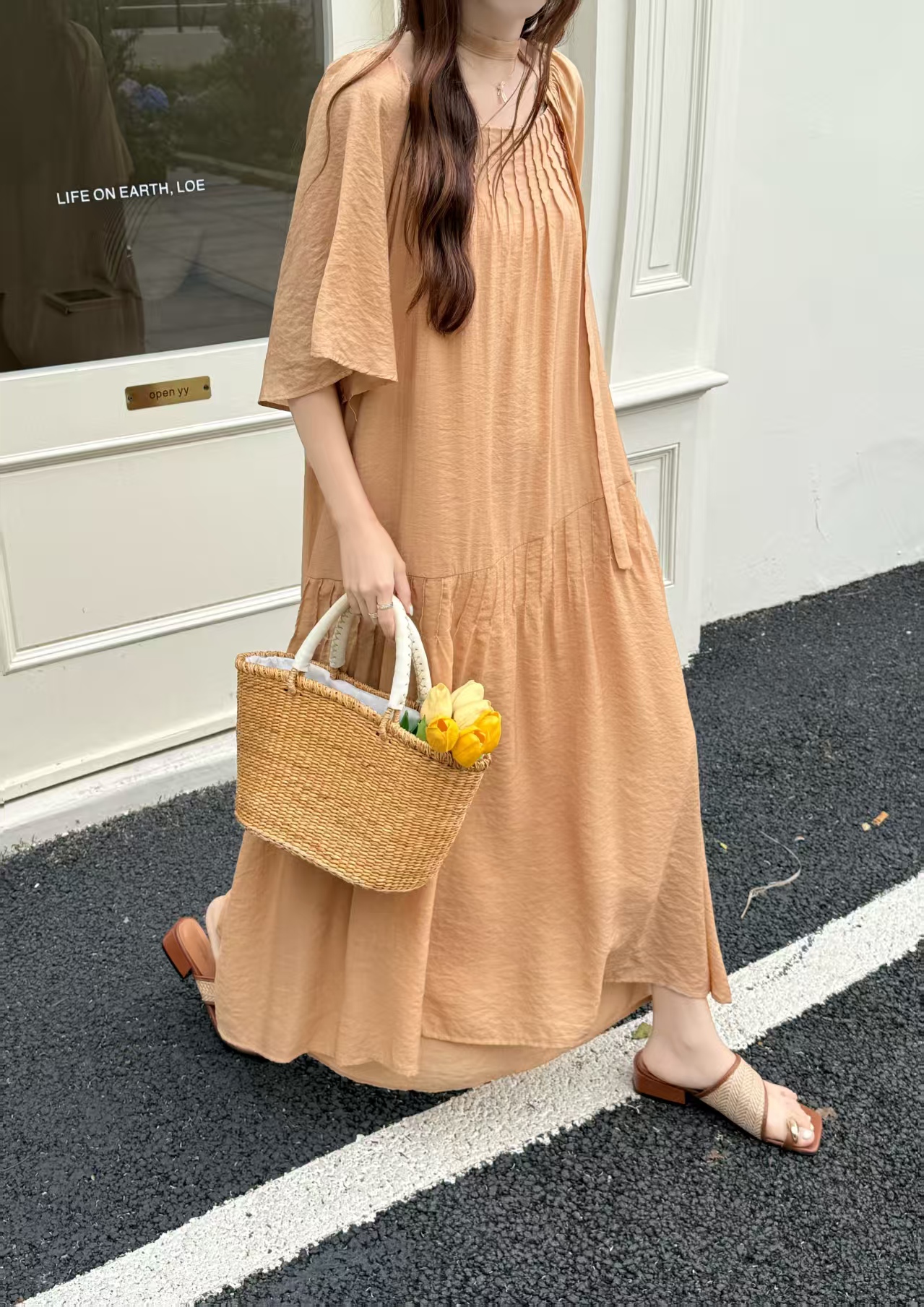 2026 여름 섹션 아메리칸 워크웨어 데님 멜빵 여성 드레스 루즈핏 캐주얼 주름 슬립 드레스 롱 스커트