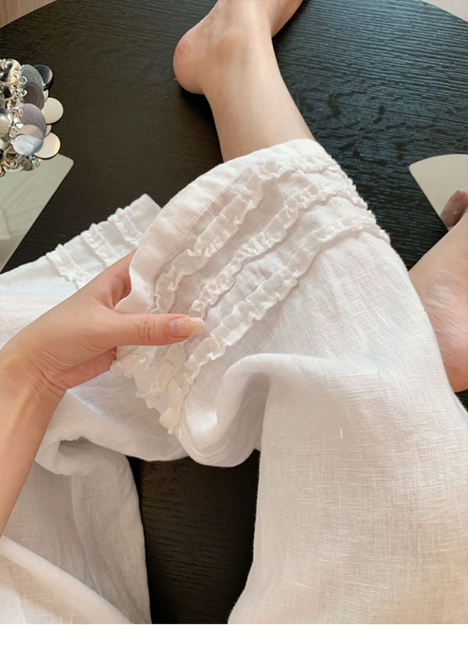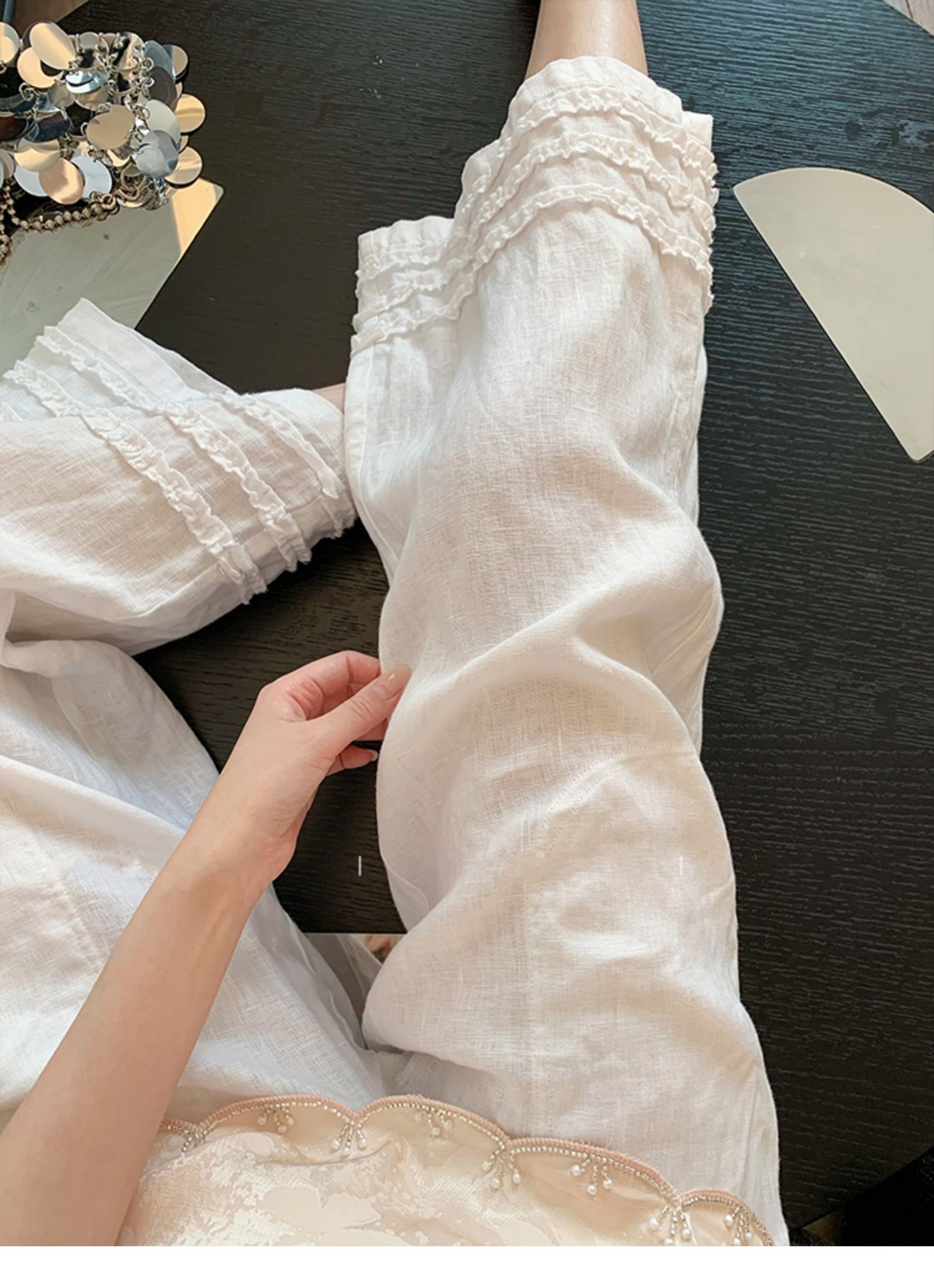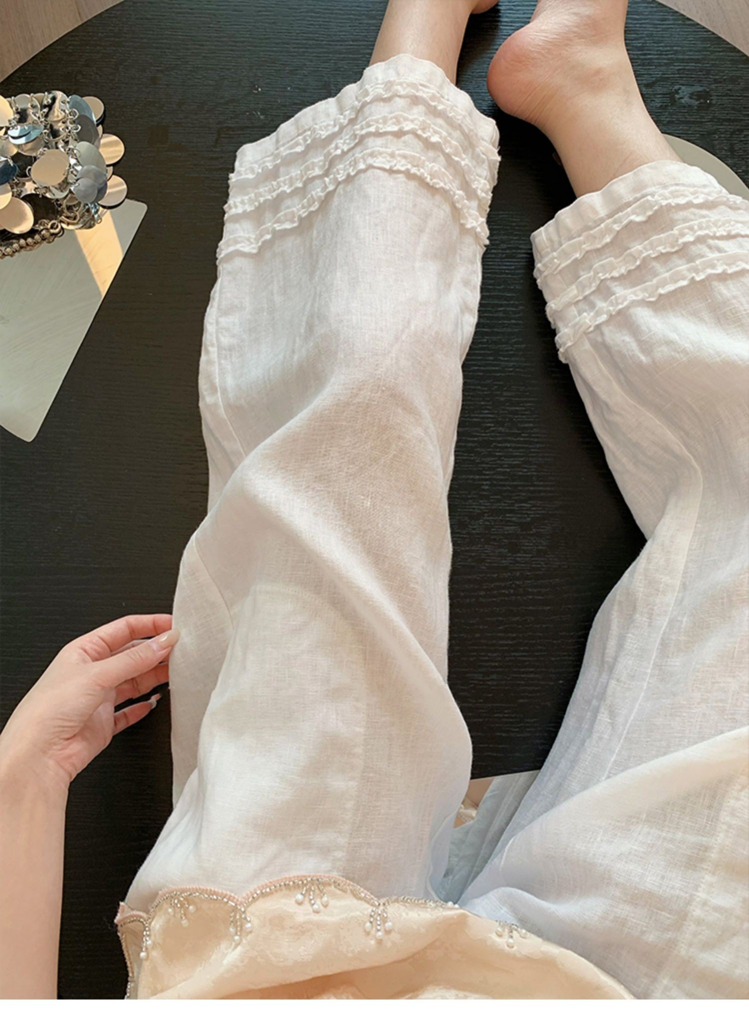 여름 섹션 2026 새로운 프릴 도루 센스 와이드 레그 팬츠 캐주얼 바지 여성