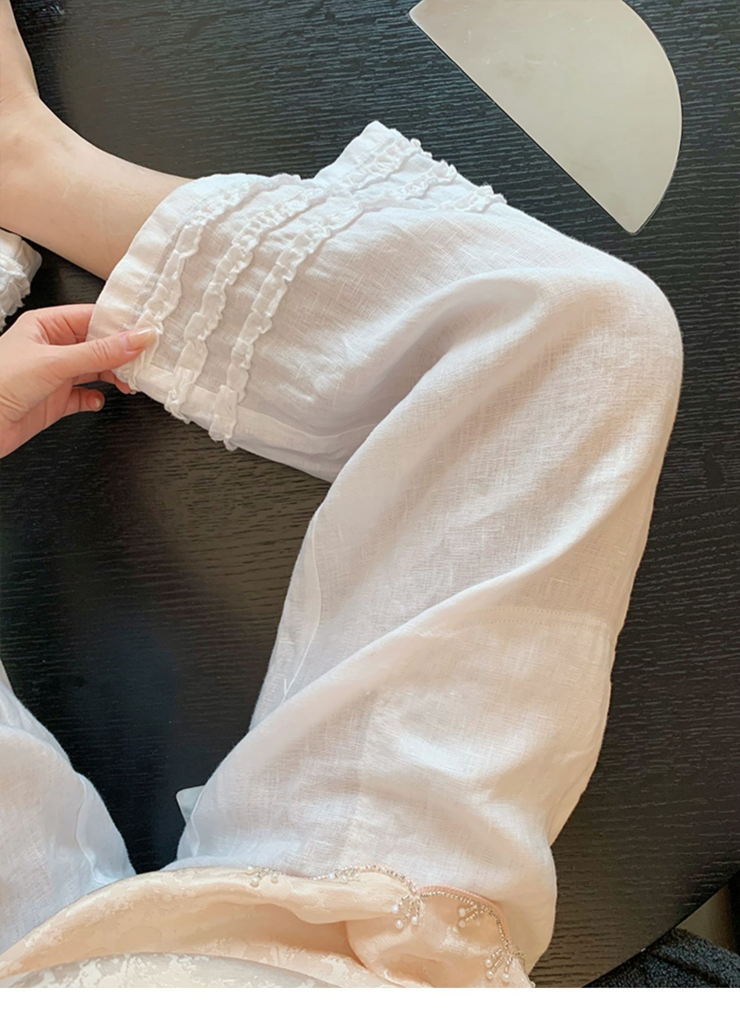 한 부서 패션 품격 다용도 슬림해 보이는 넓은 다리 치마바지 2025 새로운 고급 레이스 측면 캐주얼 스트레이트 팬츠