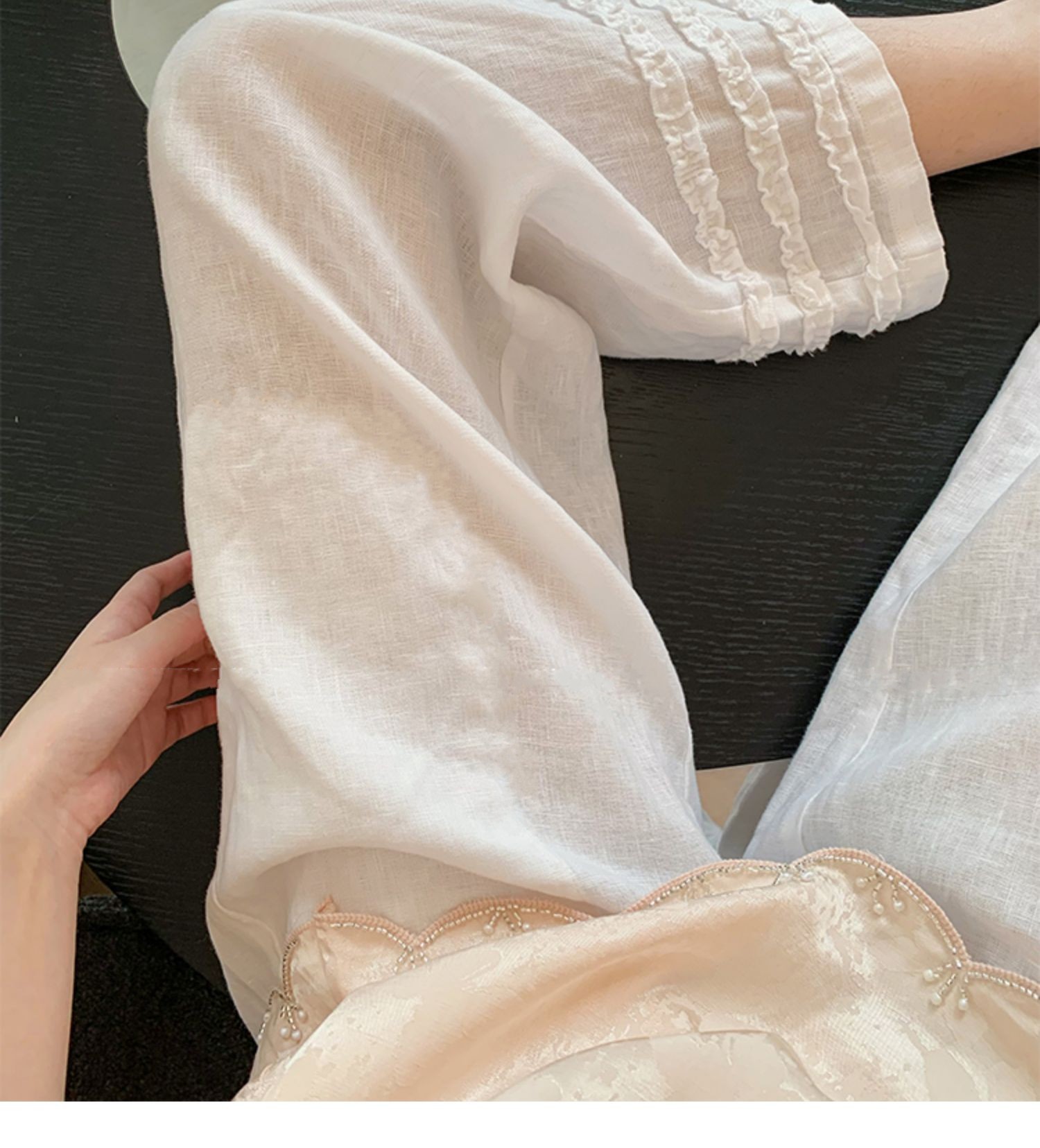 자수 레이스 와이드 레그 팬츠 디자인 센스 하이웨이스트 슬림해 보이는 허리밴드 레이스 패치워크 바지 도루 센스 캐주얼 바지