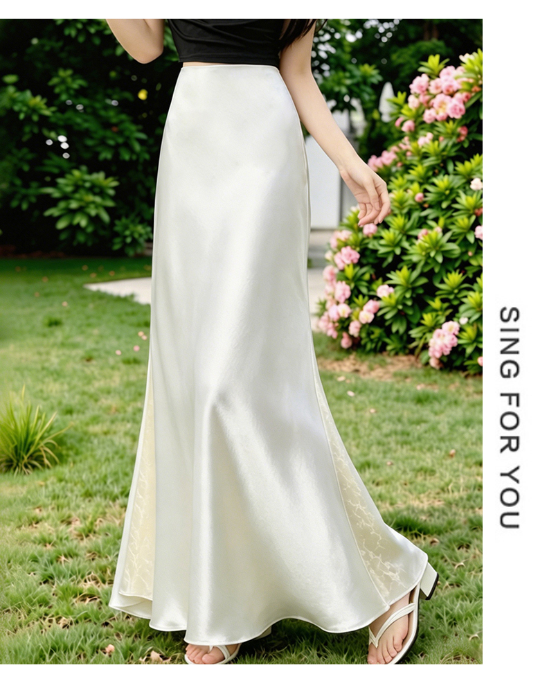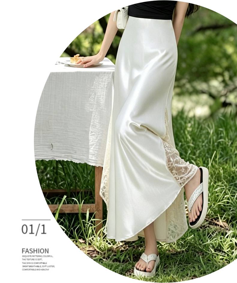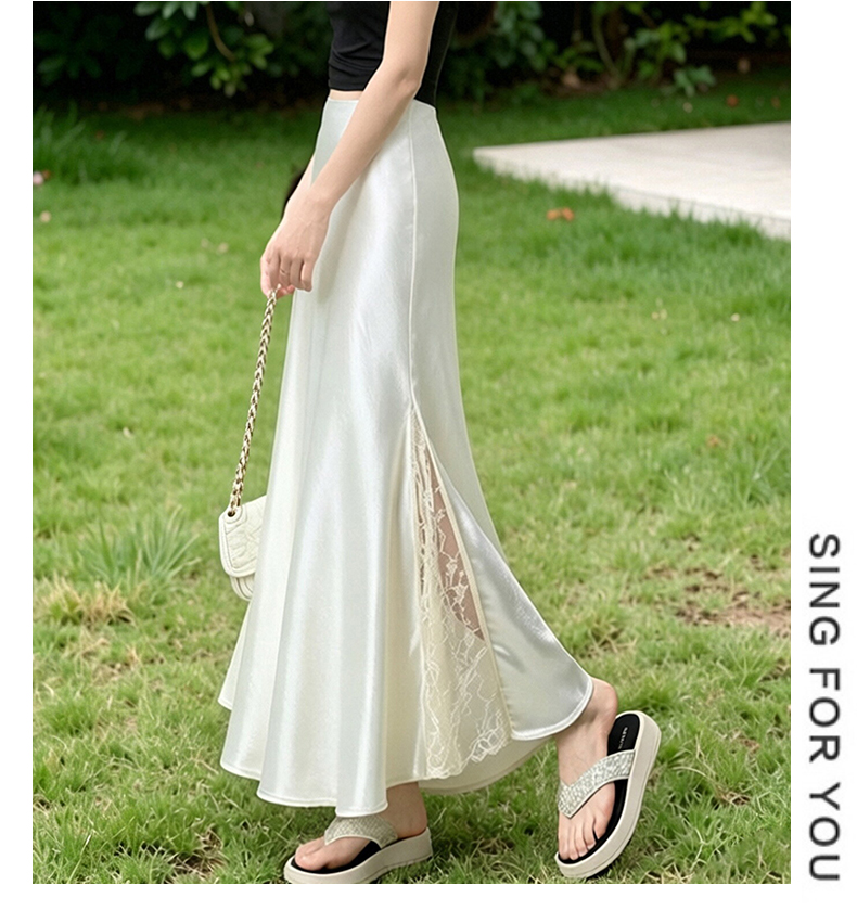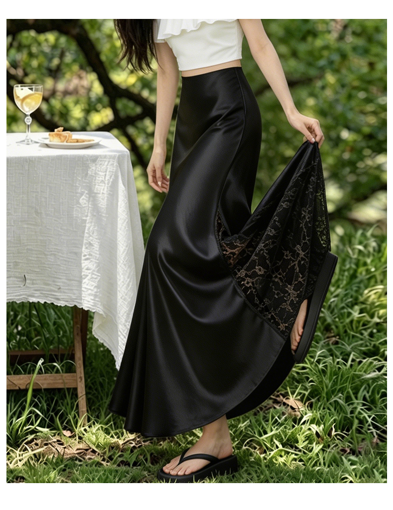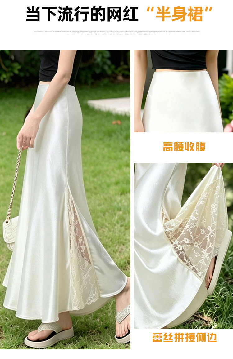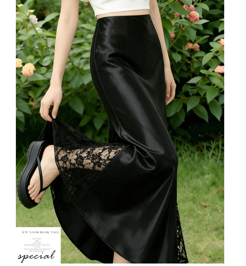 실사 빛 럭셔리 아세트산 무거운 도루 센스 실크 미끄러짐 롱 스커트 레이스 새틴 하이웨이스트 슬림해 보이는 반신 인어 꼬리 한 마디 롱 스커트