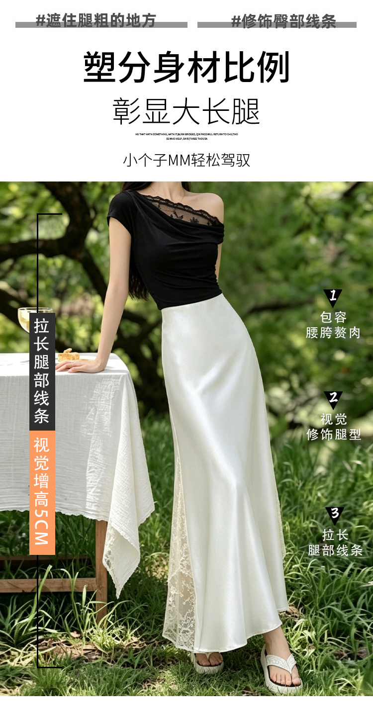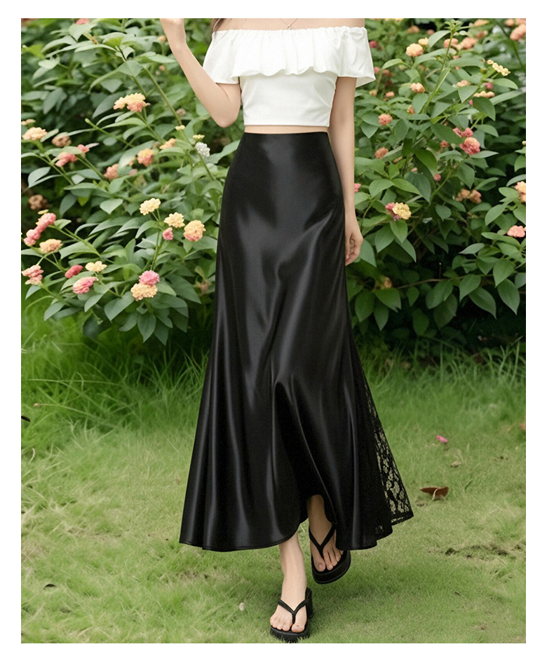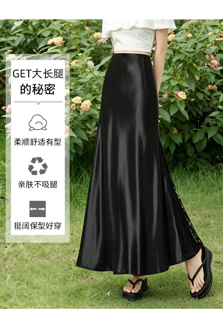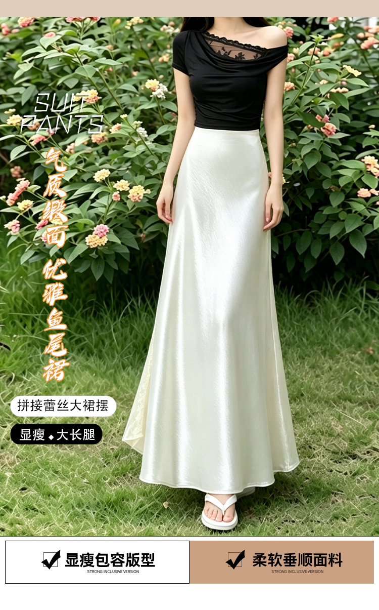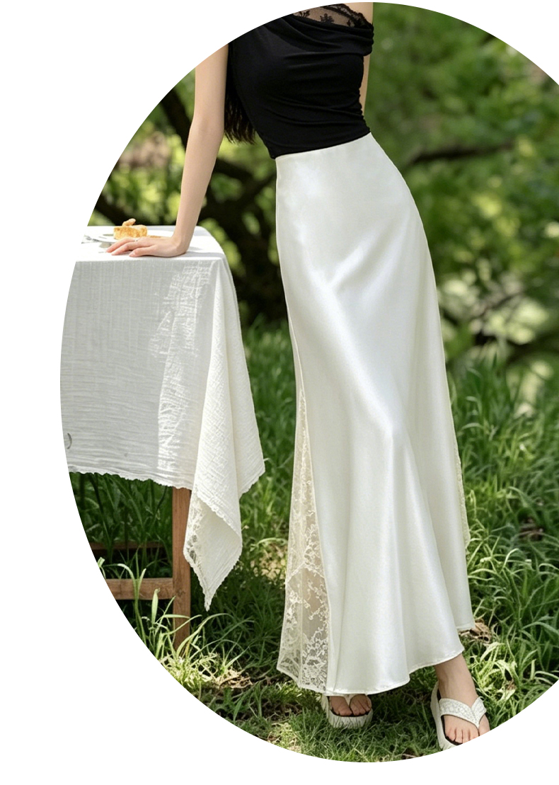 실사 빛 럭셔리 아세트산 무거운 도루 센스 실크 미끄러짐 롱 스커트 레이스 새틴 하이웨이스트 슬림해 보이는 반신 인어 꼬리 한 마디 롱 스커트