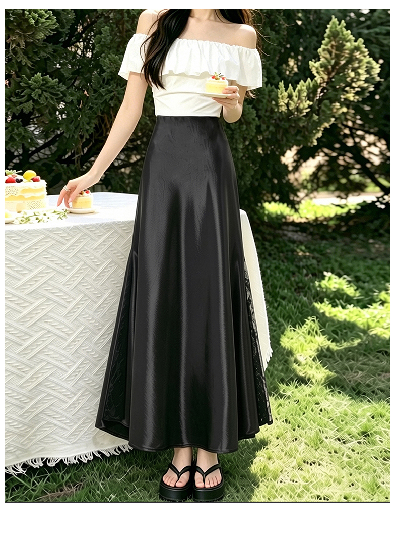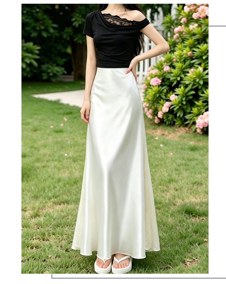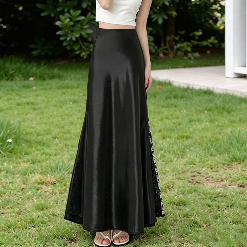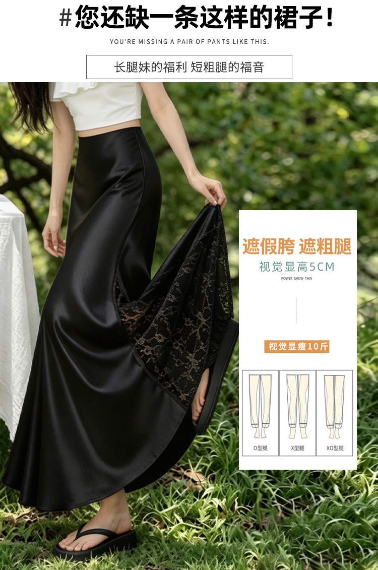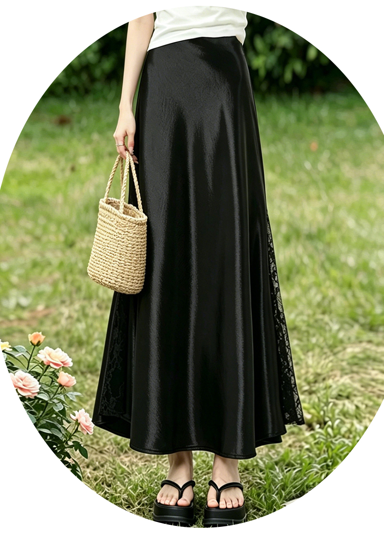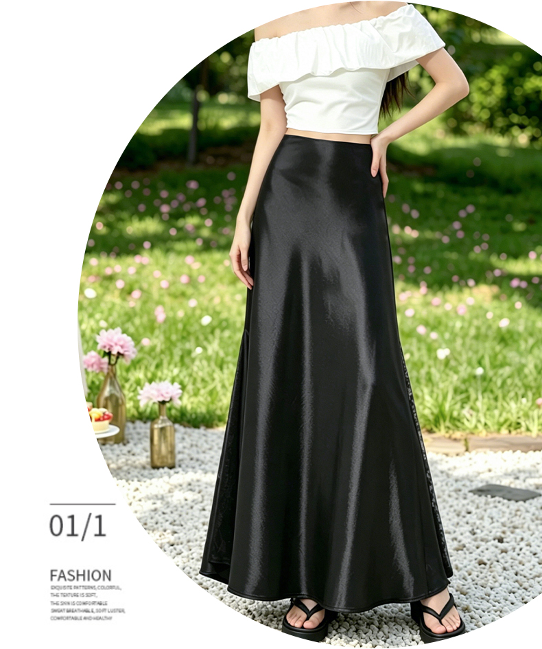 실사 빛 럭셔리 아세트산 무거운 도루 센스 실크 미끄러짐 롱 스커트 레이스 새틴 하이웨이스트 슬림해 보이는 반신 인어 꼬리 한 마디 롱 스커트