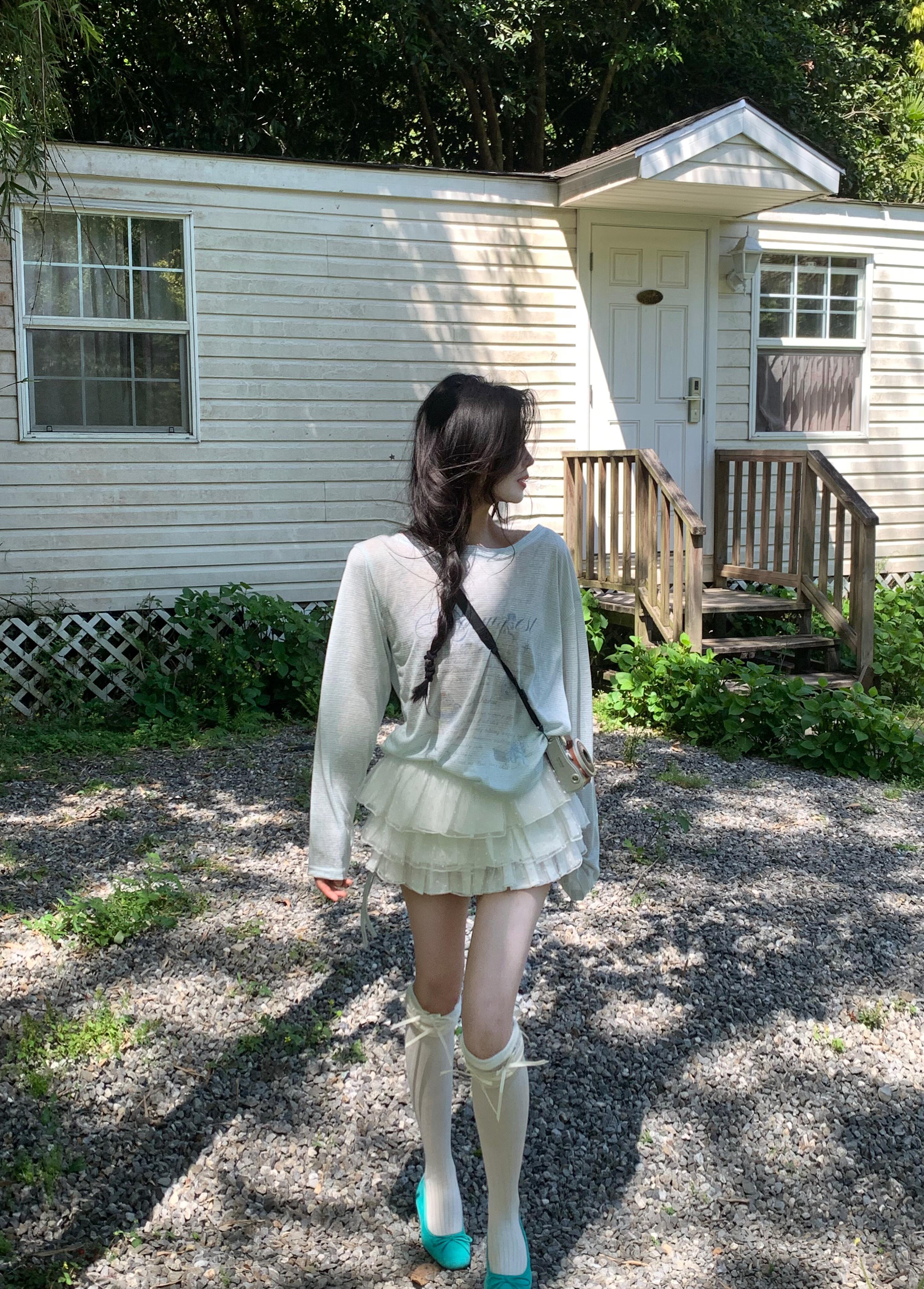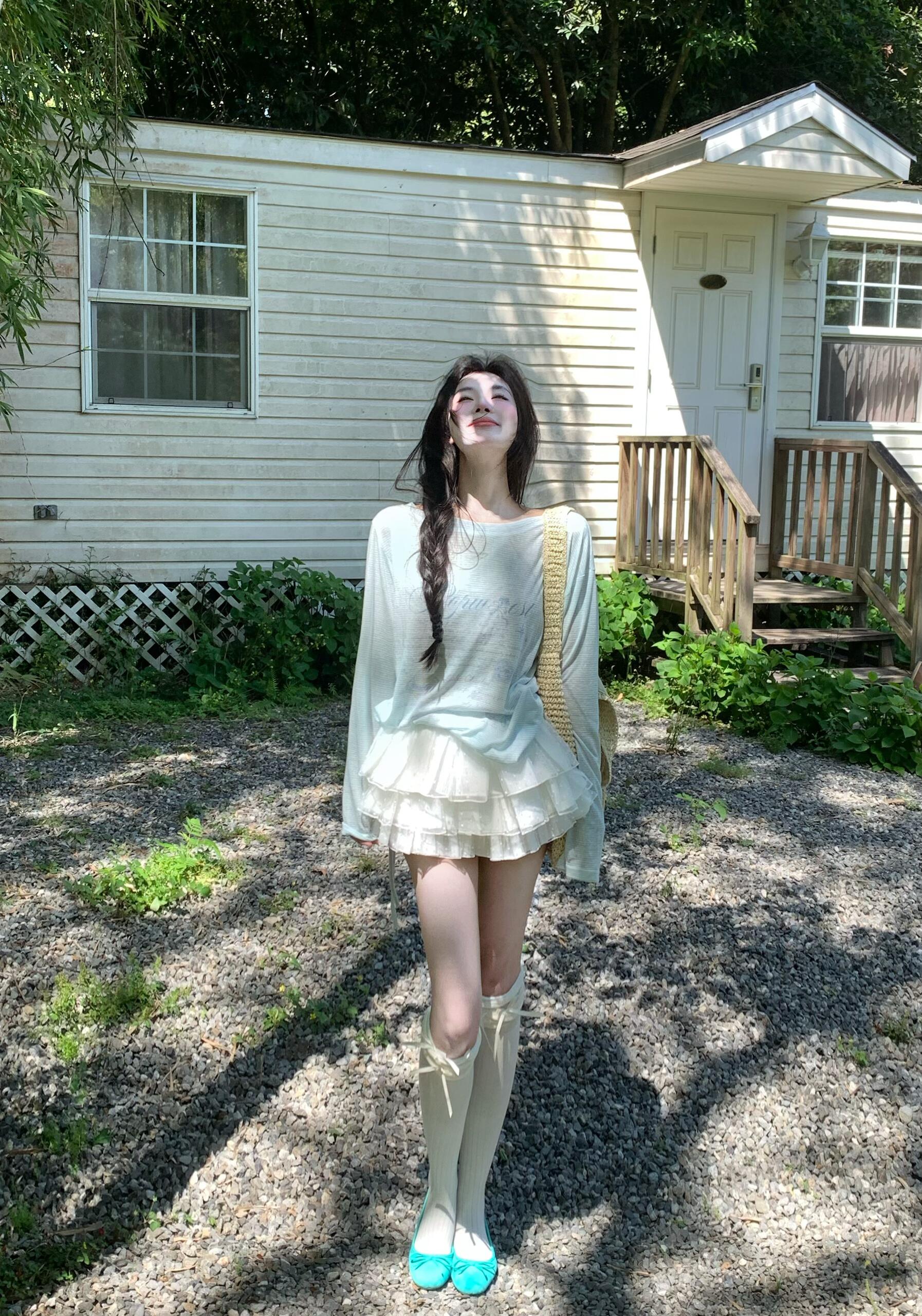 여름 초여름 아름다운 세트 여성 여름 2026 새로운 작은 키 니트 맨위 반 스커트 우산 치마 투피스 세트 치마