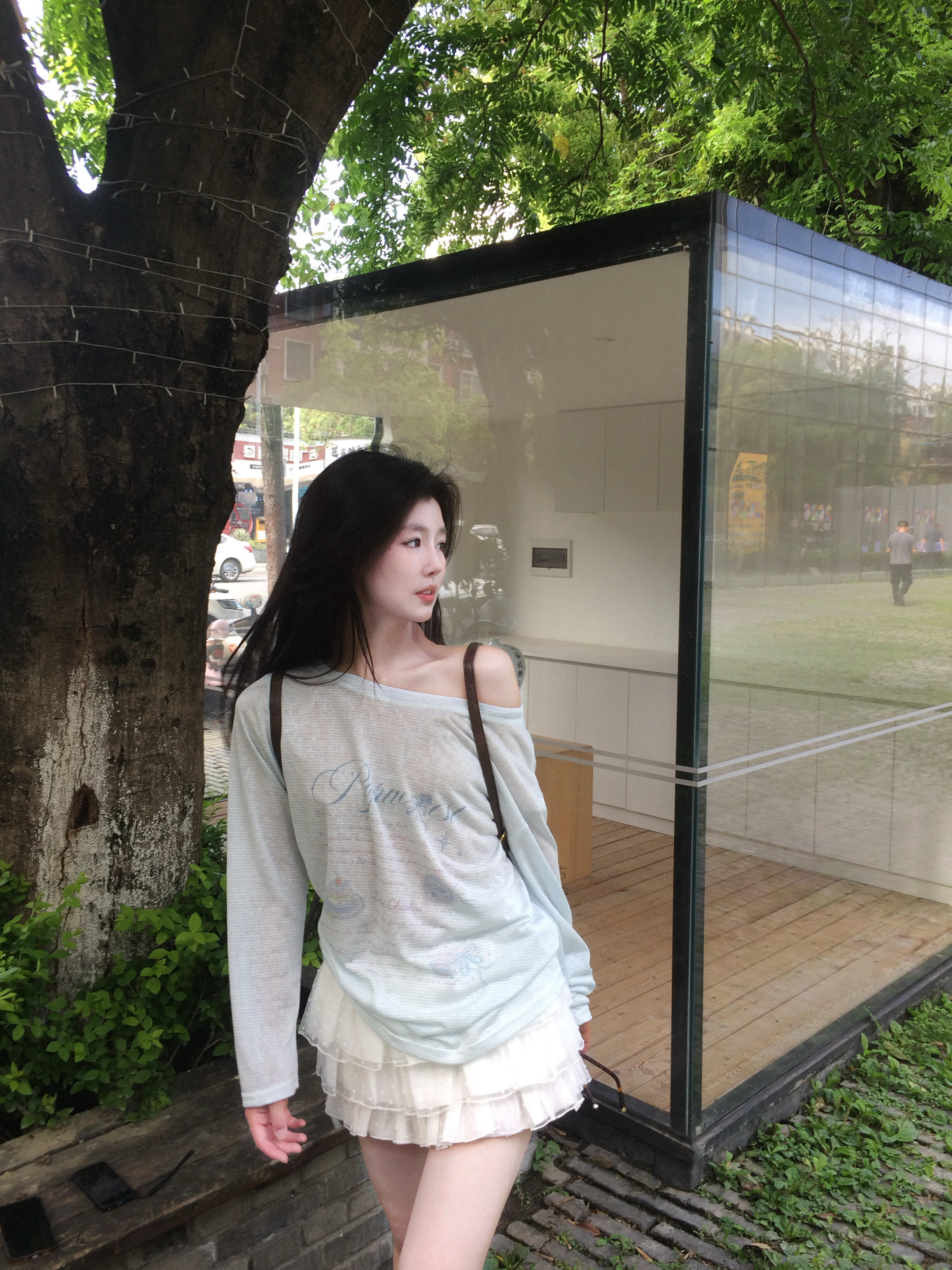 홀로우 아웃 광장 칼라 오프숄더 거품 소매 작은 셔츠 나비 매듭 새싹 셔츠 여성 셔츠 반신 스커트