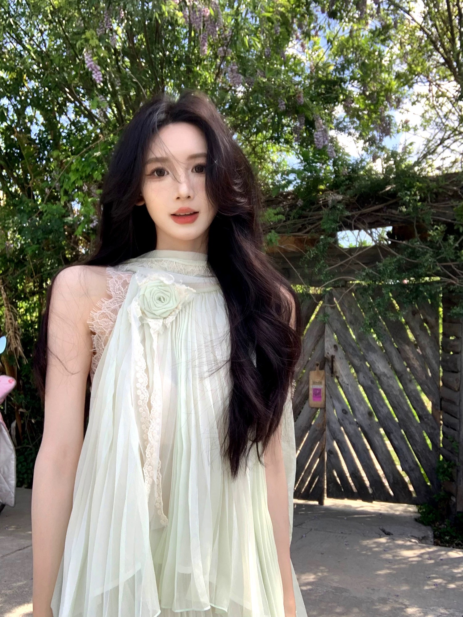 acaine 마이크로 팬 스택 보라색 그라데이션 레이스 행침 목 맨위 반 스커트