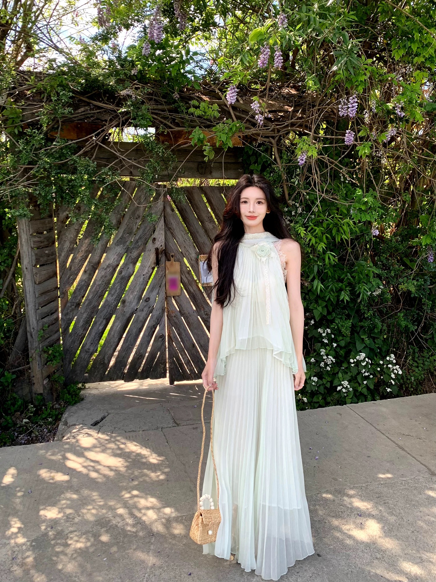 부드러운 바람 3 차원 꽃 슬립 반 스커트 세트 여름 착용 가져 가라.