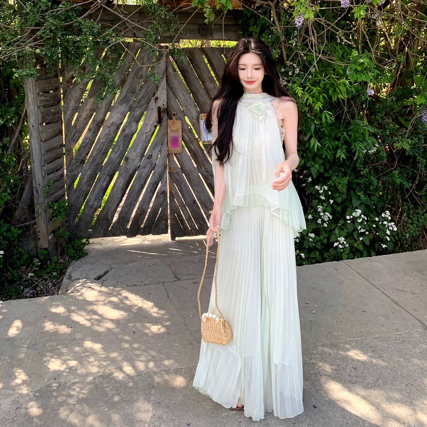 4.7 10 00am 켜기 새로운 시리아 여름 레이스 치마 튜브탑 투피스 세트