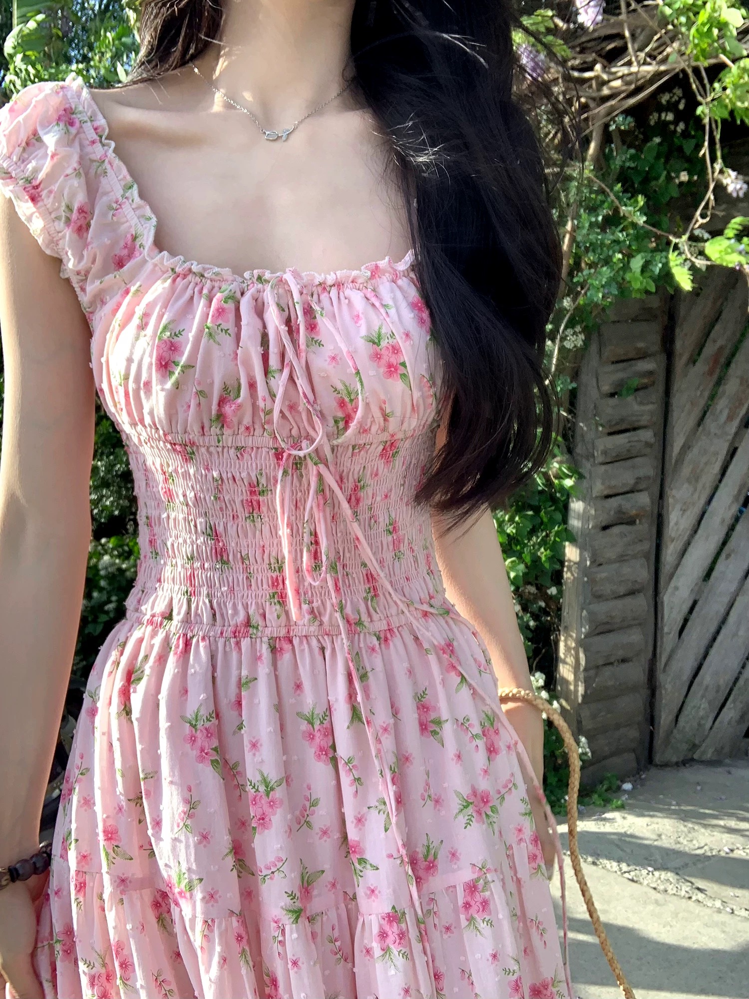 부드러운 바람 3 차원 꽃 슬립 반 스커트 세트 여름 착용 가져 가라.