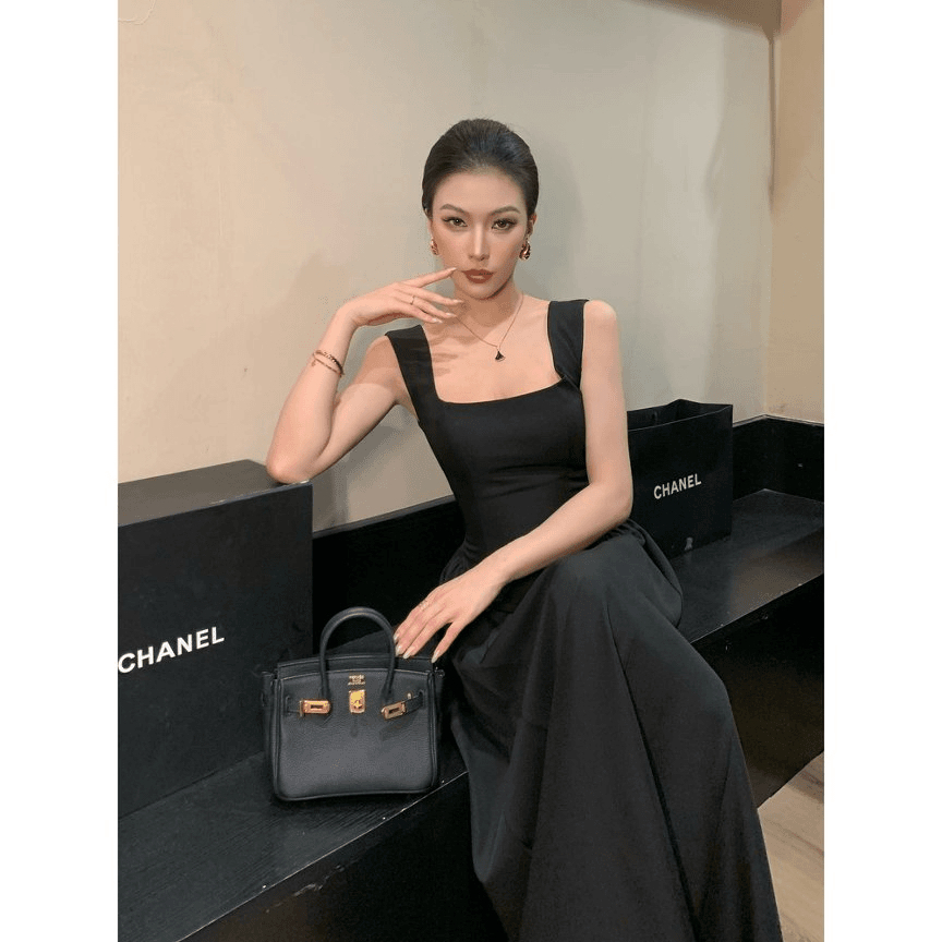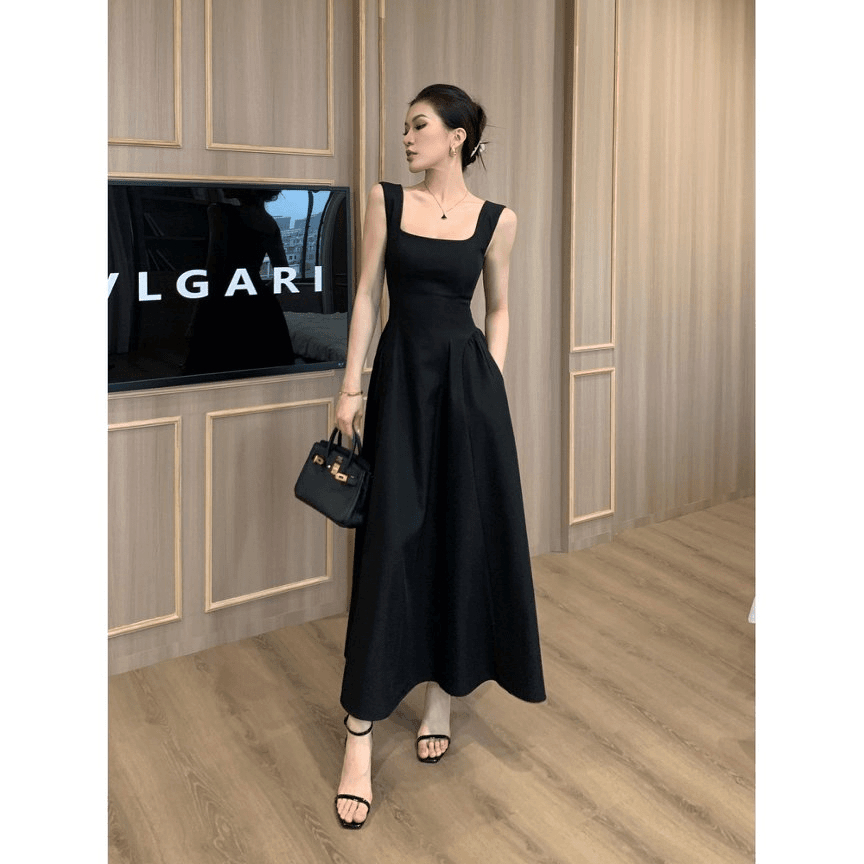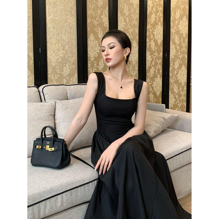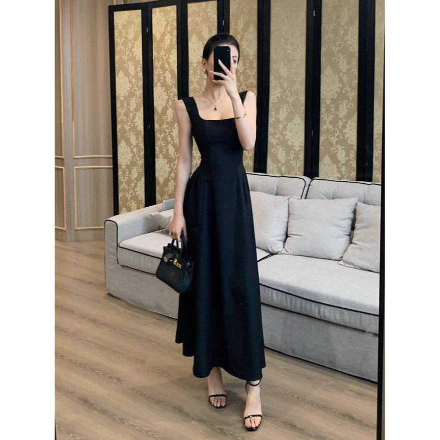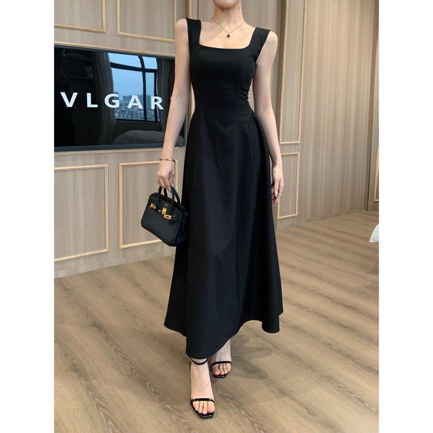 패션 여름 몸매 가꾸기 품격 그는 벤 바람 허리 수축 슬림해 보이는 검정색 드레스