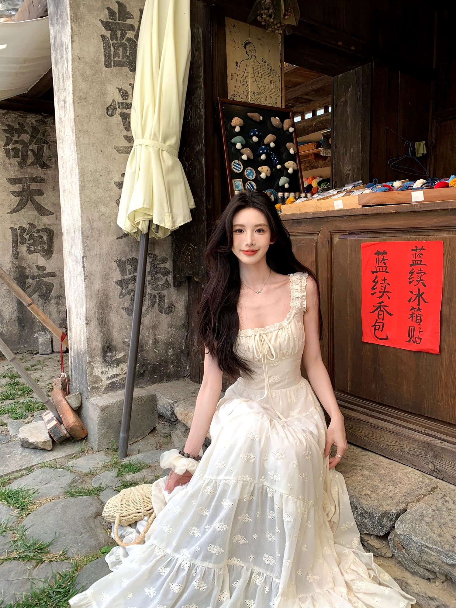 부드러운 바람 3 차원 꽃 슬립 반 스커트 세트 여름 착용 가져 가라.