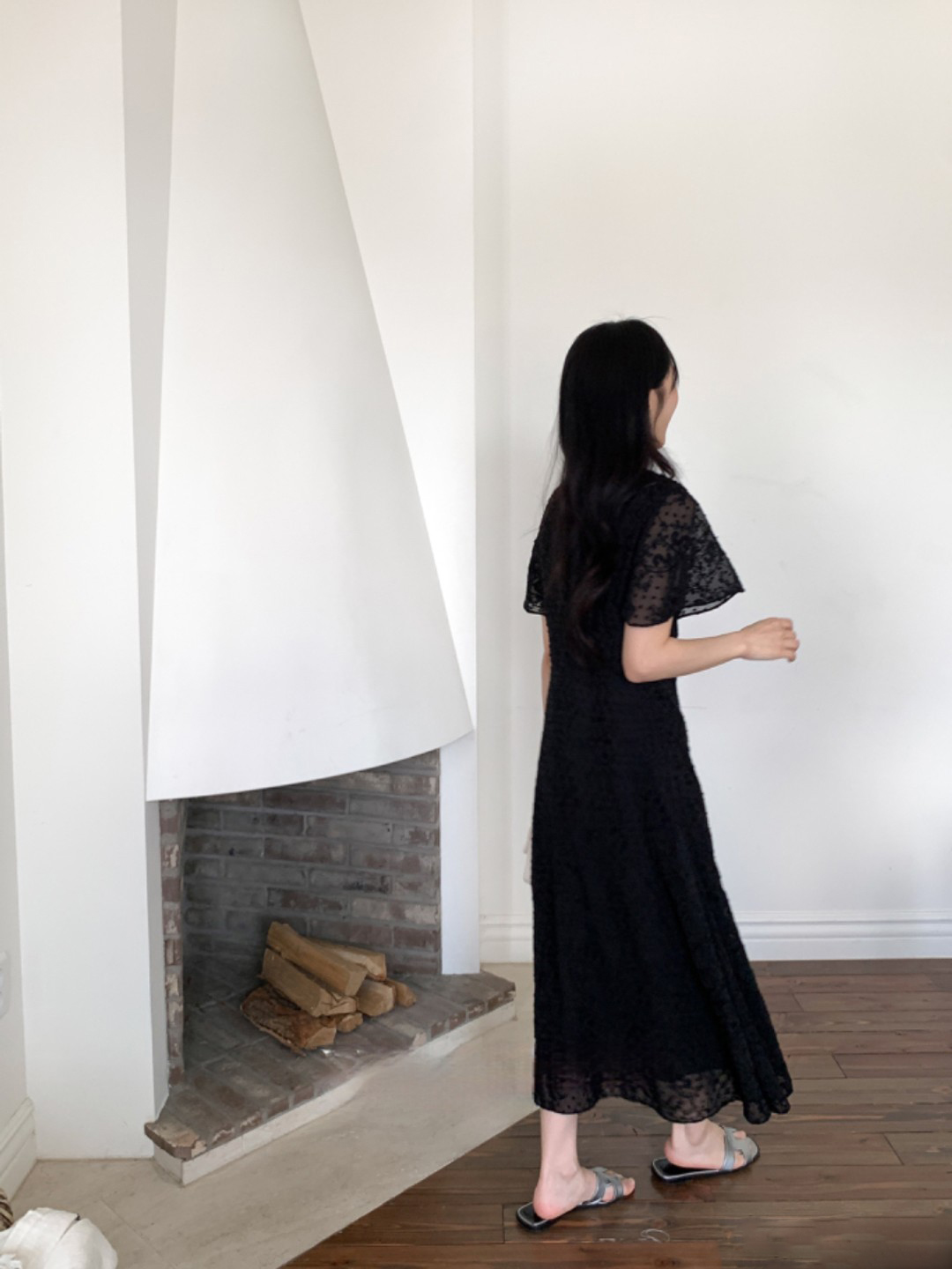 크기 가지고있다 업데이트 레이스업 라운드 넥 플리츠 하이웨이스트 슬림해 보이는 거품 소매 큰 진자 종류 드레스 롱 스커트