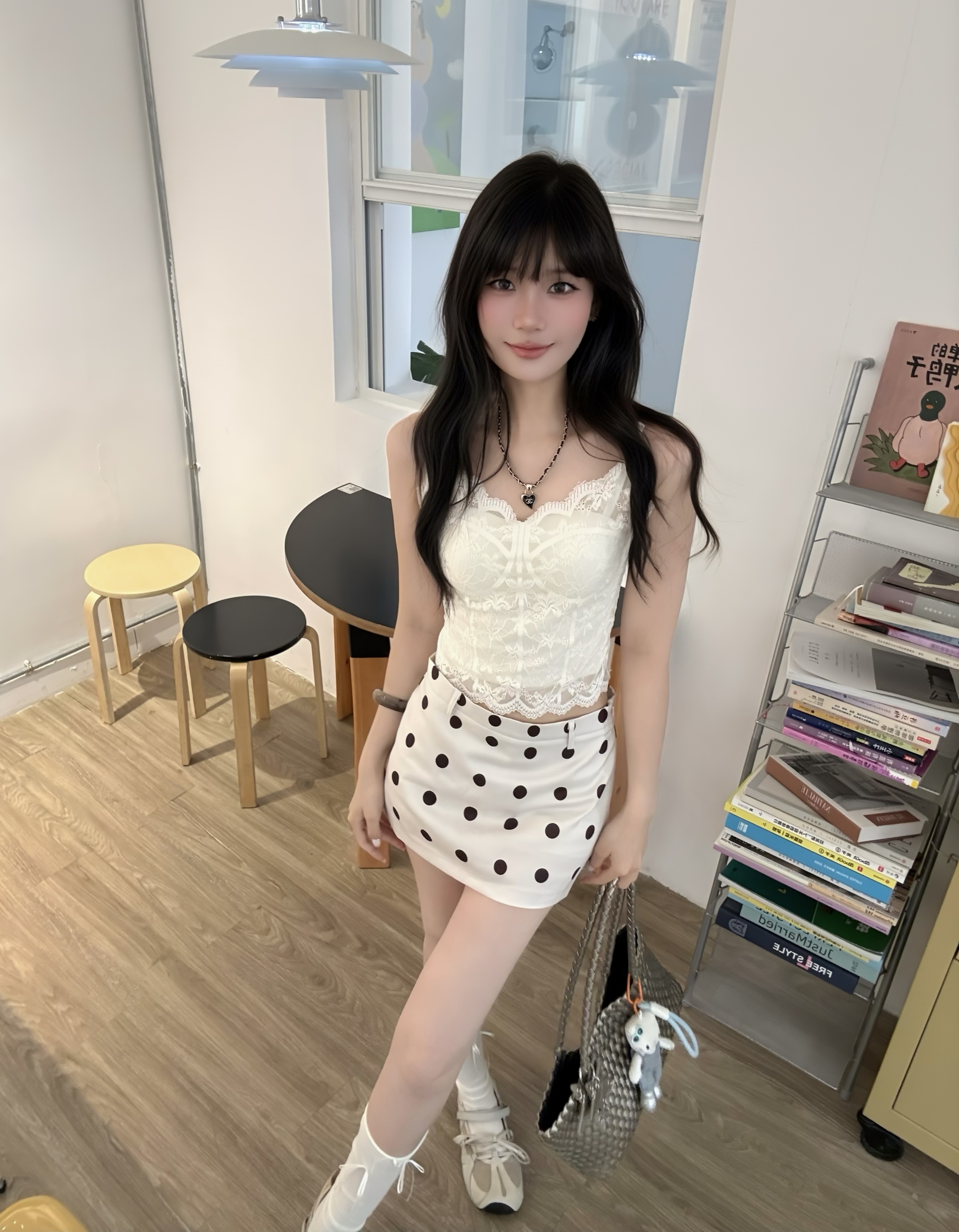 실사 정가 순수한 욕망 화이트 슬립 작은 조끼 여성 레이스 인사이드 가져 가라. 만나는 쇼트 스타일 달콤한 핫걸 외출용 맨위