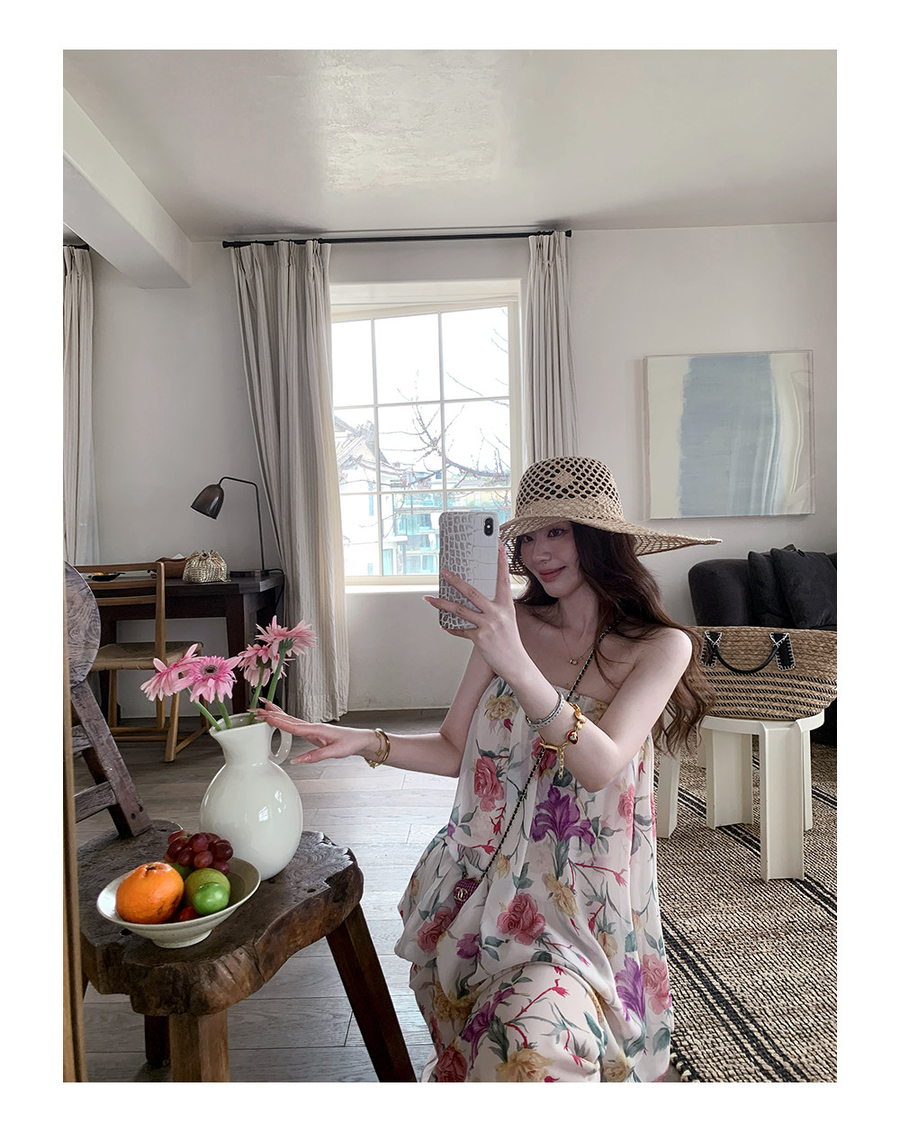 하나 달콤한 복숭아 yikett 플러그 Na 꽃 집 해변가 착용 가져 가라. 꼬집기 허리 슬립 여성 드레스 여름 원피스 치마