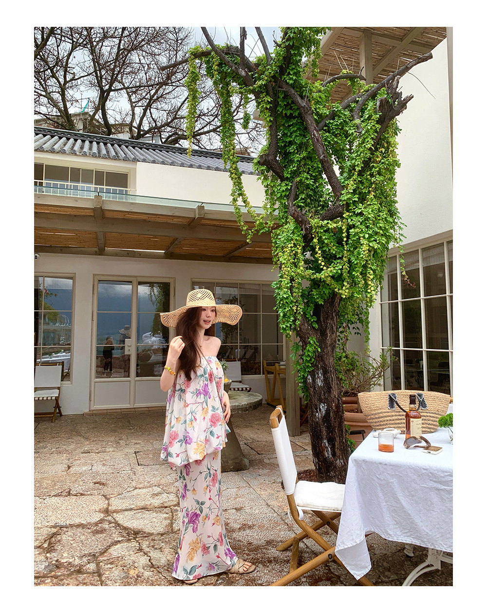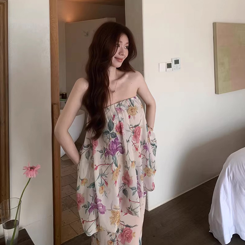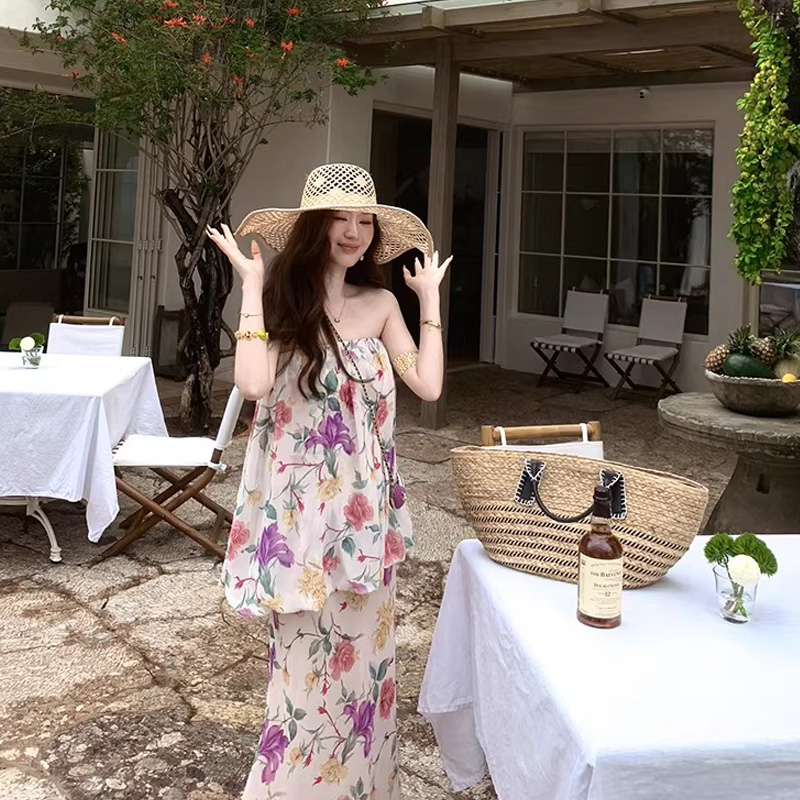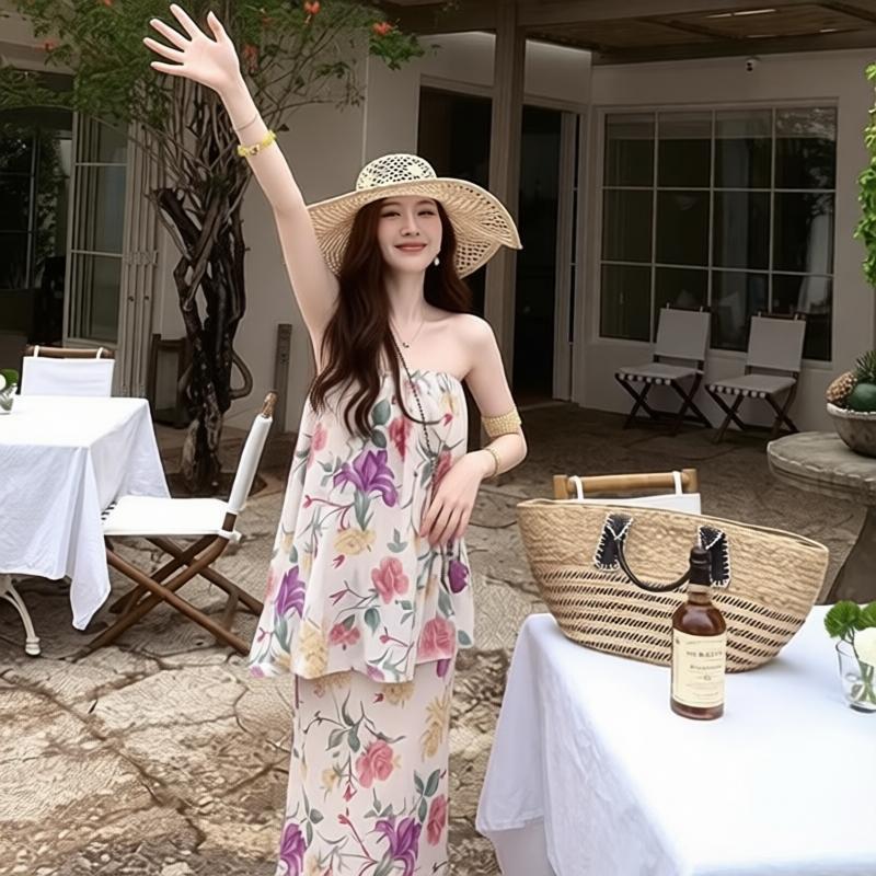 한 번 작은 짭짤한 휴가 바람 착용 가져 가라. 레이스 측면 캐미솔 세트 여성 2026 여름 루즈핏 와이드 레그 팬츠 투피스 세트