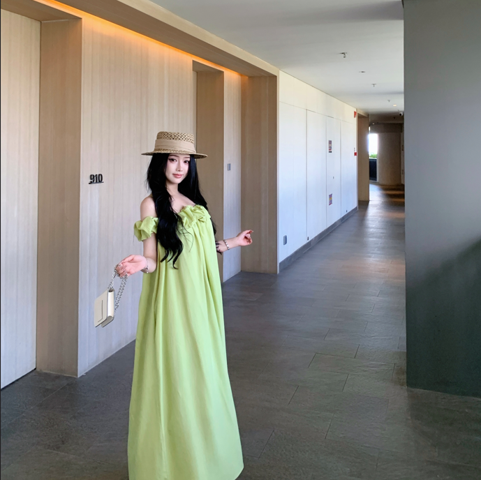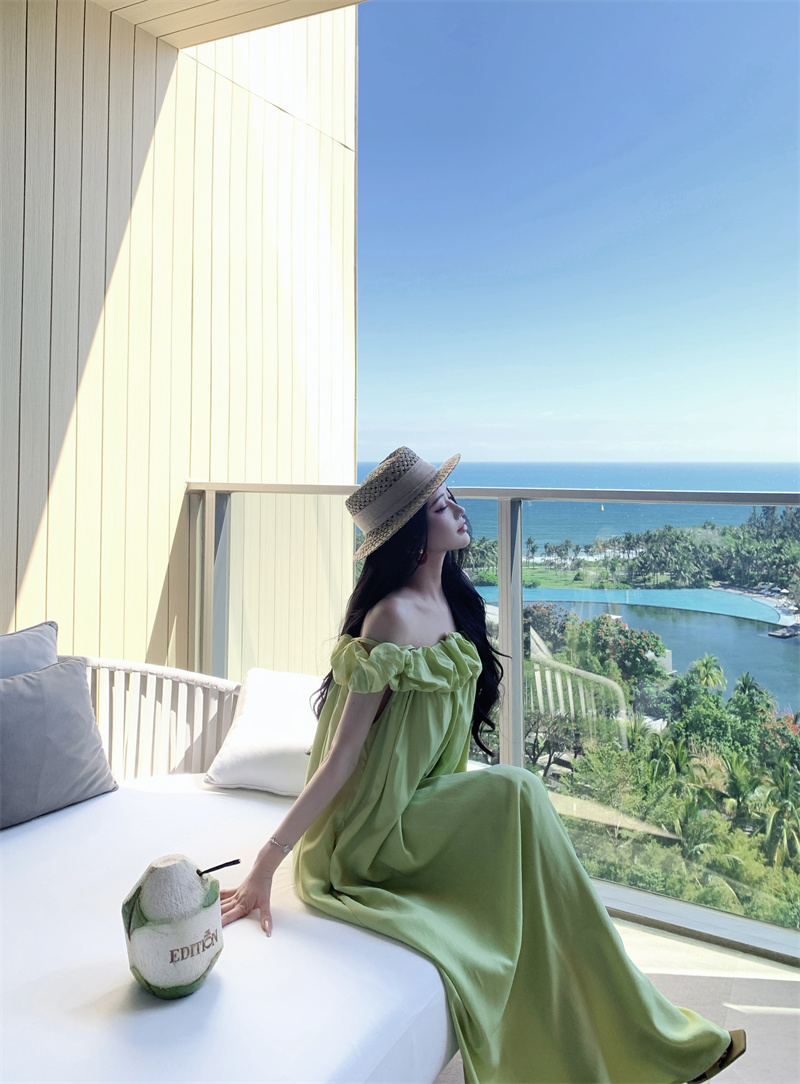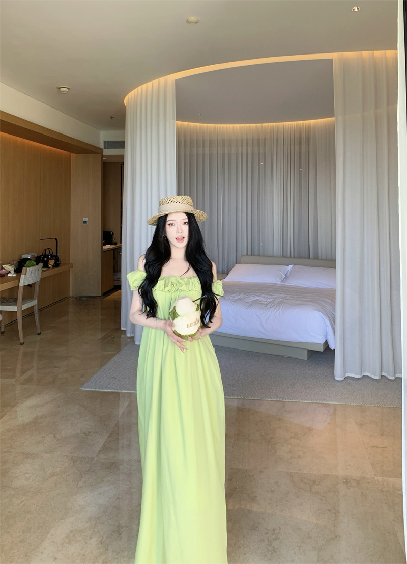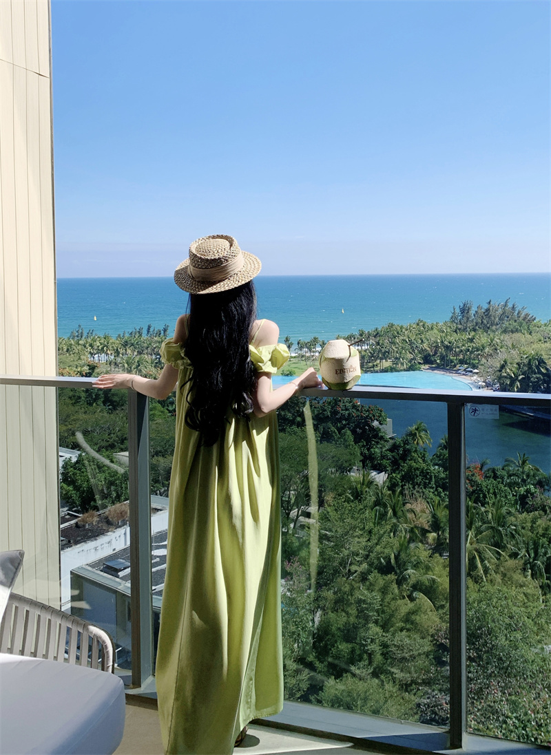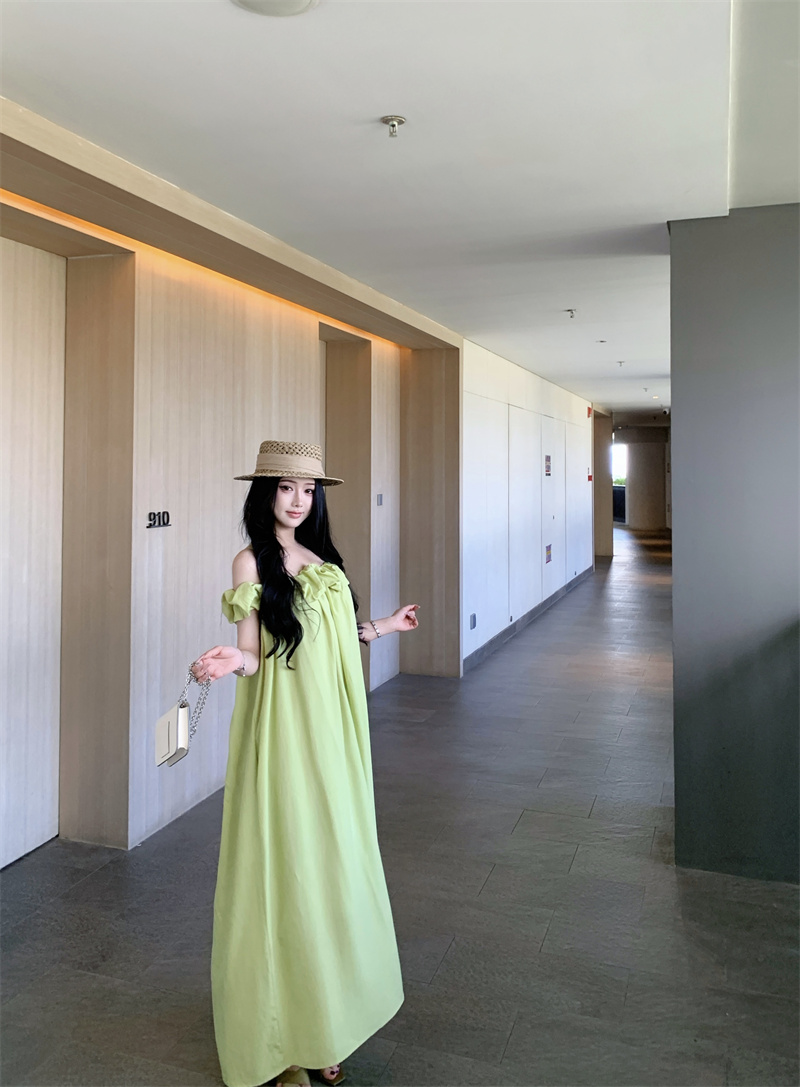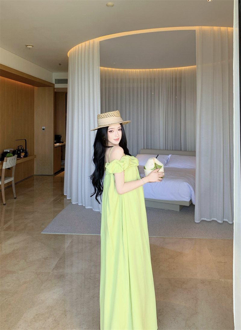 실사 프랑스식 민소매 레트로 V넥 행침 목 빨간색 점프 슈트 치마 계절 아름다운 해변가 휴가 허리 수축 한 마디 롱 스커트