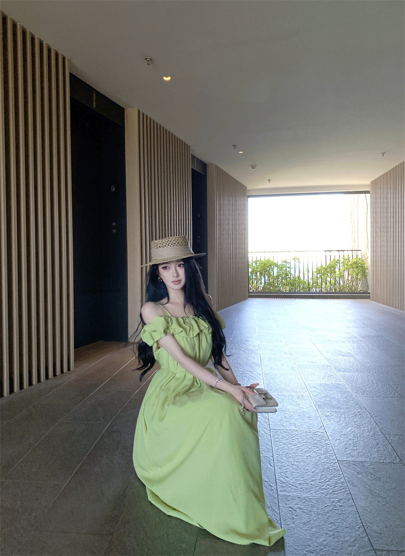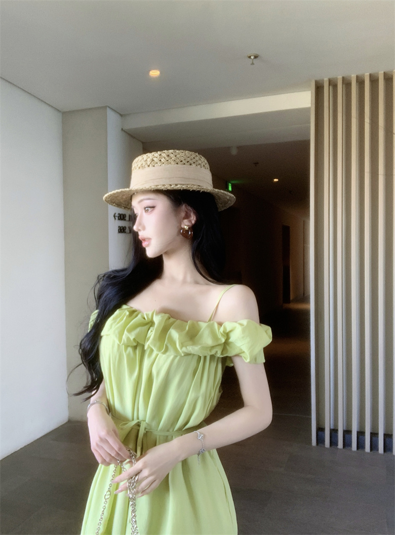 실사 휴가 착용 가져 가라. 세트 여성 2026 이른 봄 새로운 섹시함 행침 목 맨위 쉬폰 반신 롱 스커트