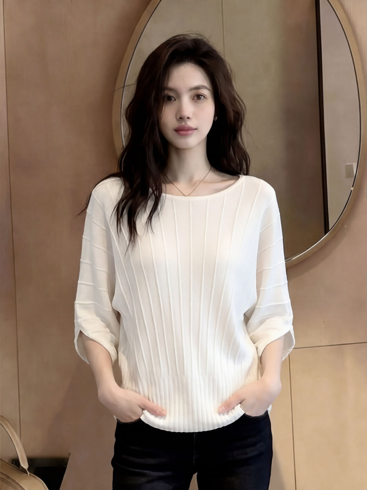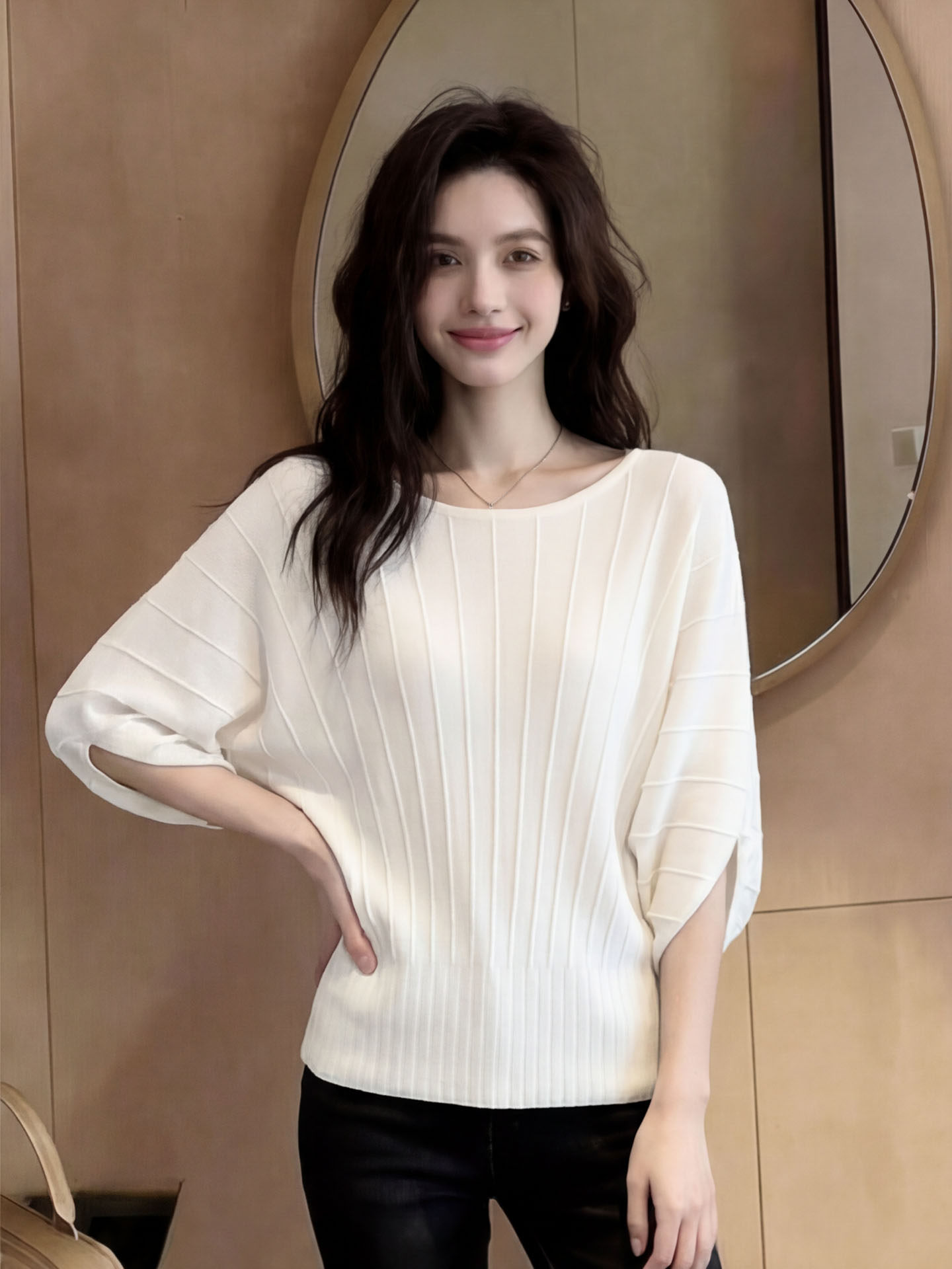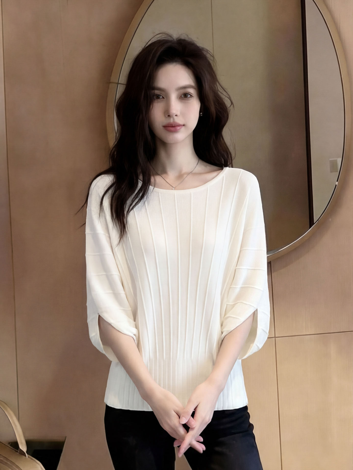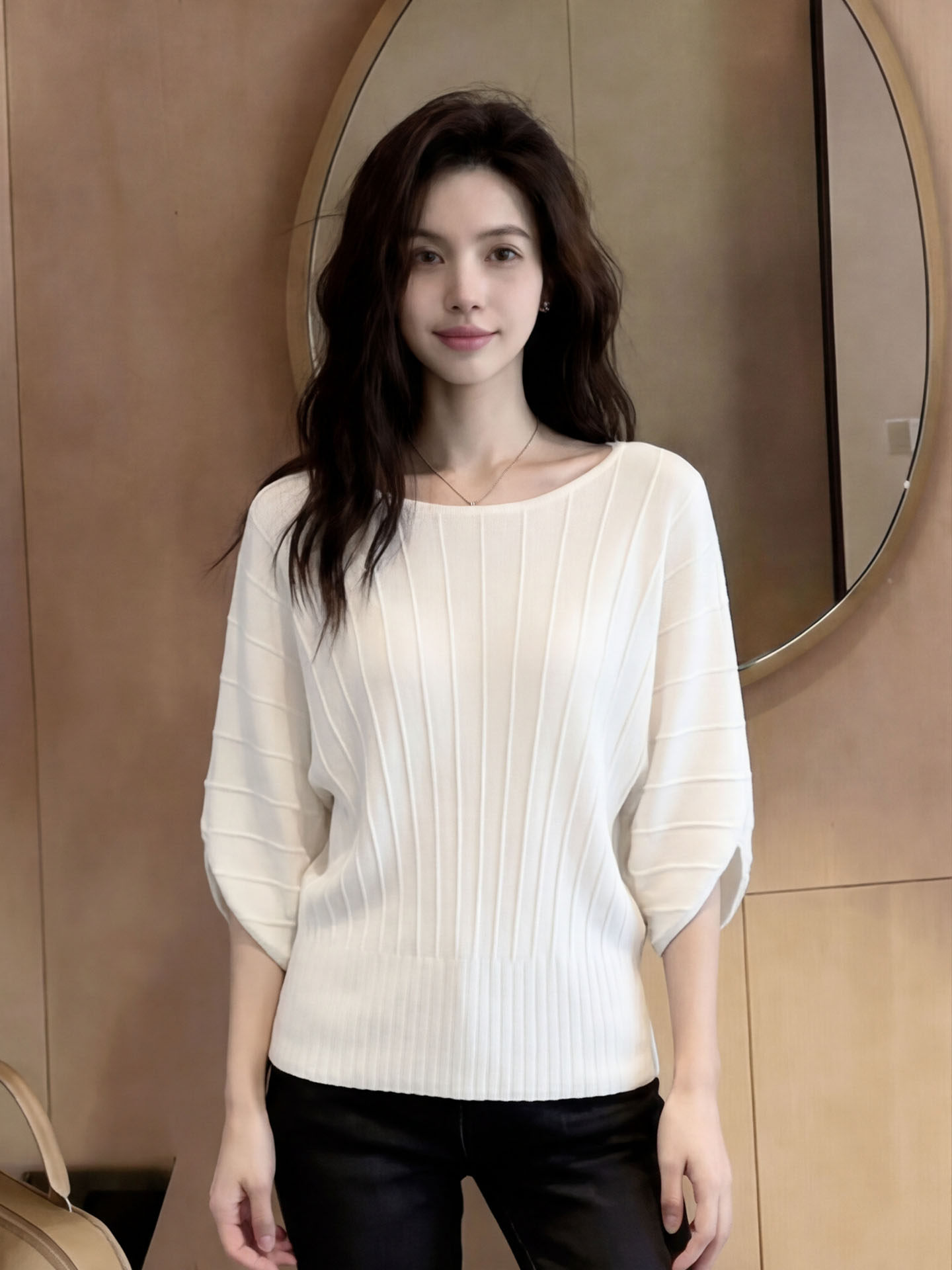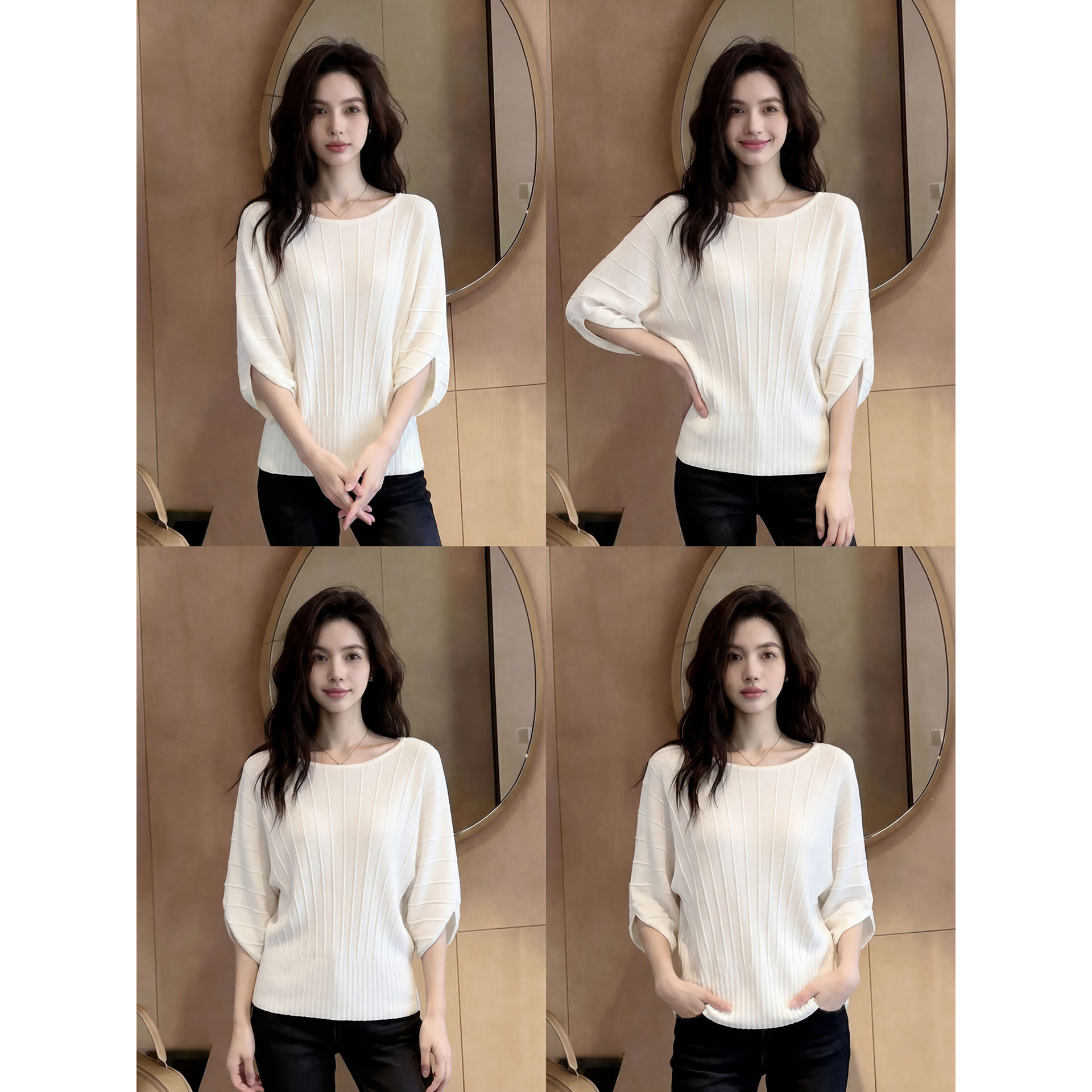 있음 도착 한국 스타일 비스듬한 어깨 니트 스웨터 여성 2026 여름 몸매 가꾸기 슬림해 보이는 반팔 맨위 Chic