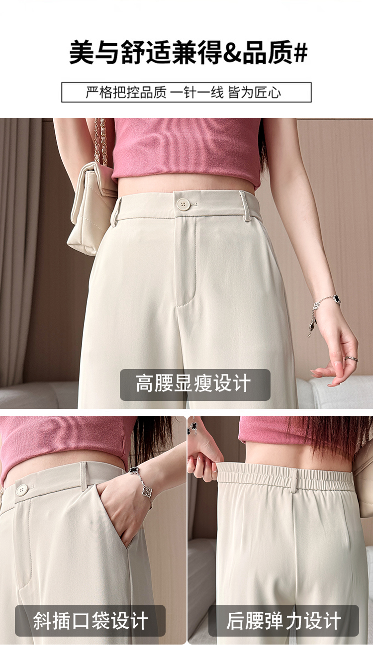 실사 작은 아이들 2026 주간 실크 스트레이트 팬츠 여성 여름 얇은 스타일 루즈핏 슬림해 보이는 넓은 다리 9 포인트 긴 바지