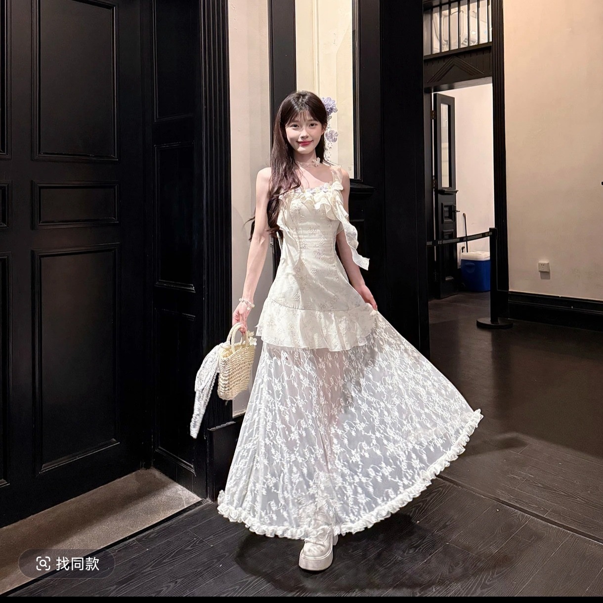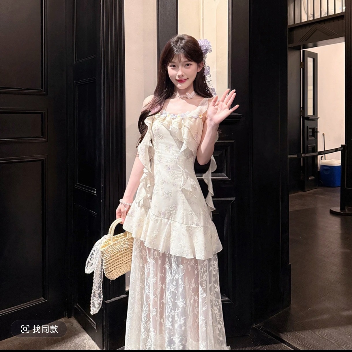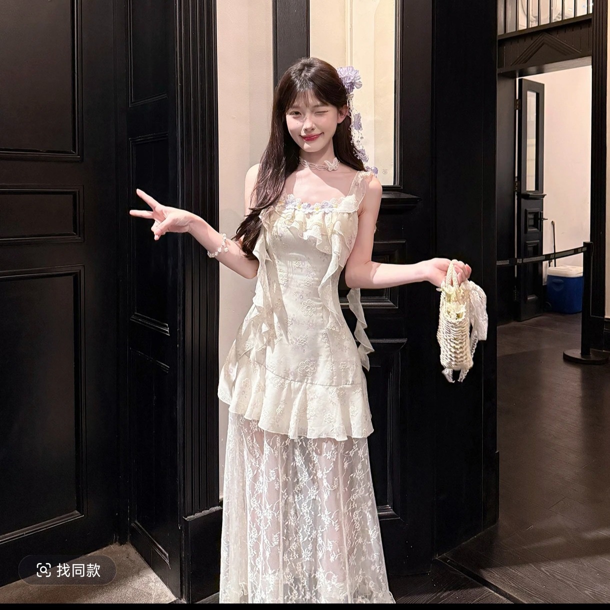 acaine 마이크로 팬 스택 보라색 그라데이션 레이스 행침 목 맨위 반 스커트
