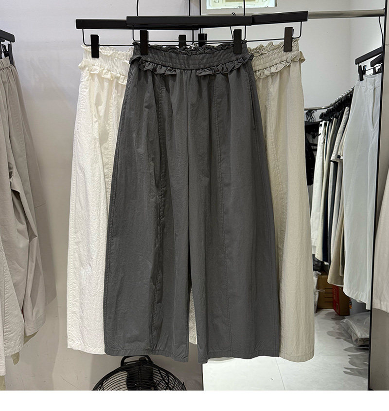여름 새로운 한국 스타일 프릴 루즈핏 넓은 다리 캐주얼 바지 여성 얇은 스타일 슬림해 보이는 마이크로 모통이 칼 바지 롱 바지