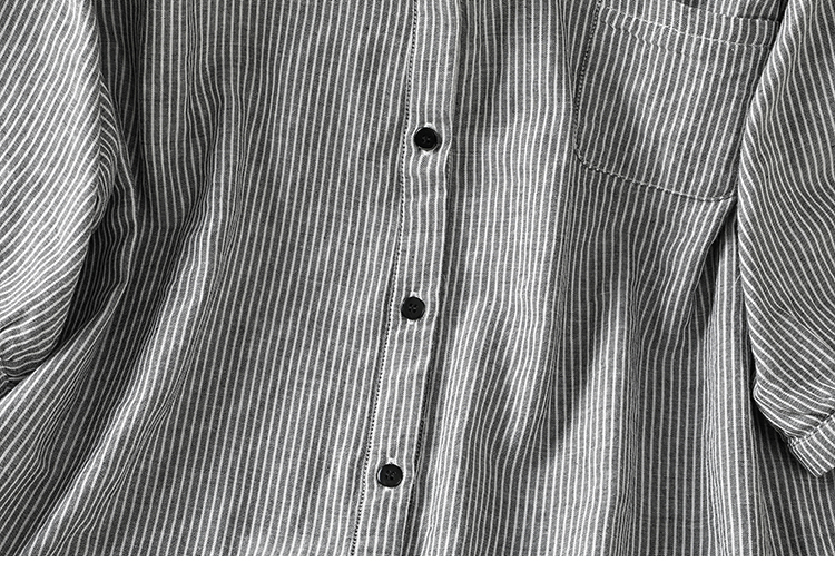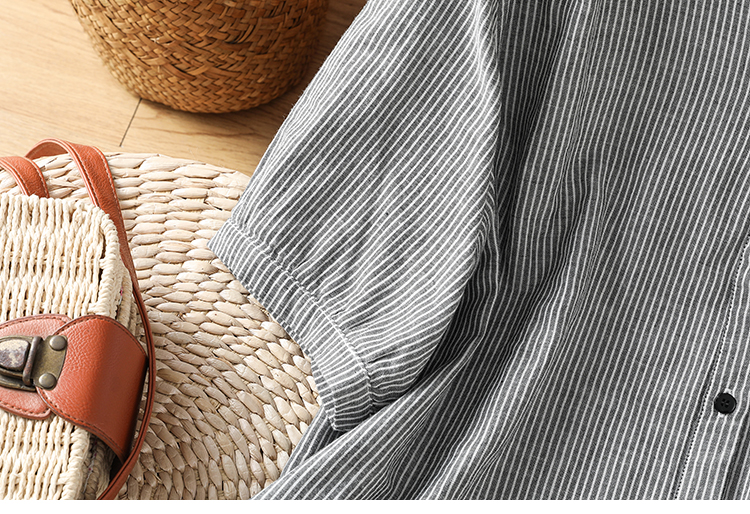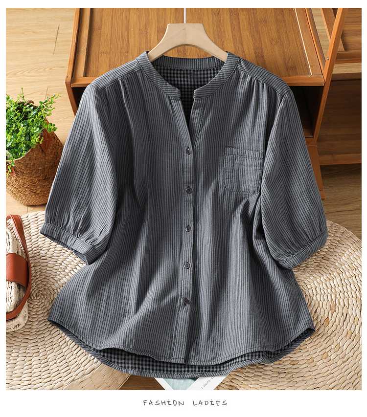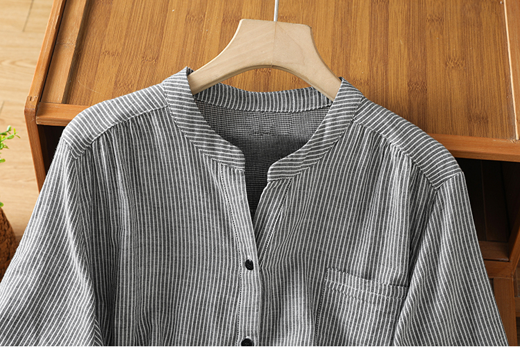 실사 2026 여름 새로운 아마 빅 사이즈 스탠드 칼라 7부 소매 루즈핏 태양 보호 셔츠 패션 연령 감소 여성 셔츠