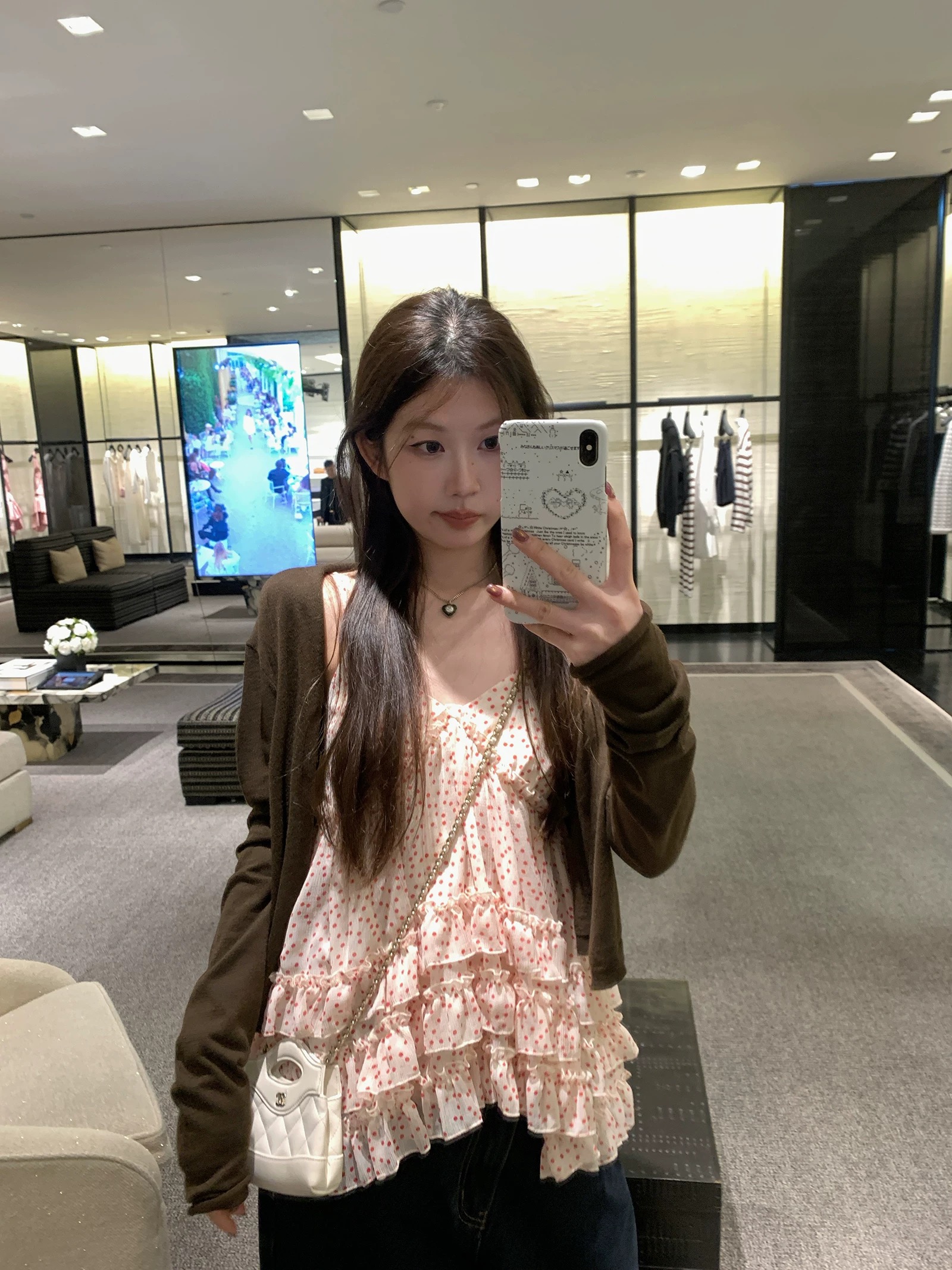zzhen 제인 제인 매매 봄 하트 홀로우 아웃 V넥 니트 오픈 가디건 봄 새로운 부드러운 다용도 작은 외투