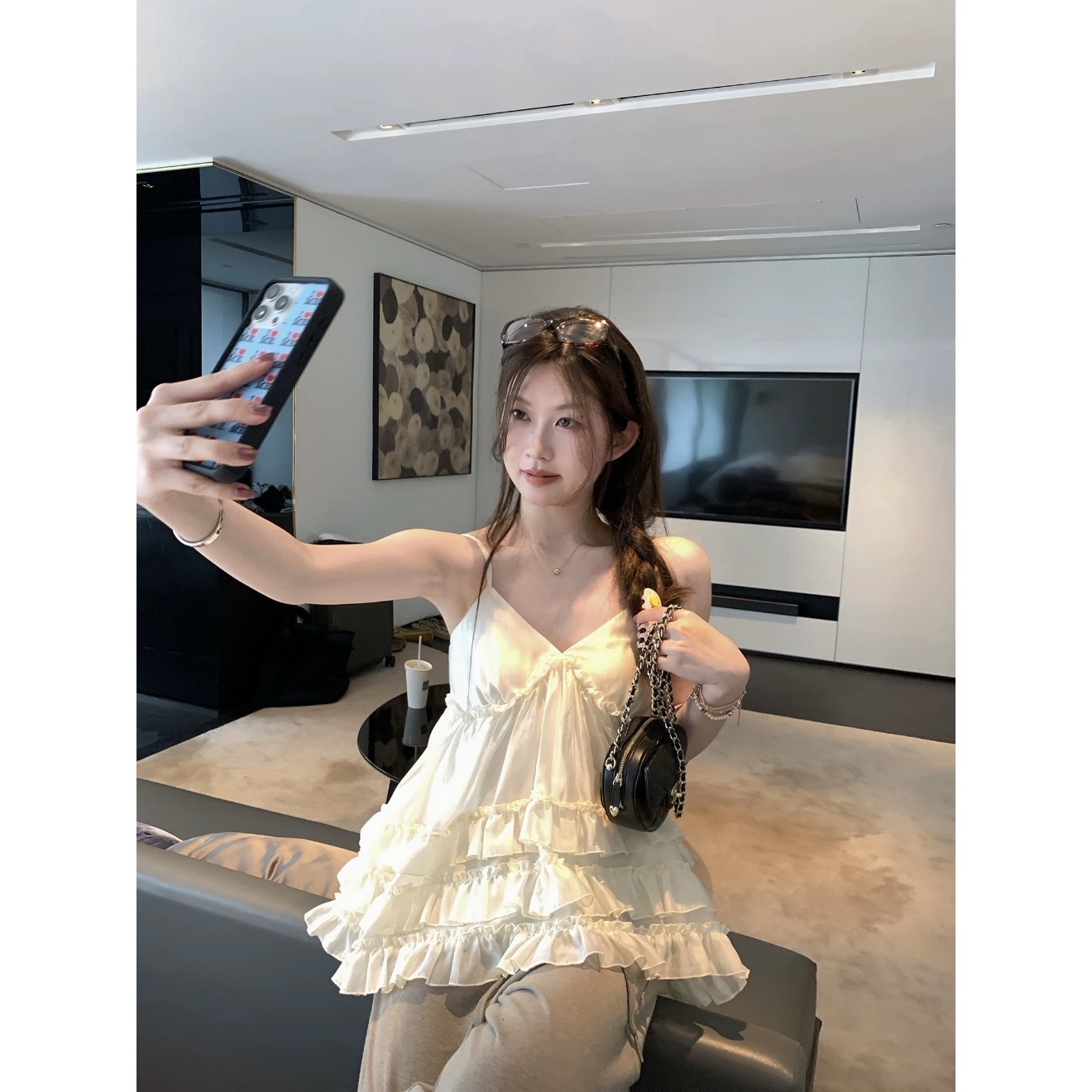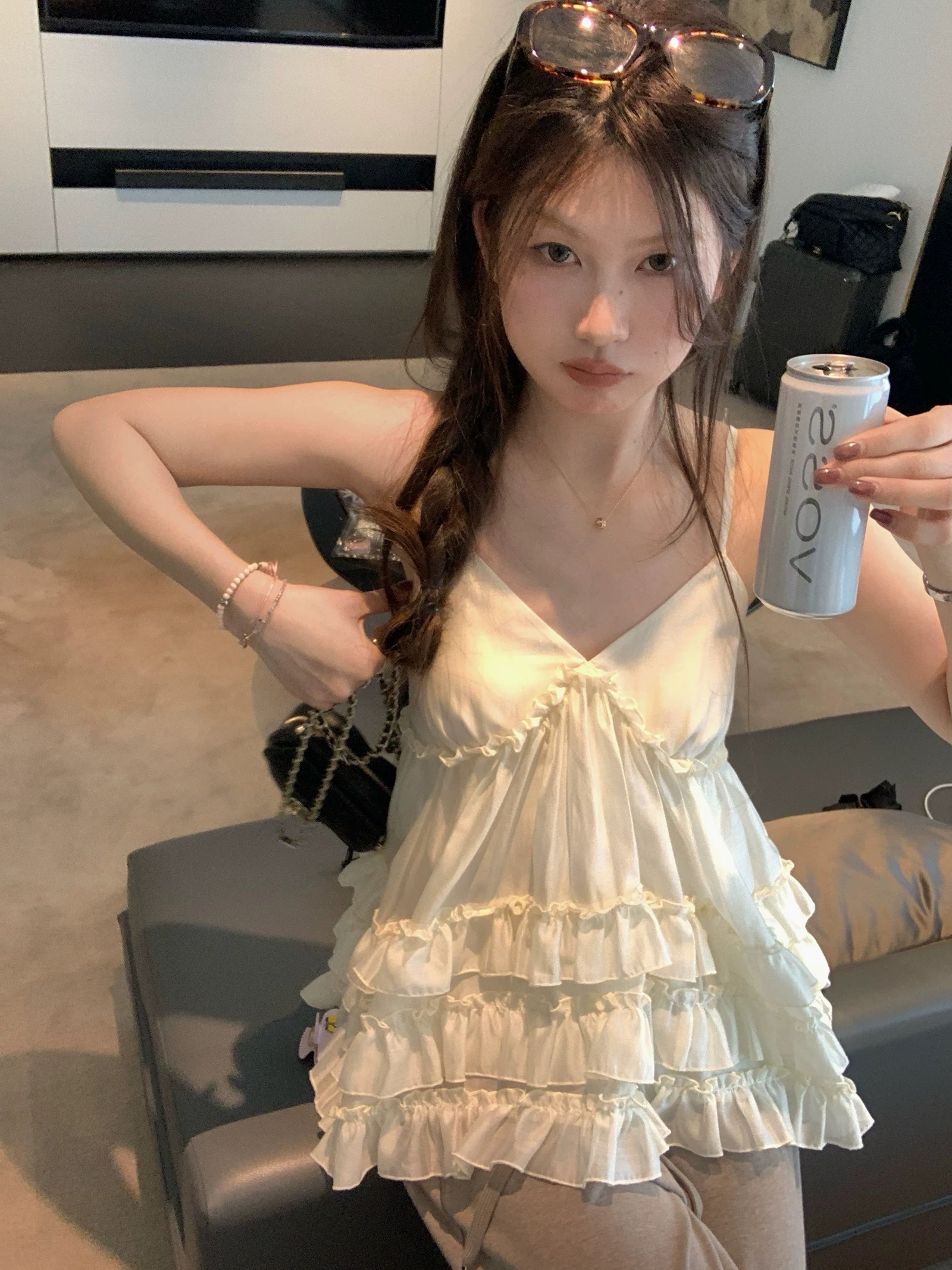 레드 맨 파빌리온 캐미솔 여름 외출용 2026 새로운 자이언트 잘 생긴 ~ 중 백리스 고급 센스 민소매 행침 목 맨위