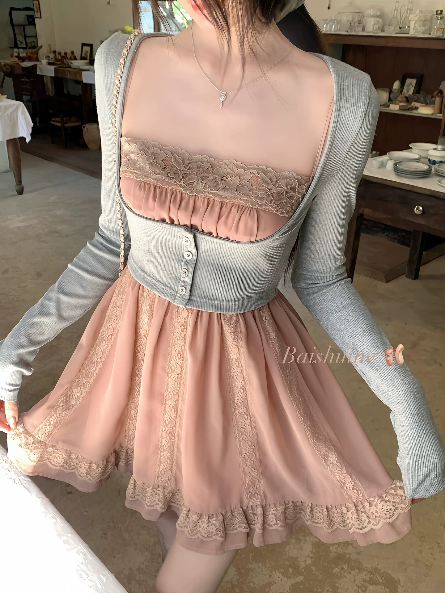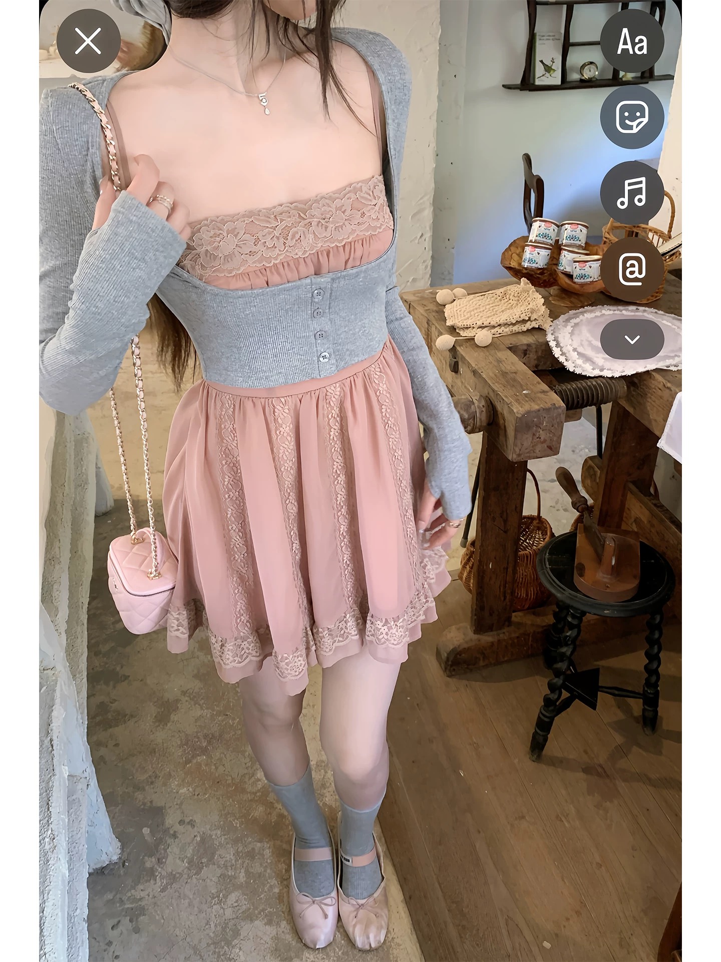 opening 직접 만든 sweet 시리즈 층 레이스 순수한 욕망 센스 한 마디 슬립 한 부서 디자인 센스 맨위