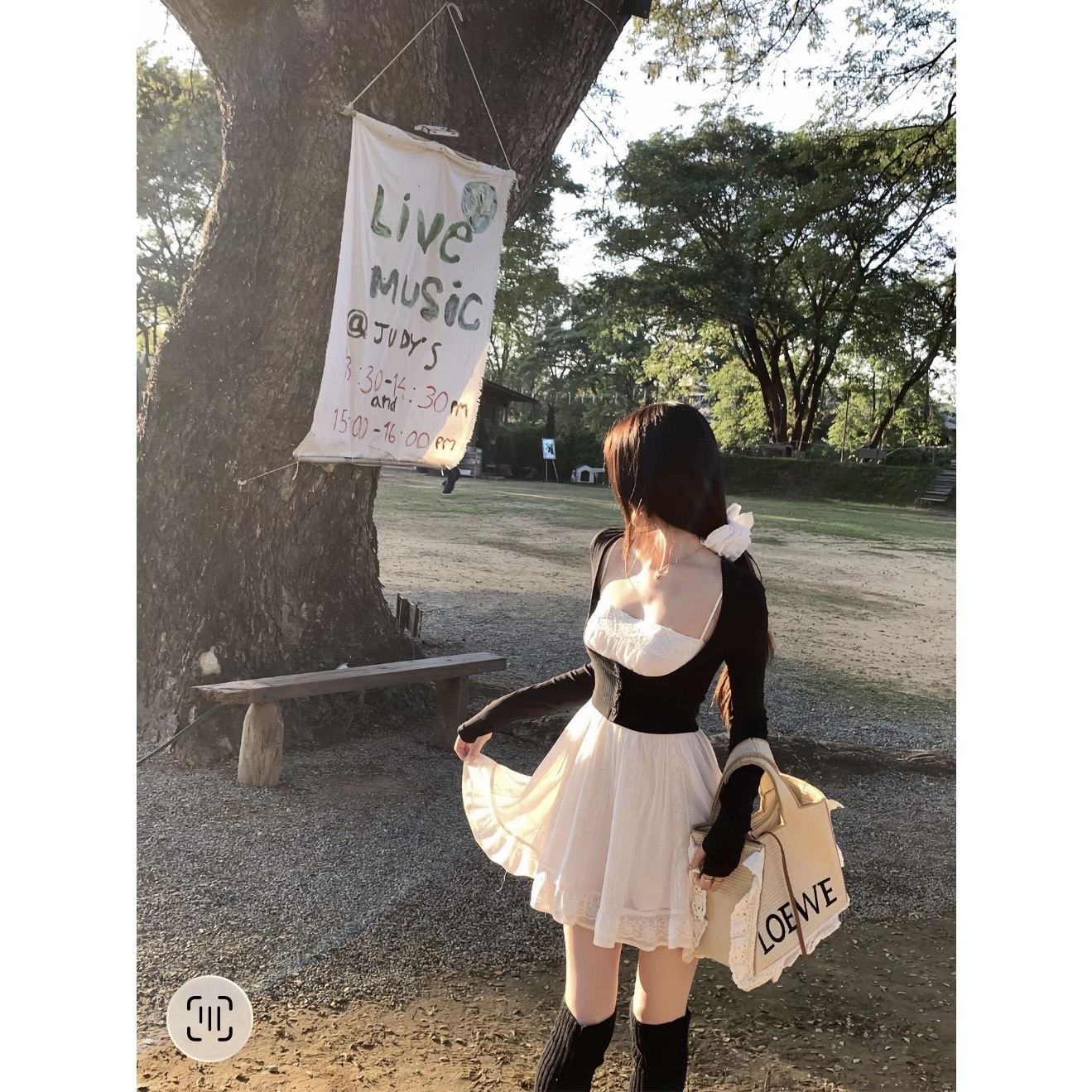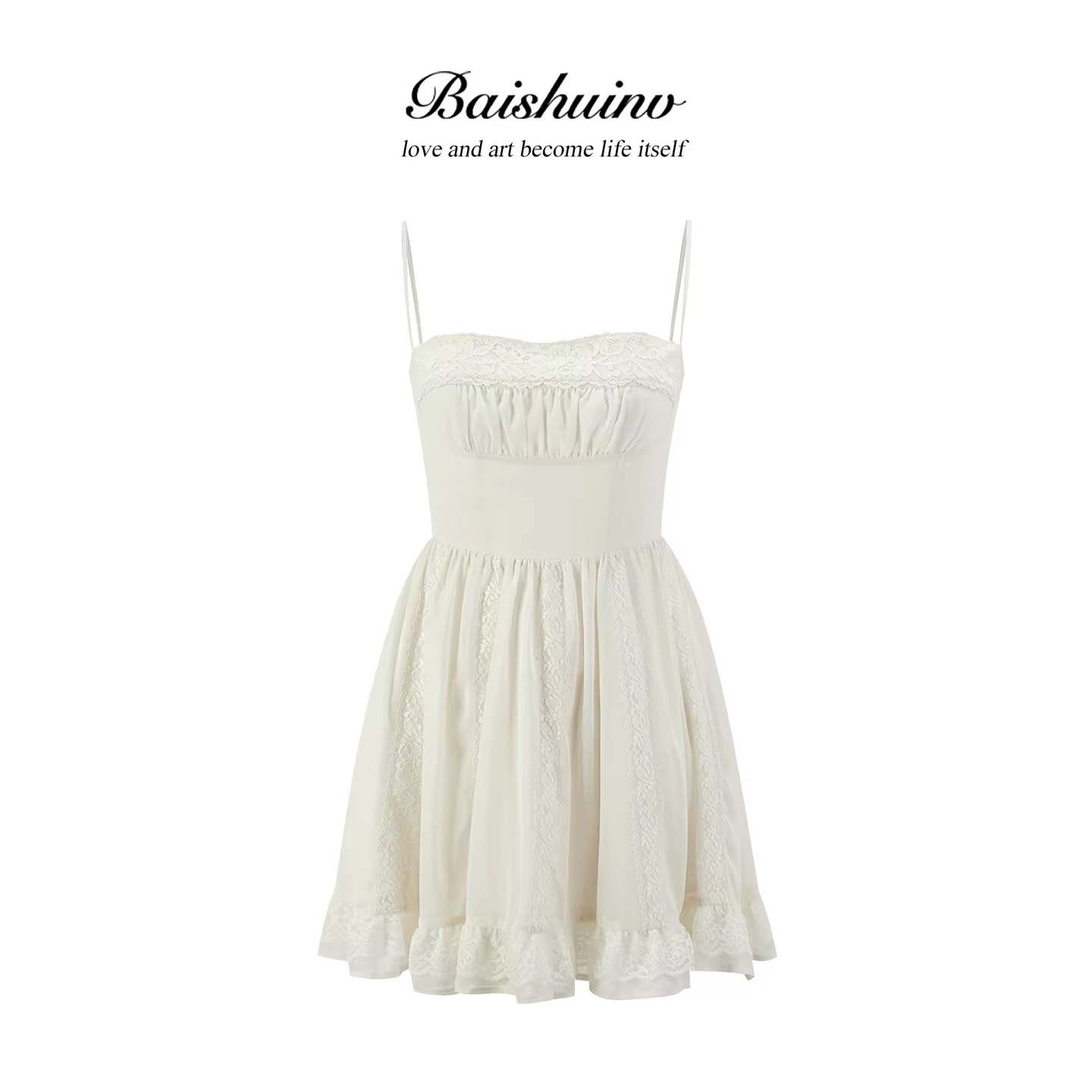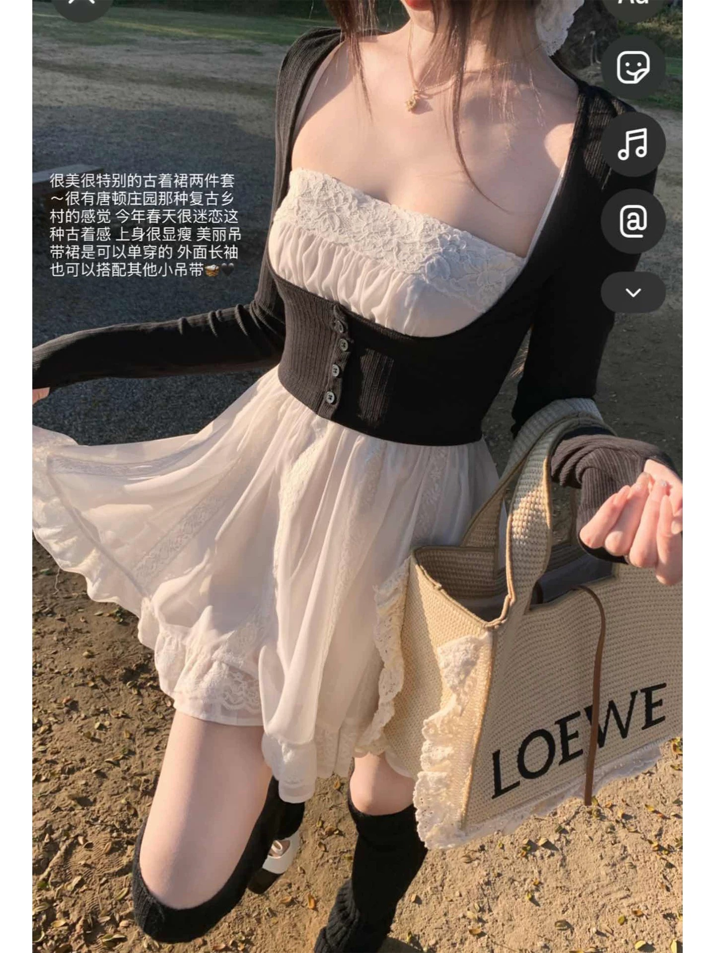 화이트 워터 여성 고대 복장 앨리스 라이 경기 서울 u 칼라 티셔츠 레이스 레이스 슬립 드레스 레트로 투피스 세트