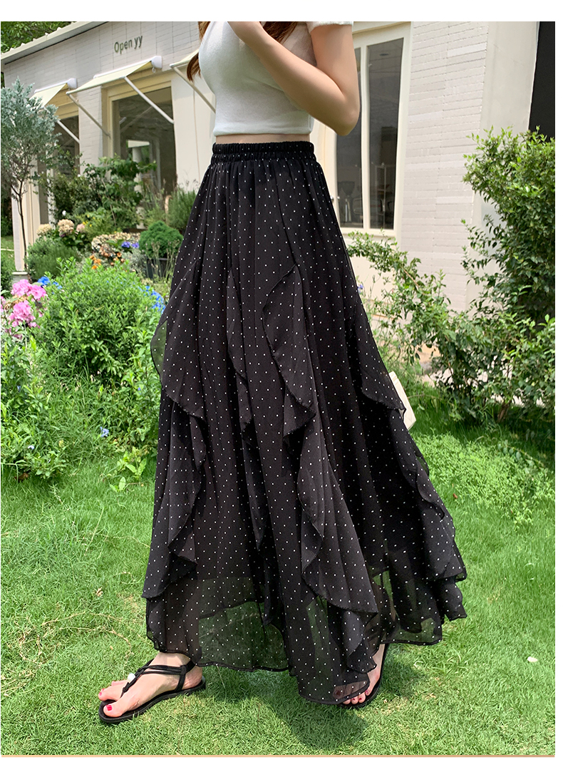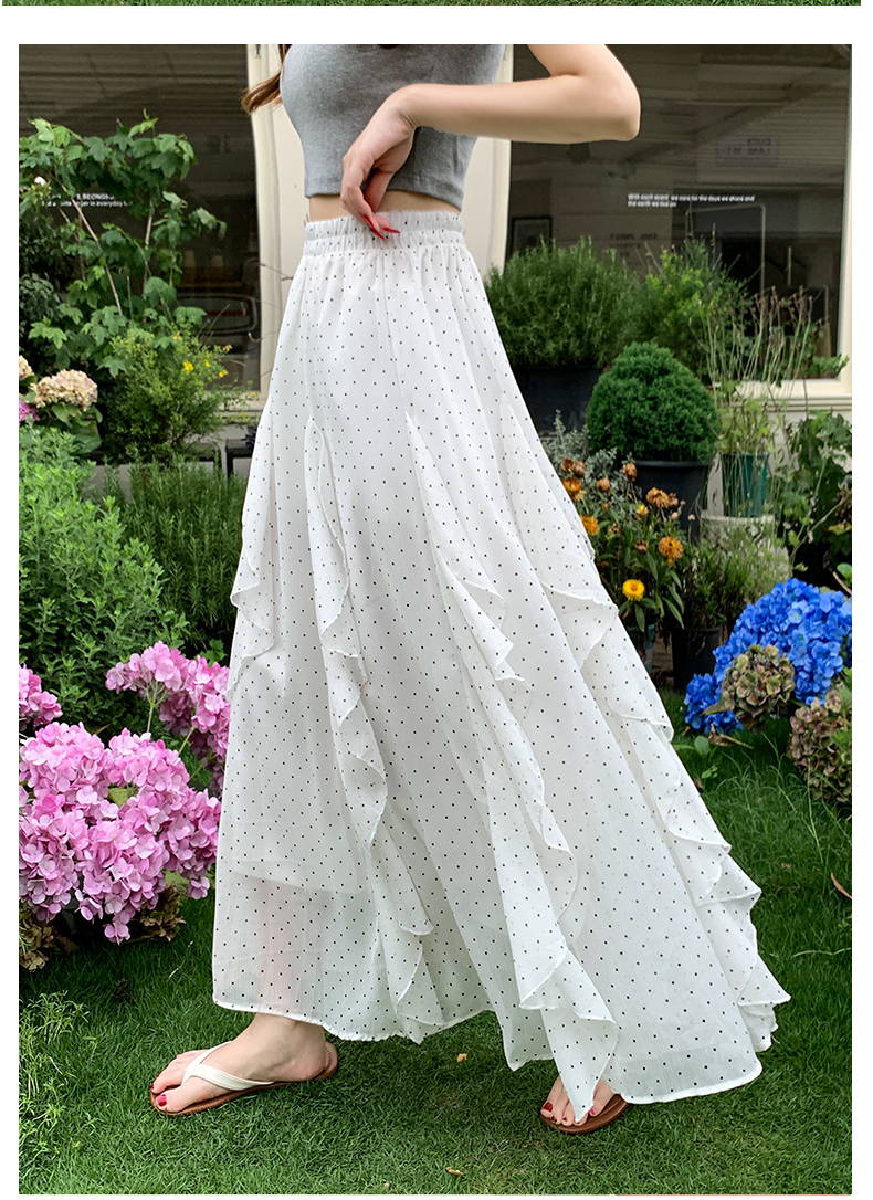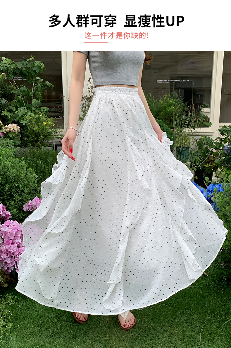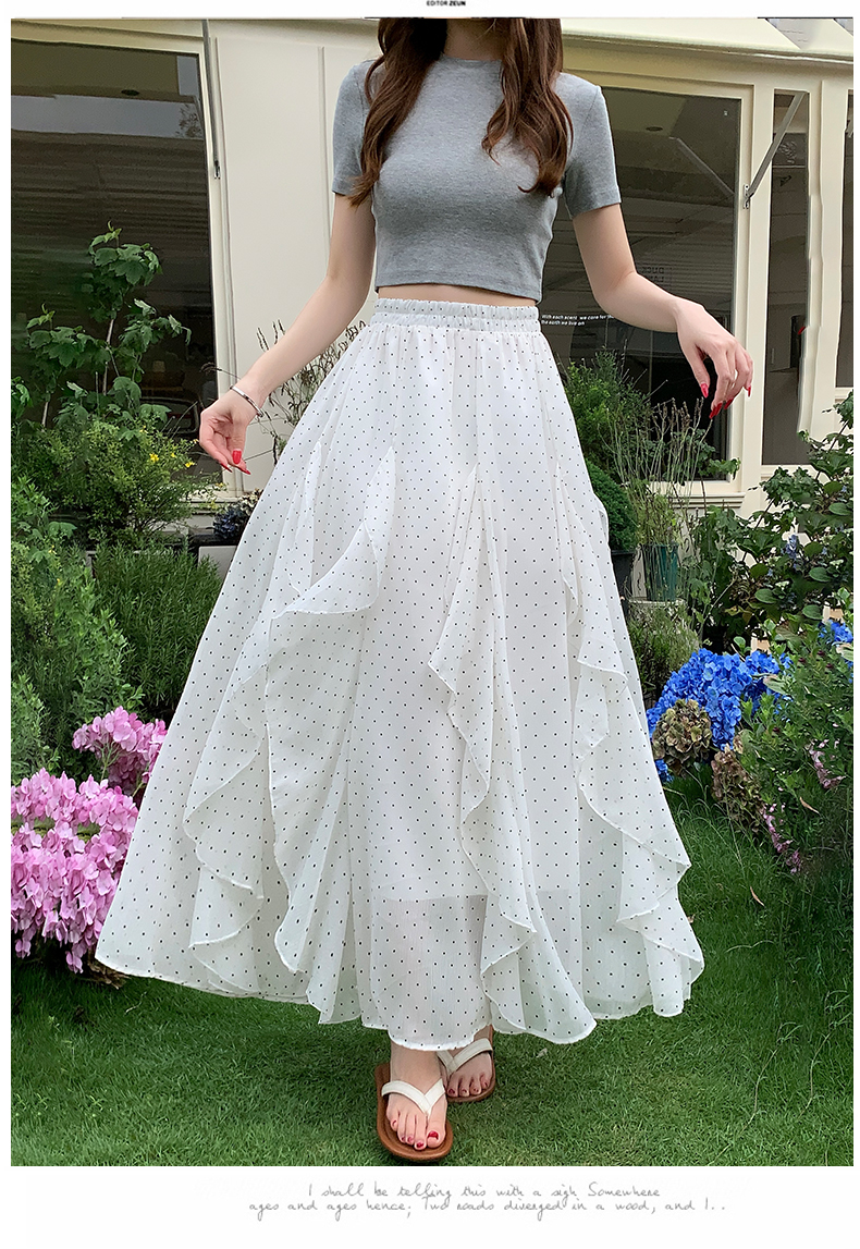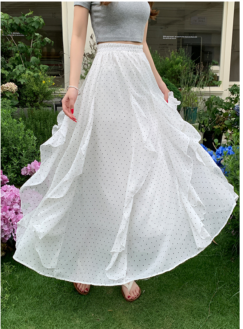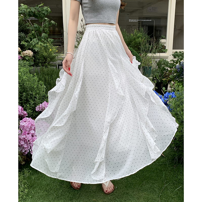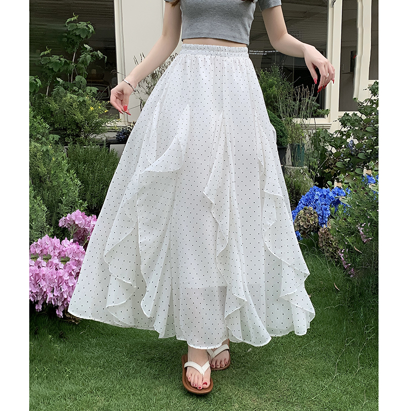 프릴 불규칙 도트 무늬 케이크 드레스 여성 여름 하이웨이스트 슬림해 보이는 한 마디 빅 플레어 스커트 캐주얼 플리츠 반신 스커트