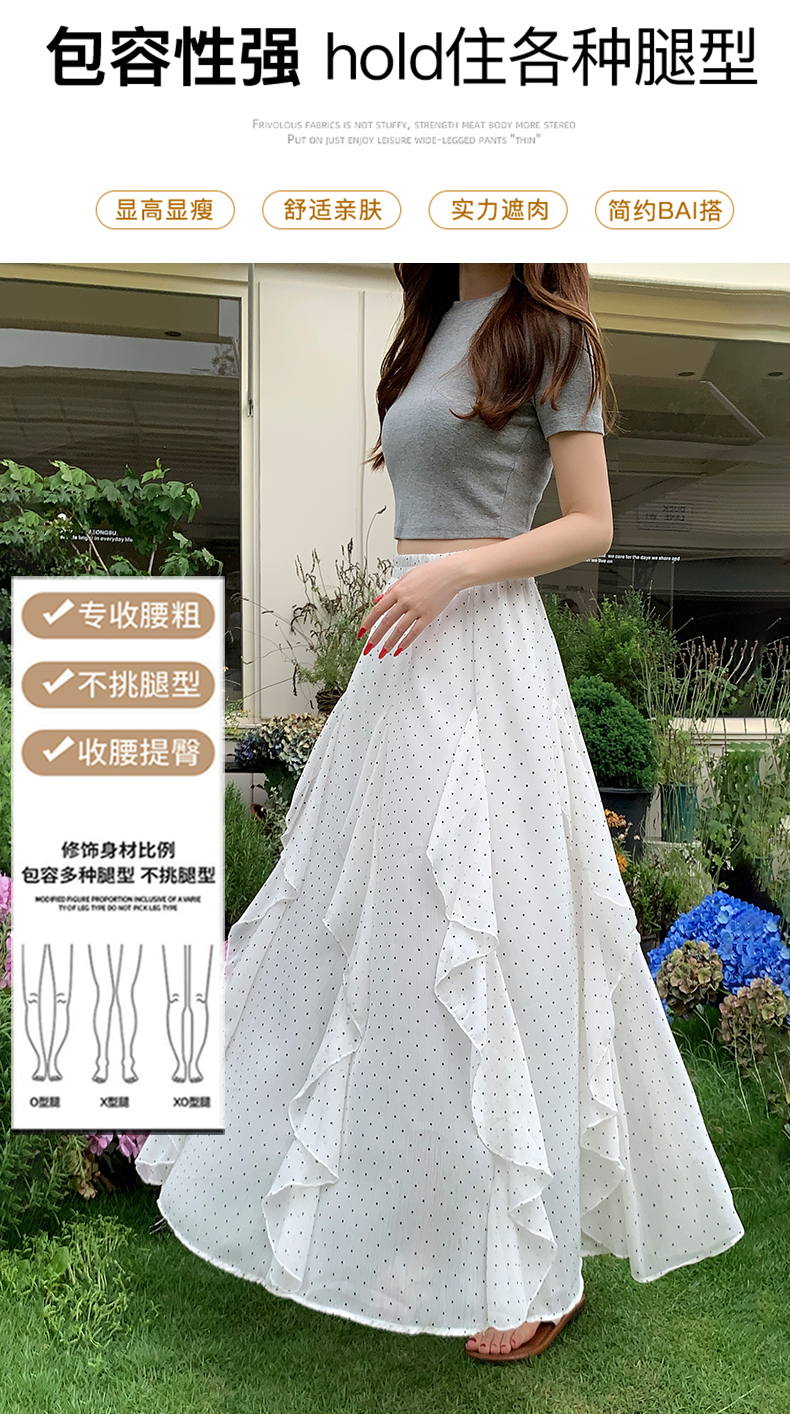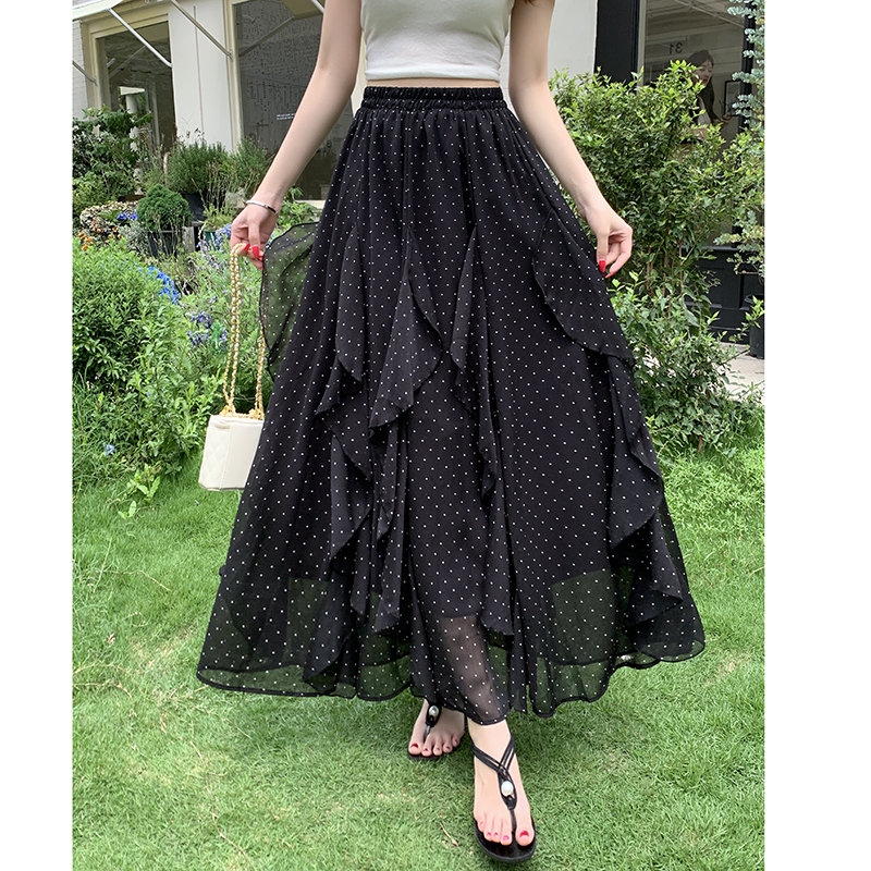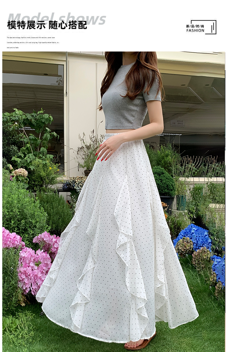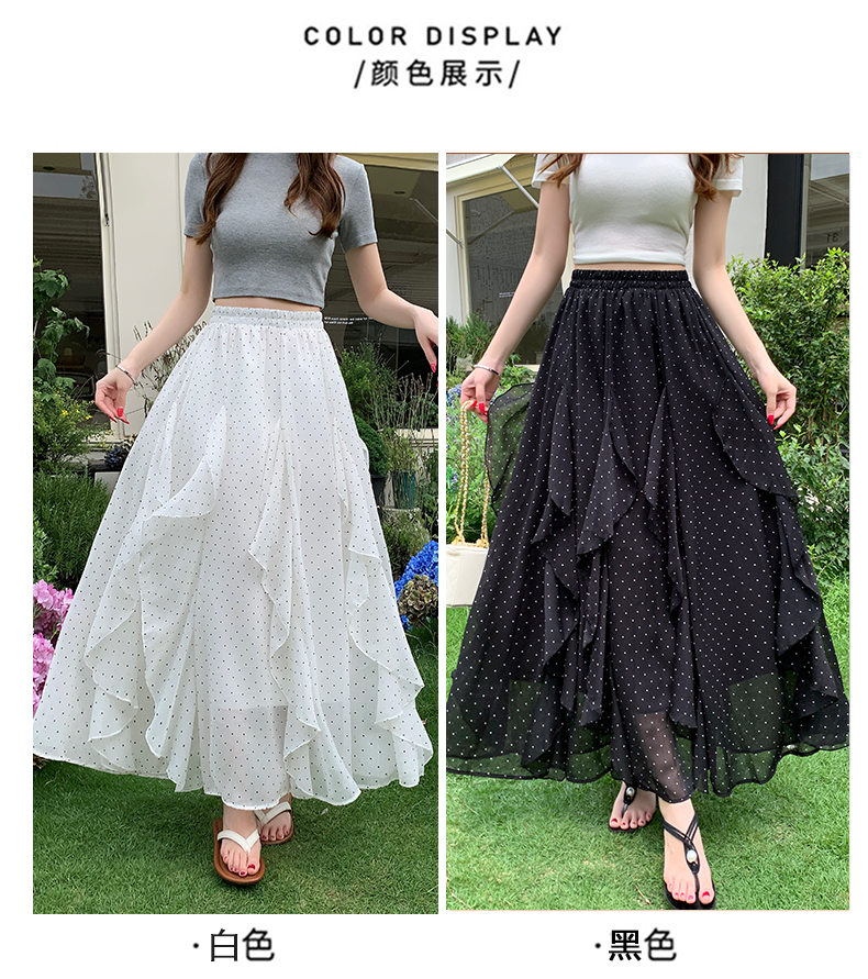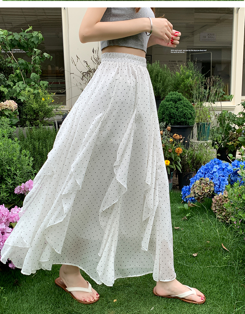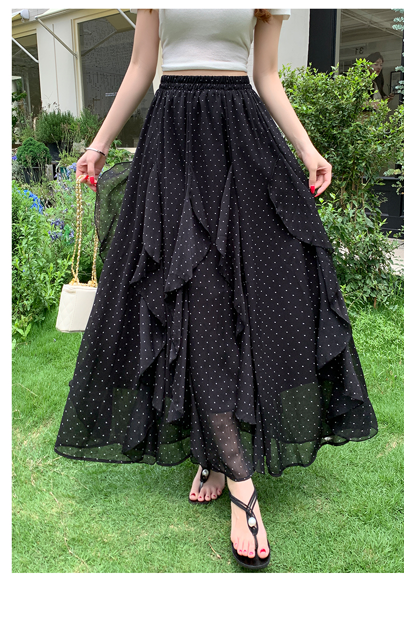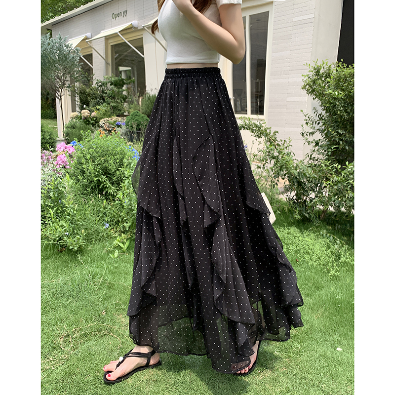 프릴 불규칙 도트 무늬 케이크 드레스 여성 여름 하이웨이스트 슬림해 보이는 한 마디 빅 플레어 스커트 캐주얼 플리츠 반신 스커트