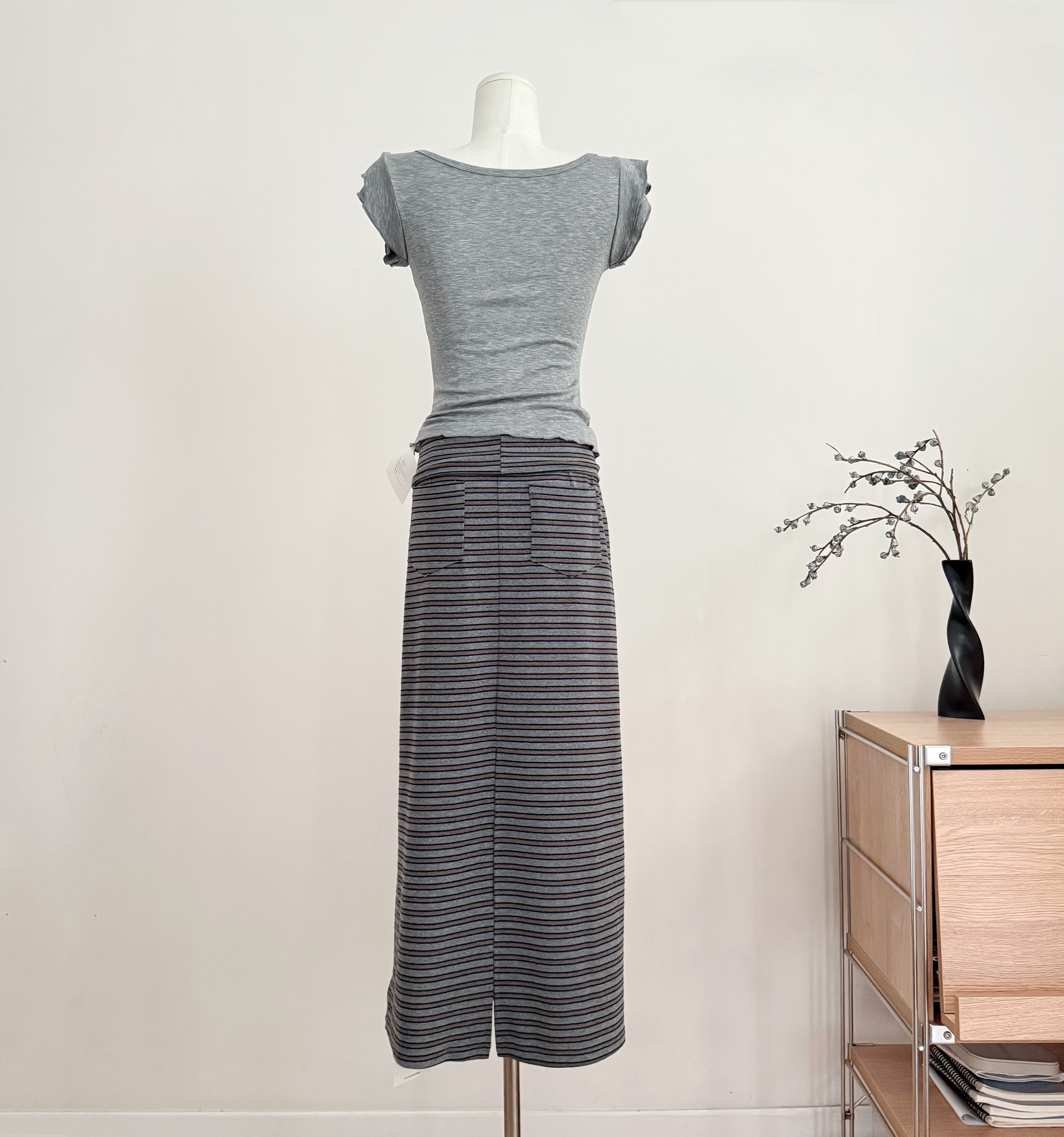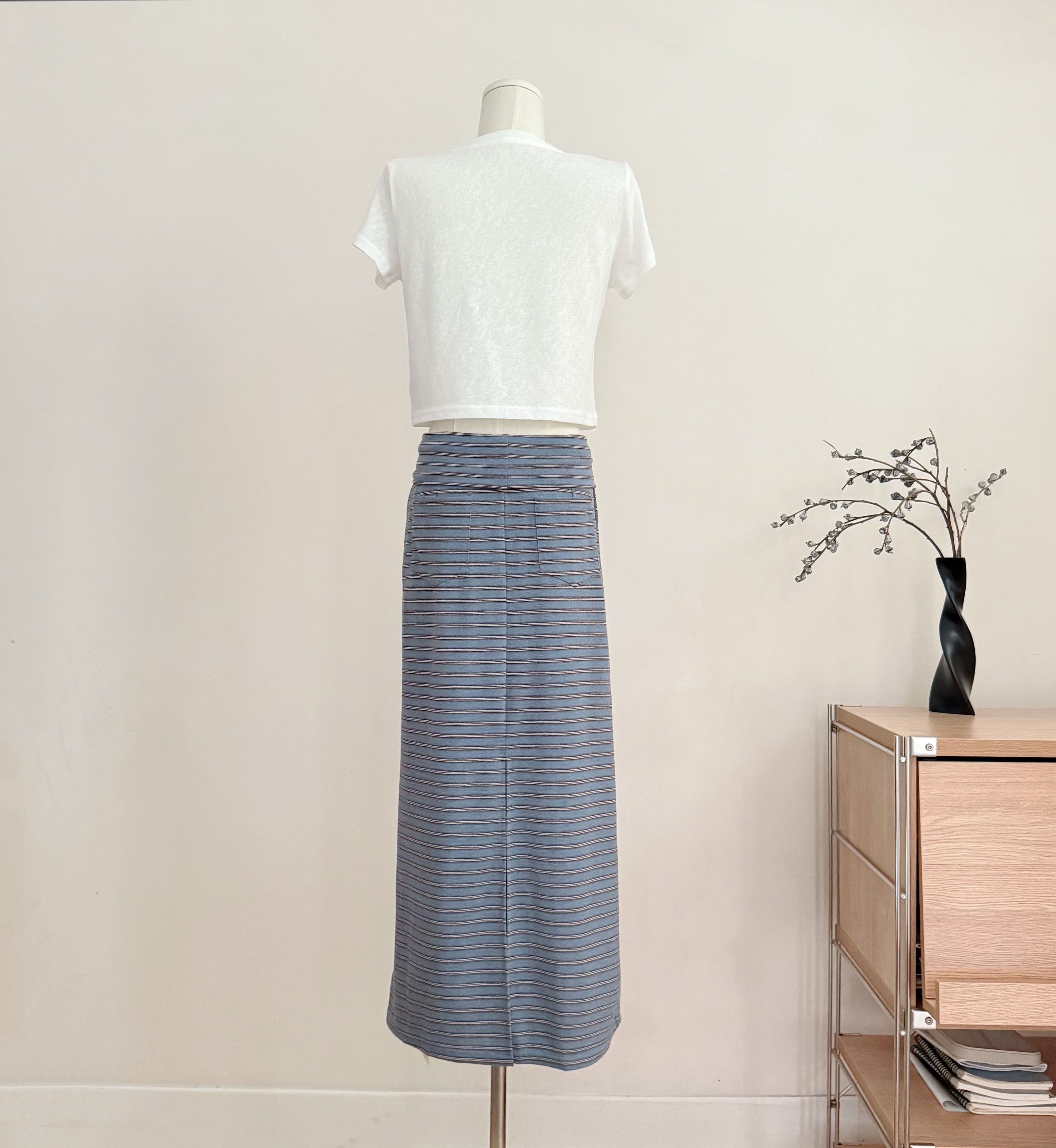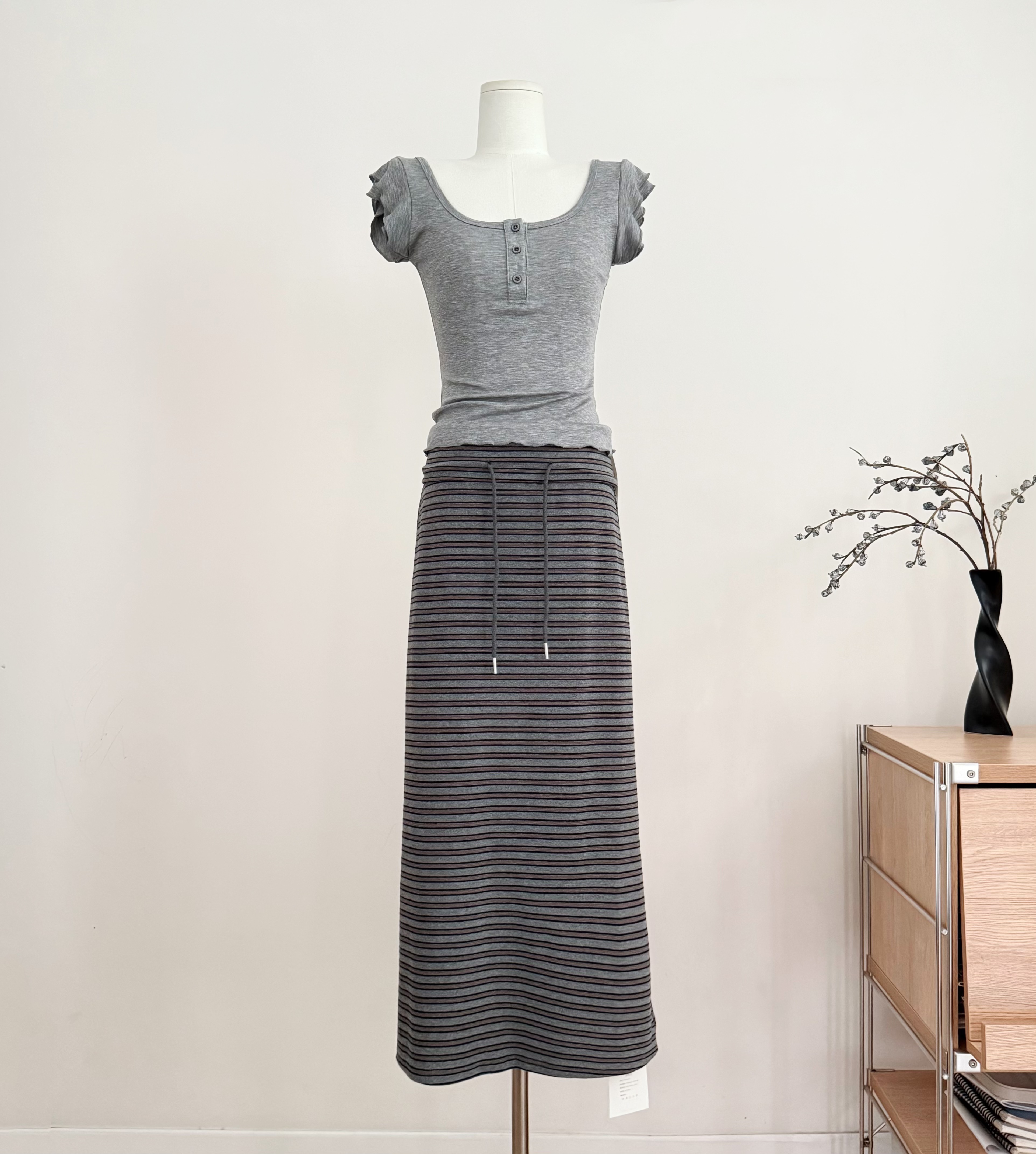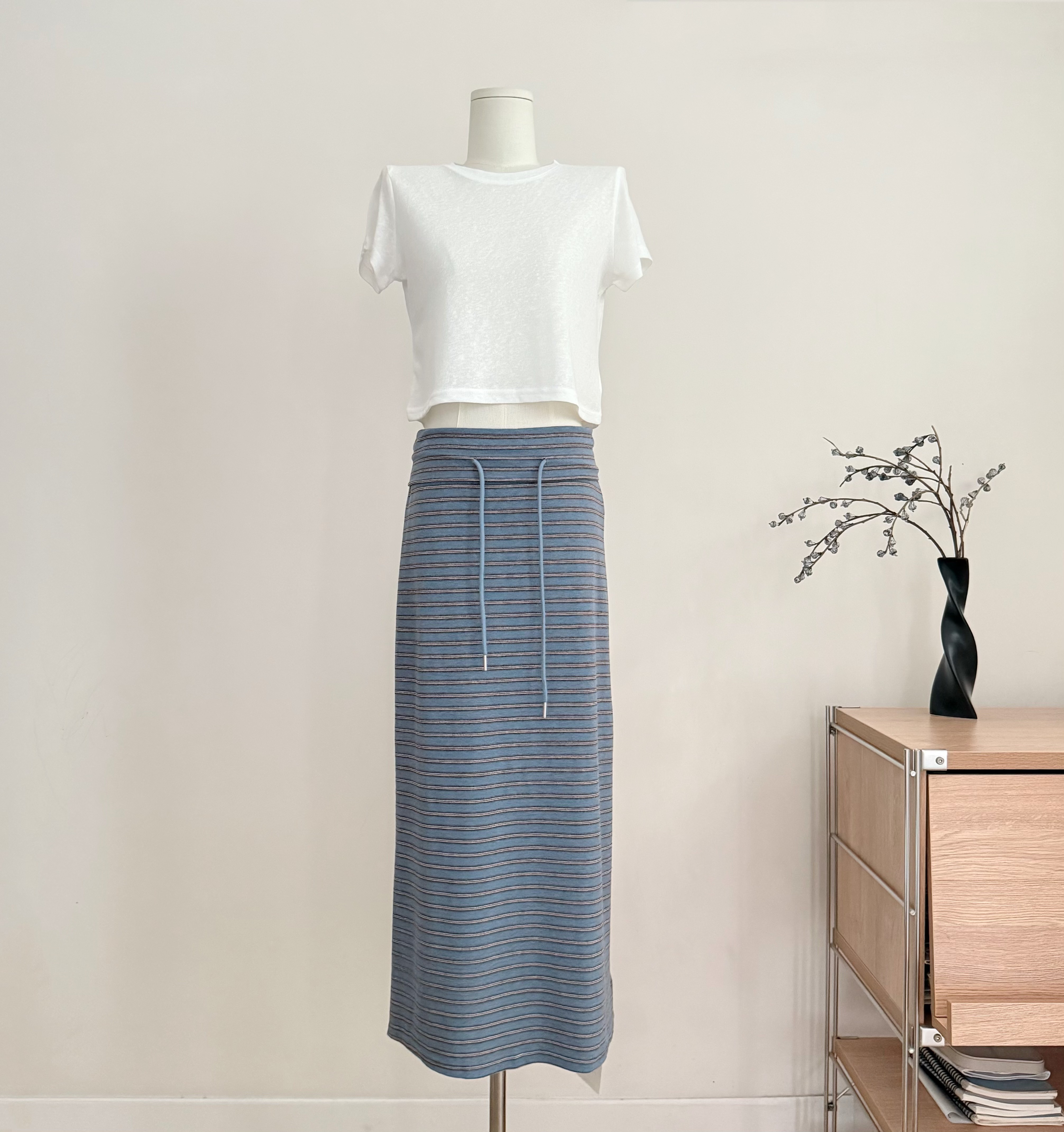 흔들어서 톤 3 3 게으른 치마 뒤집다 허리 스태킹 주름 스트라이프 반 스커트 펌프 로프 캐주얼 스트레이트 치마